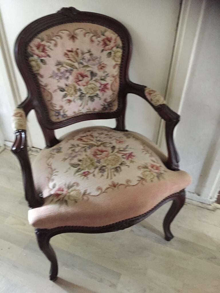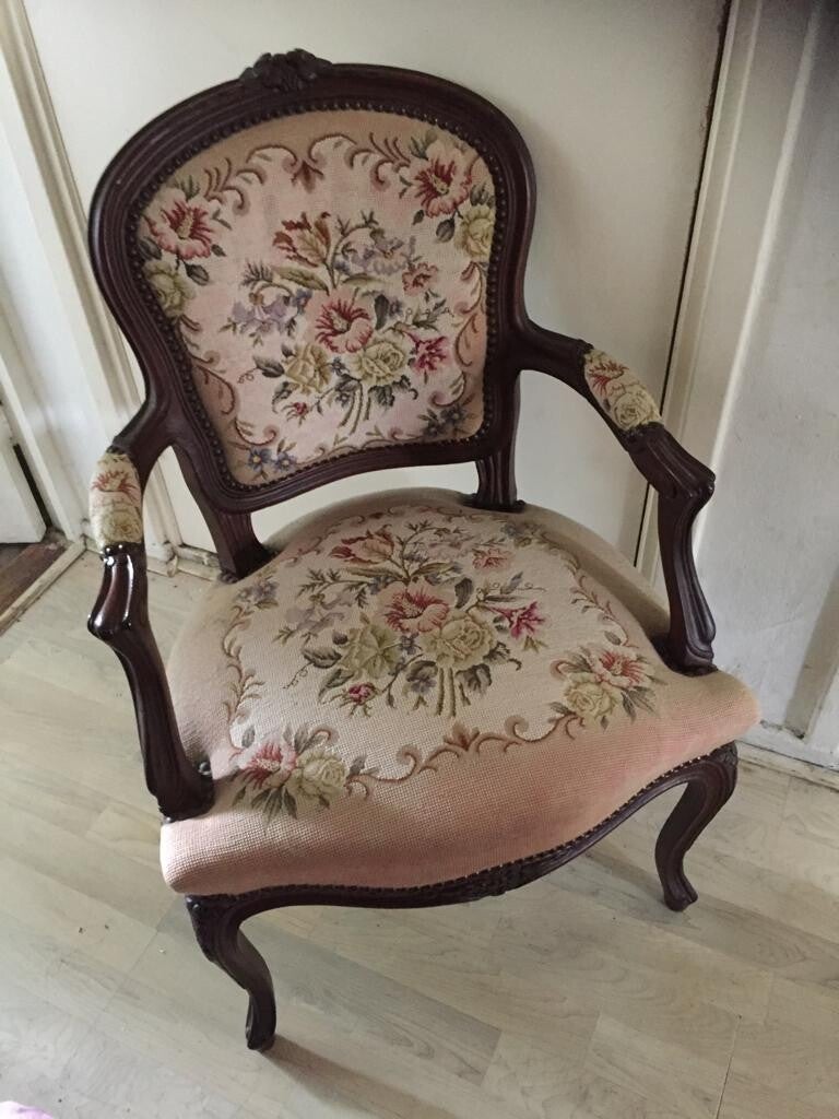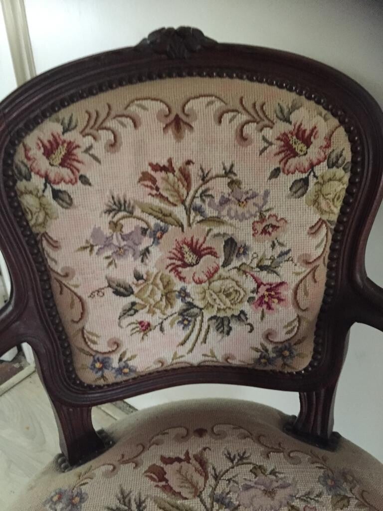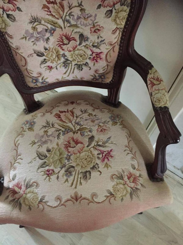 Antiek geborduurde stoel