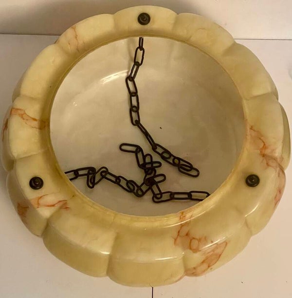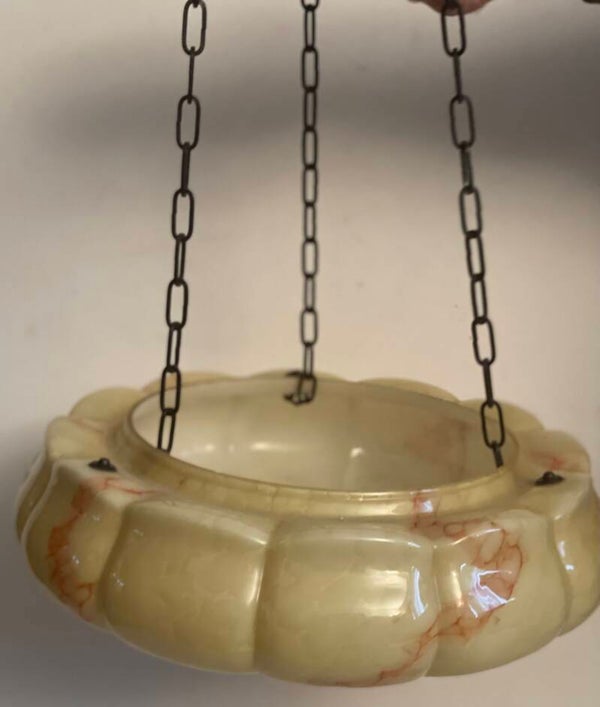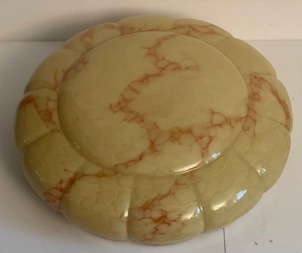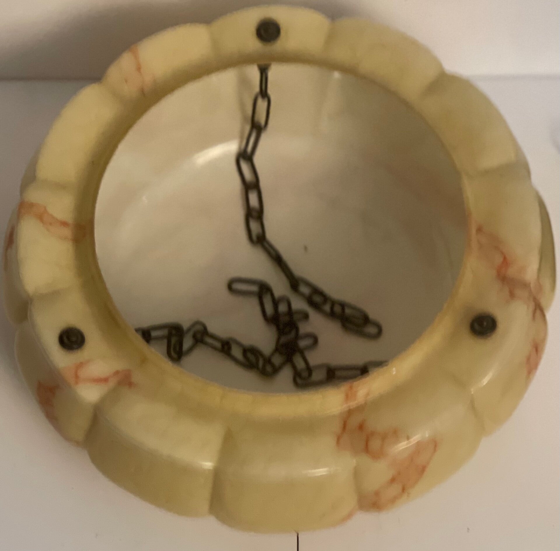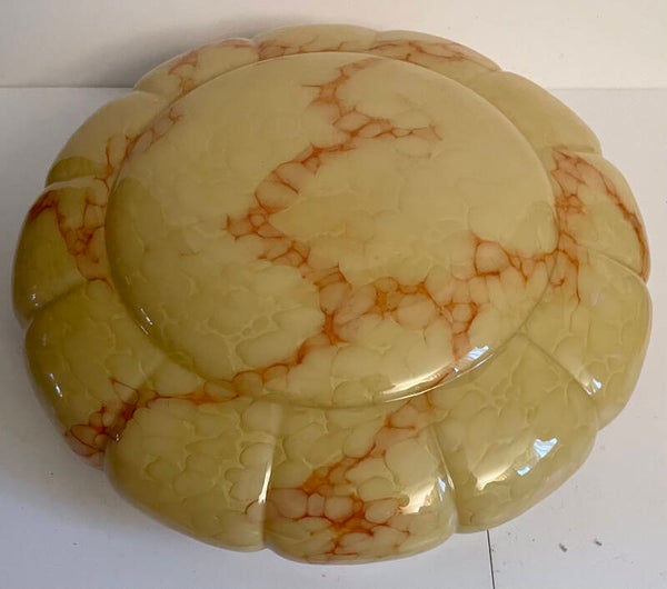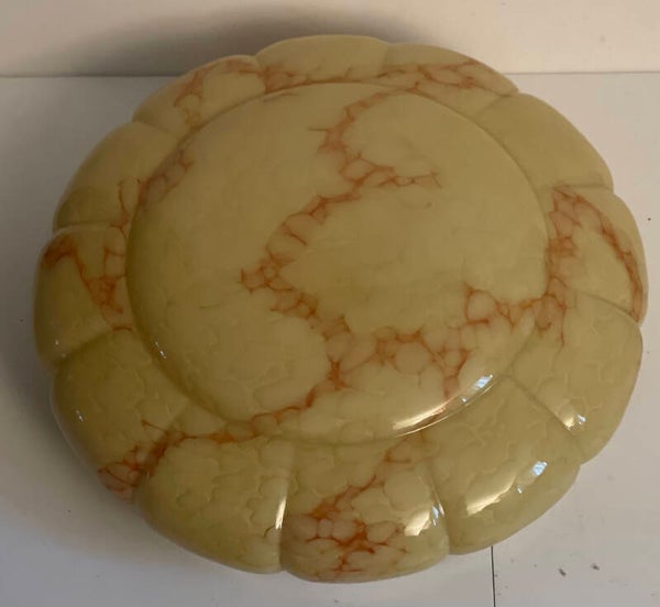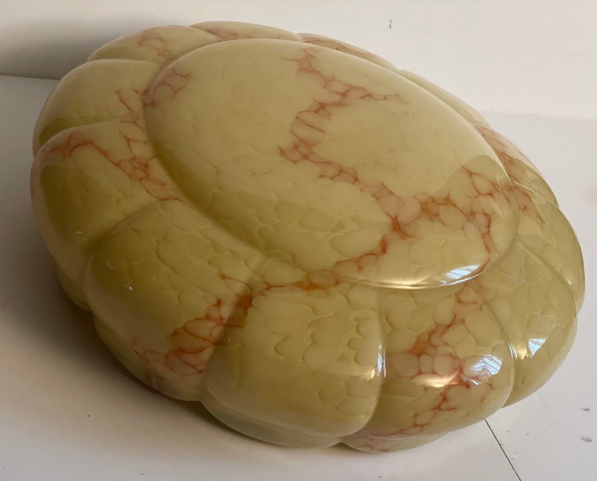 De kleur van het glas is beige/geel en heeft prachtige bruine aderen waardoor er zeer sfeervol licht ontstaat;