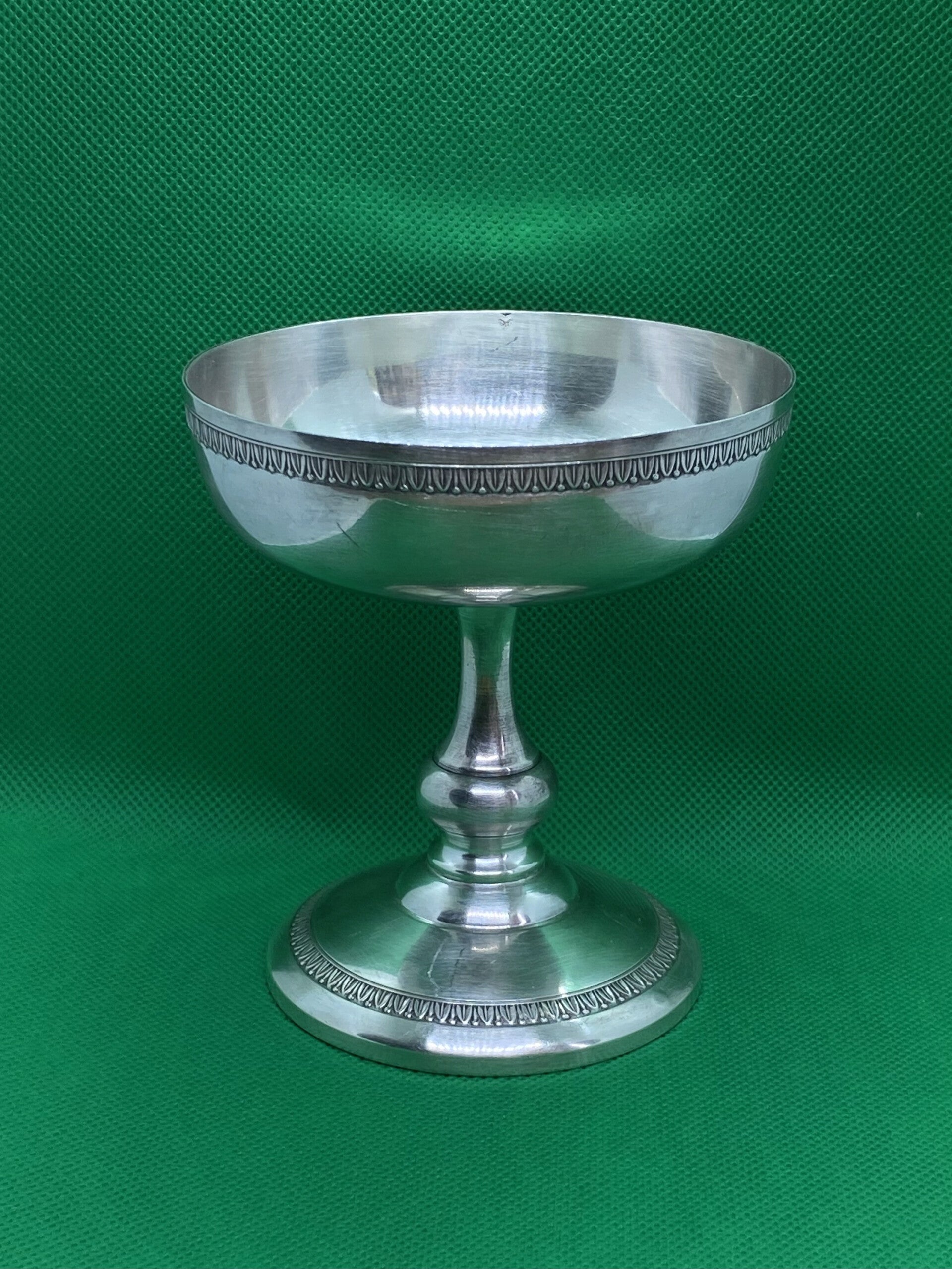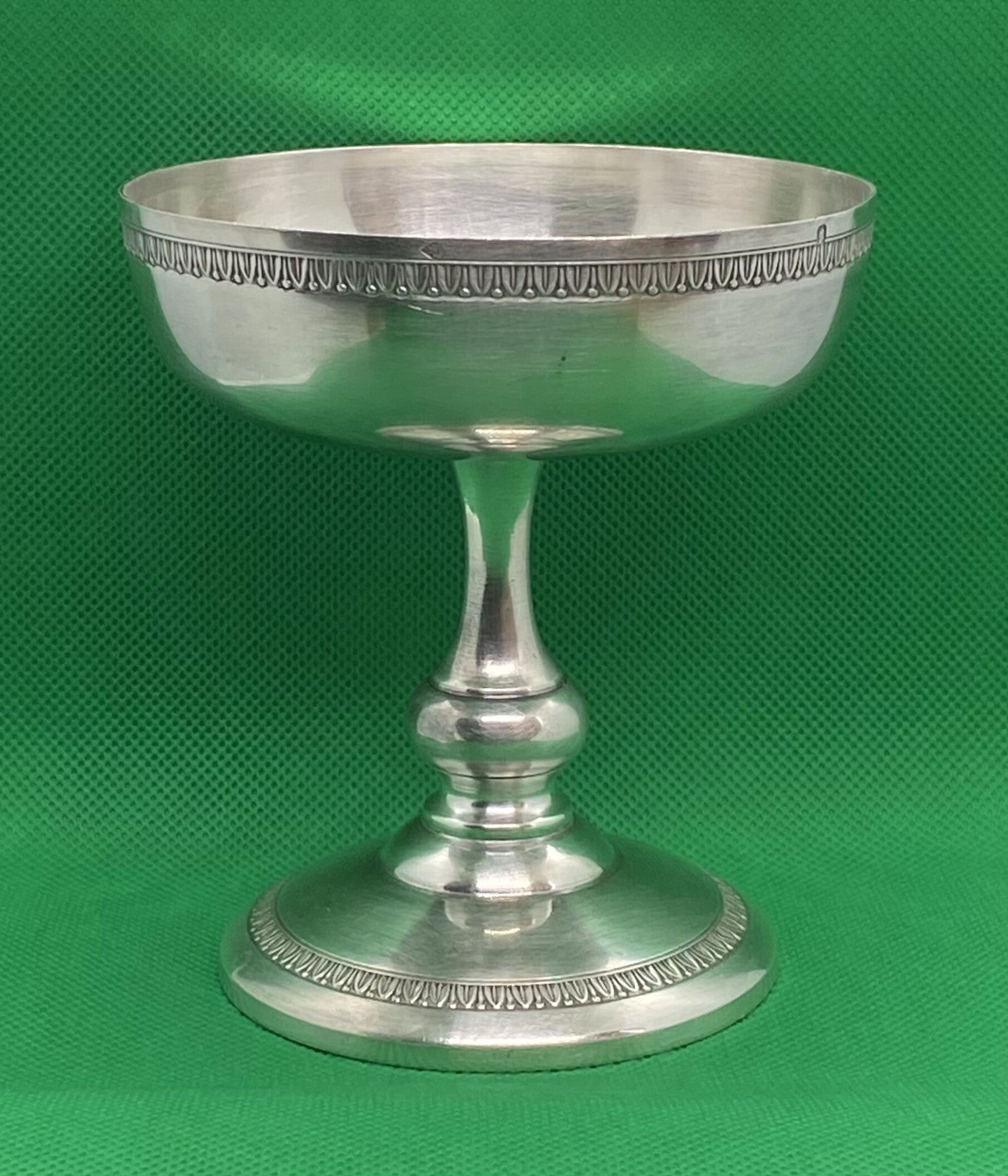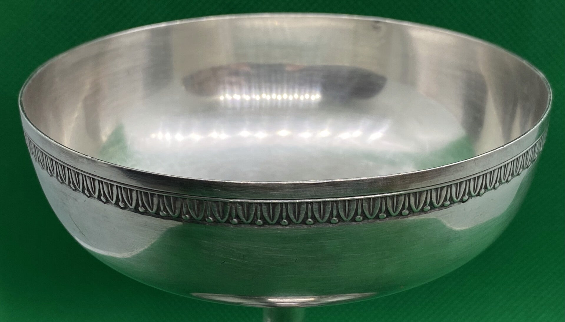 Prachtige antieke Art Deco Franse Louis Goignet .950 Zilveren sokkelkom met prachtig gegraveerde rand aan de boven- en onderkant, prachtige vormgeving. Dit stuk dateert uit eind 19e eeuw - jaren 20, Parijs, Frankrijk.
