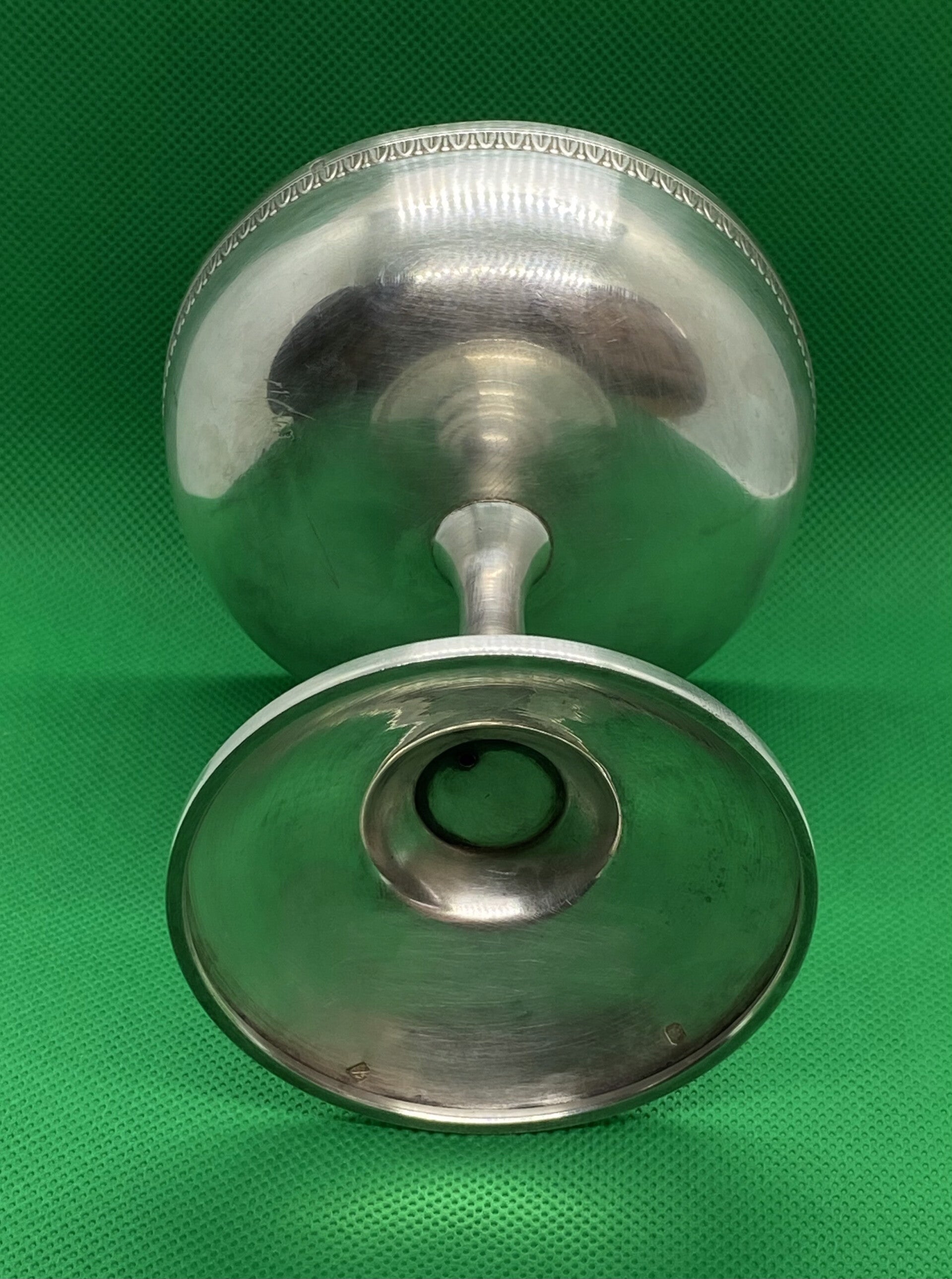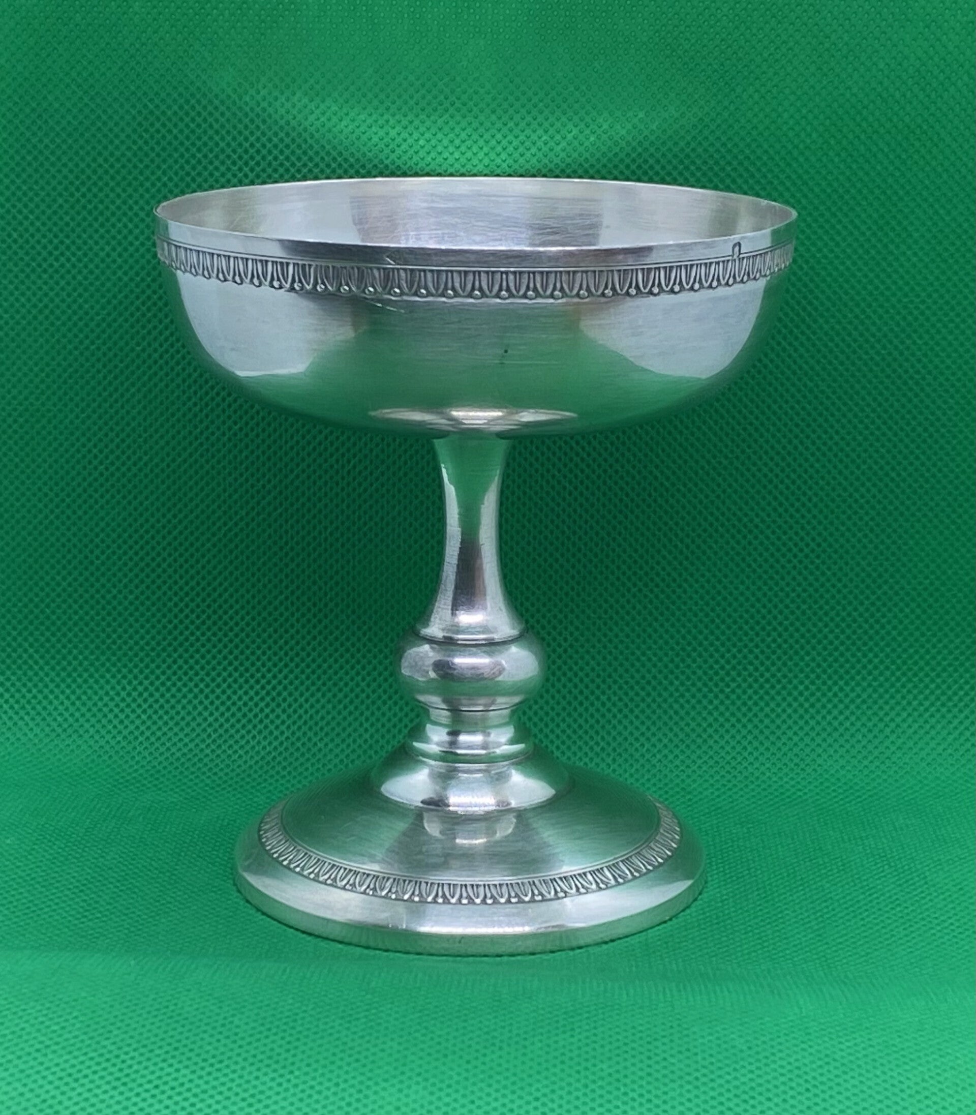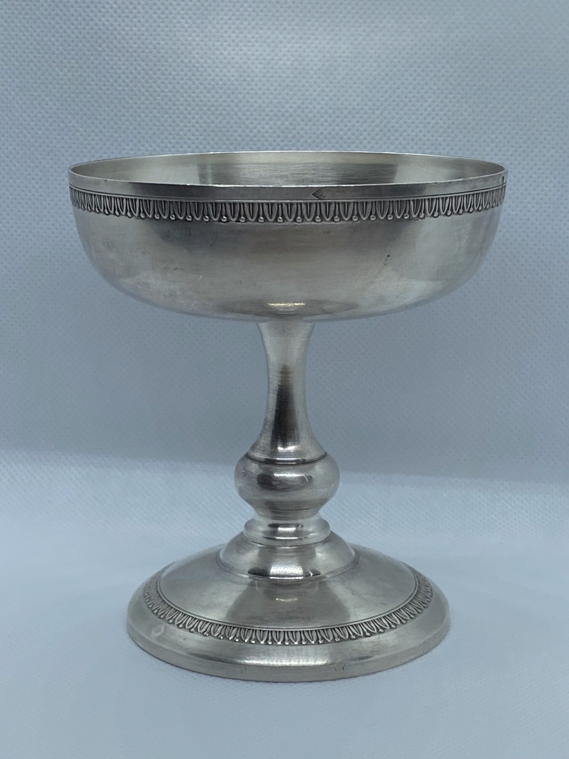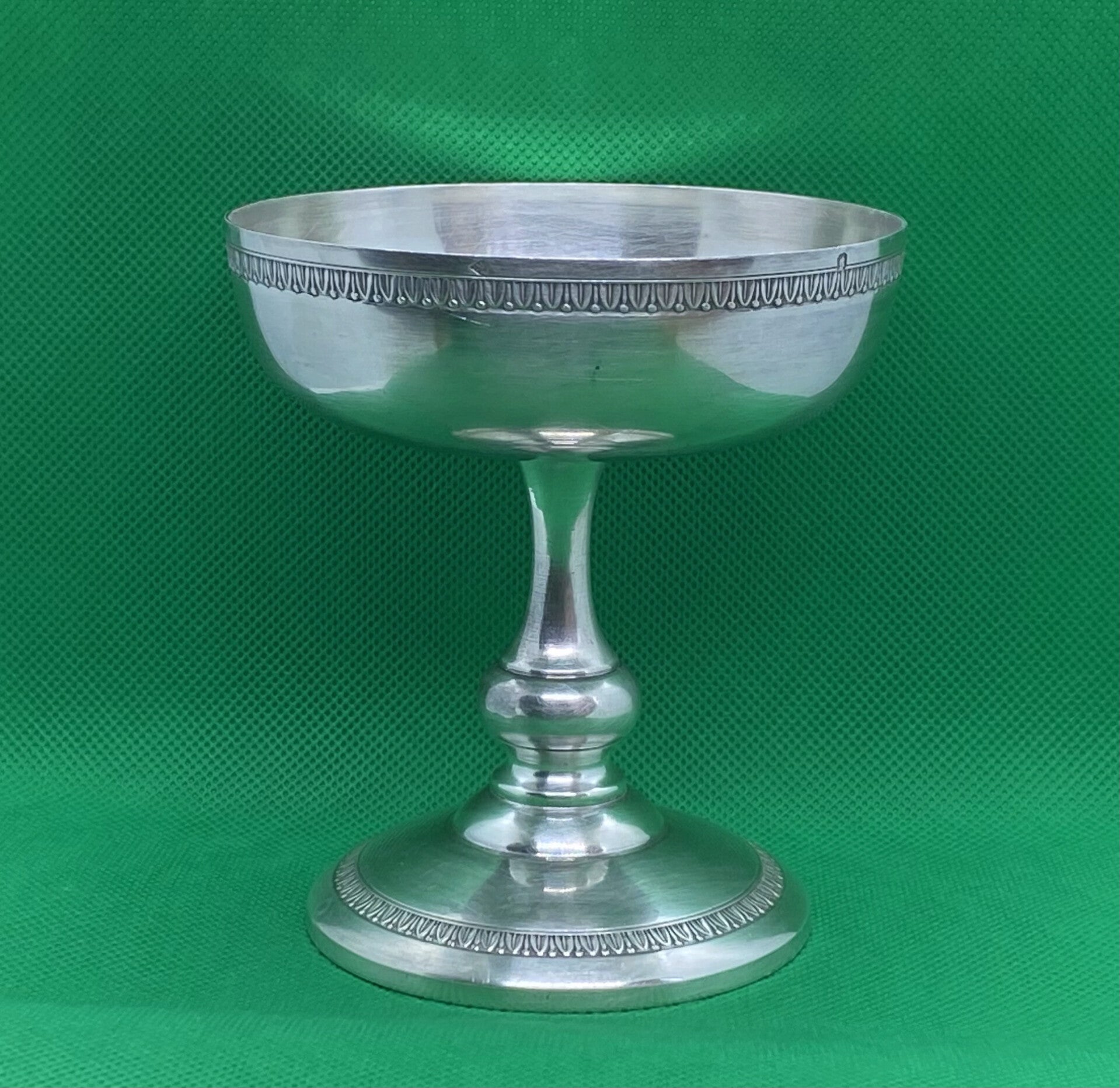 Prachtige antieke Art Deco Franse Louis Goignet .950 Zilveren sokkelkom met prachtig gegraveerde rand aan de boven- en onderkant, prachtige vormgeving. Dit stuk dateert uit eind 19e eeuw - jaren 20, Parijs, Frankrijk.