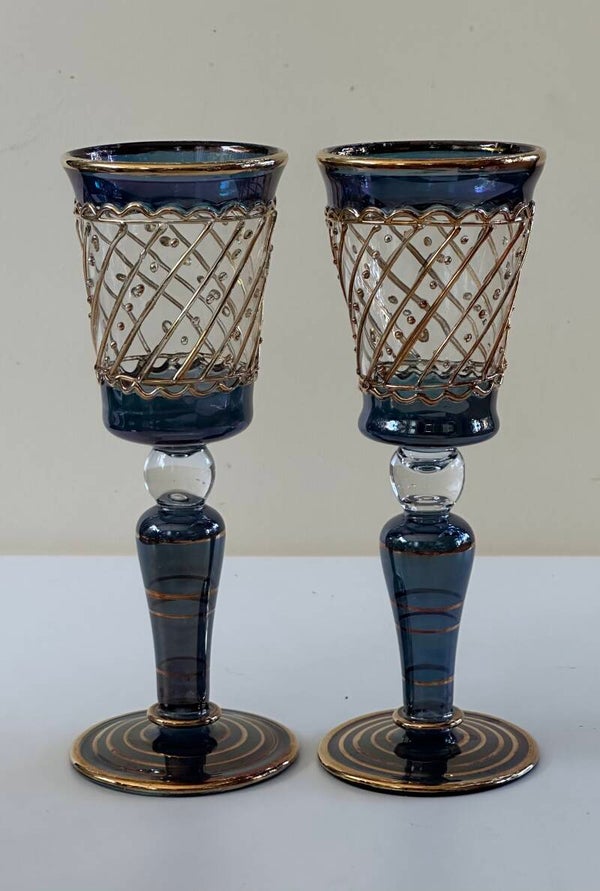 Tipetto Veneziano Fully handmade glasses with exterior gold leaf.