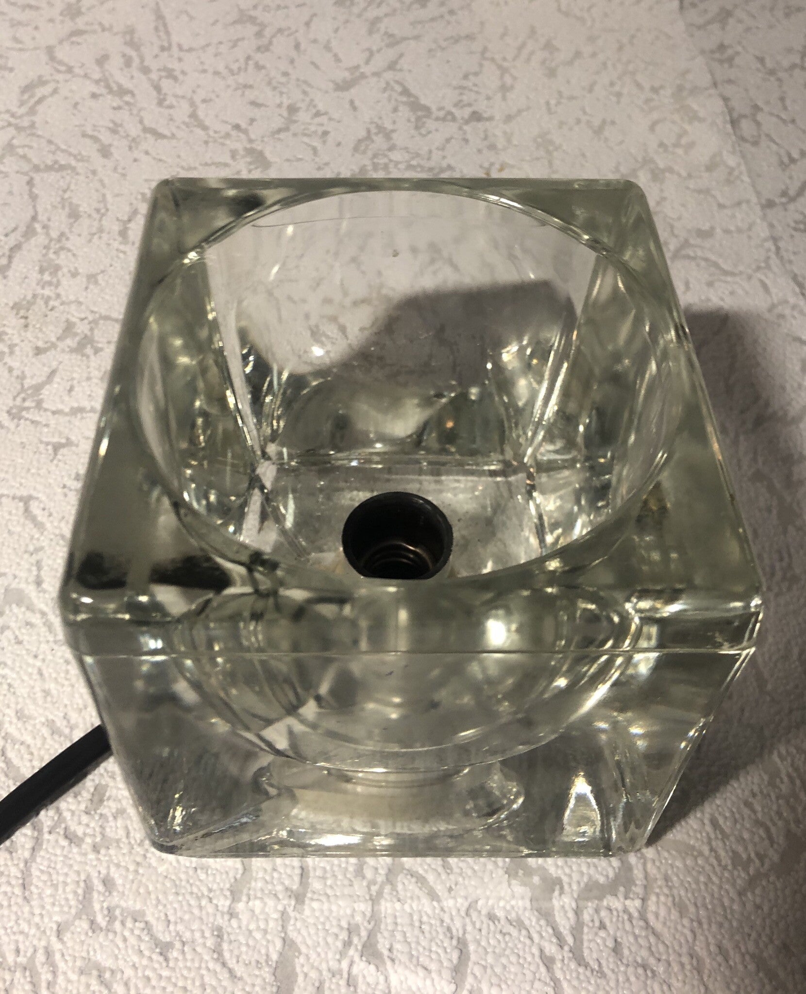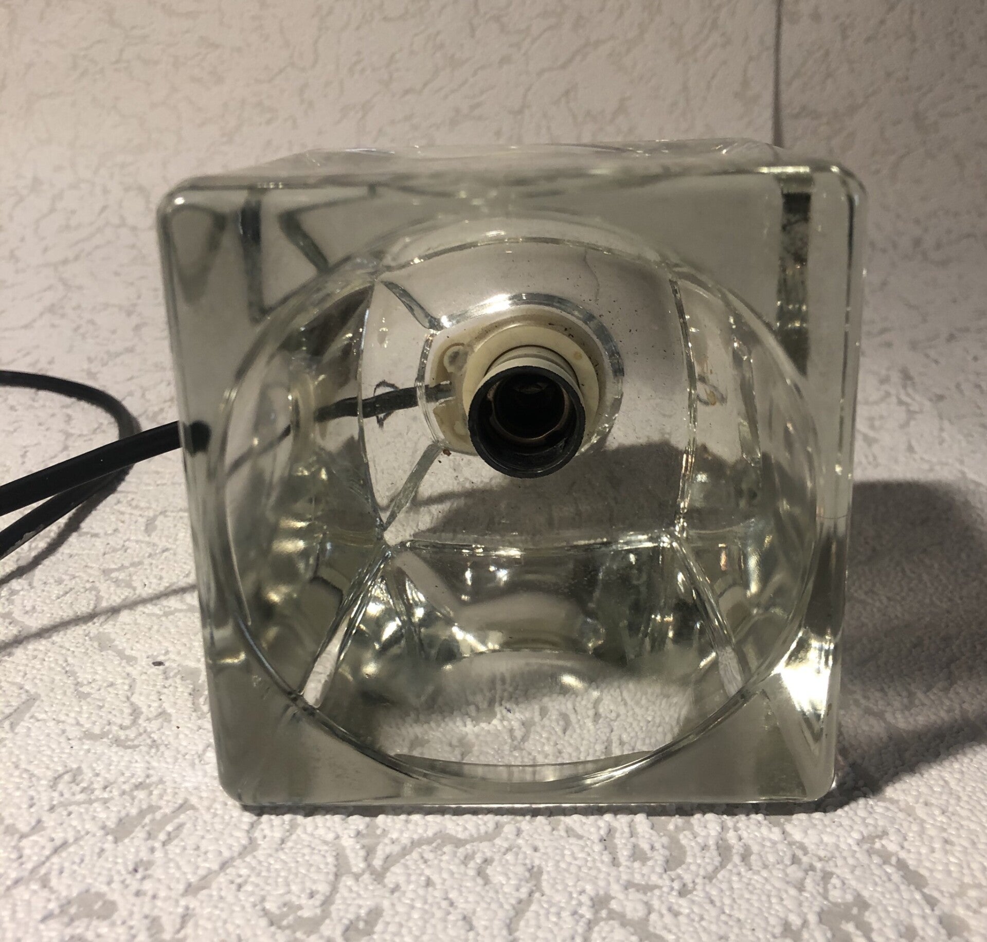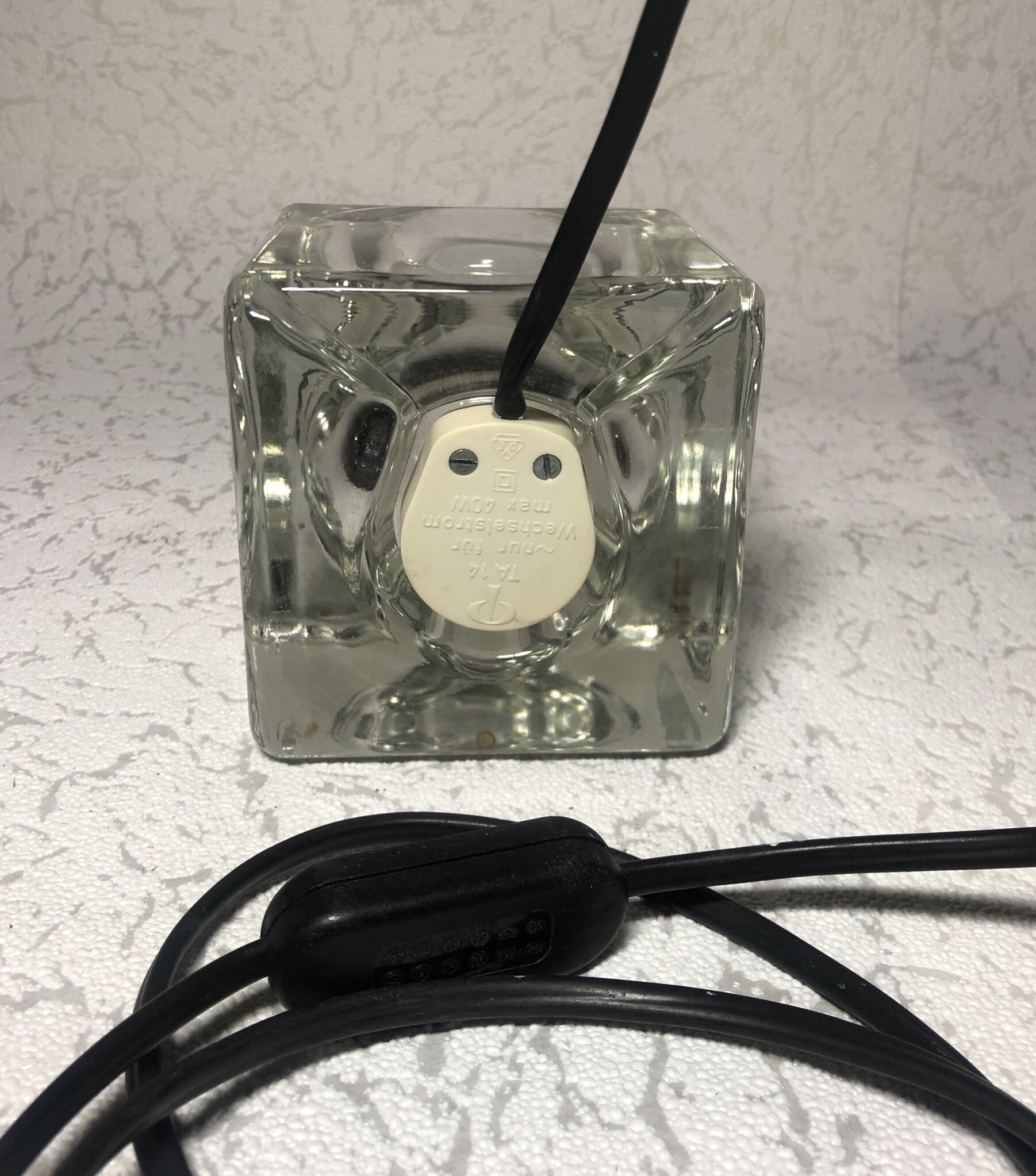 Glazen kubus tafellampje uit de jaren 70. Fabrikant: Peill and Putzler, Duitsland. Afmetingen: 10 x 10 x 10.