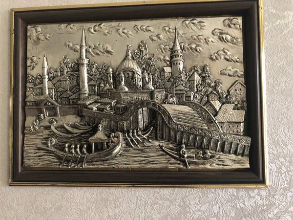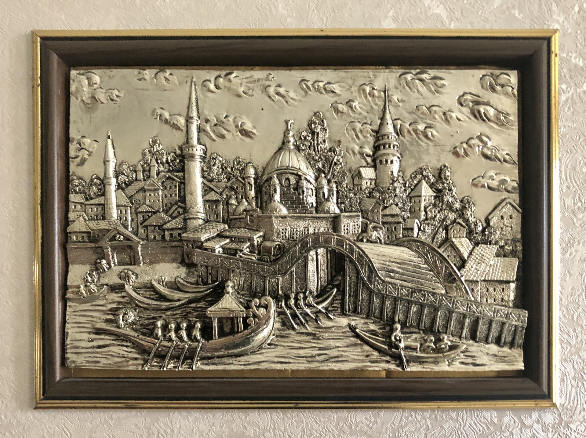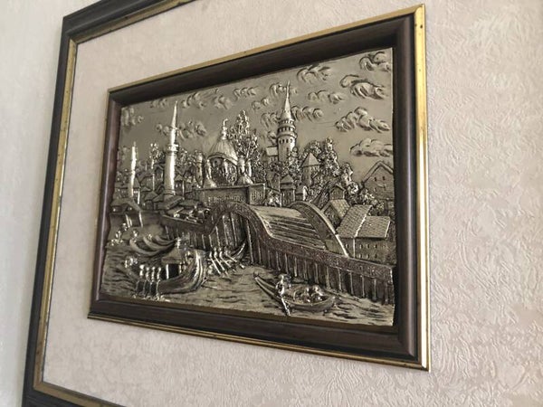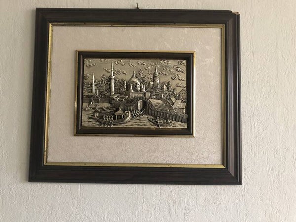 Verzilverde ingelijste muurdecoratie.