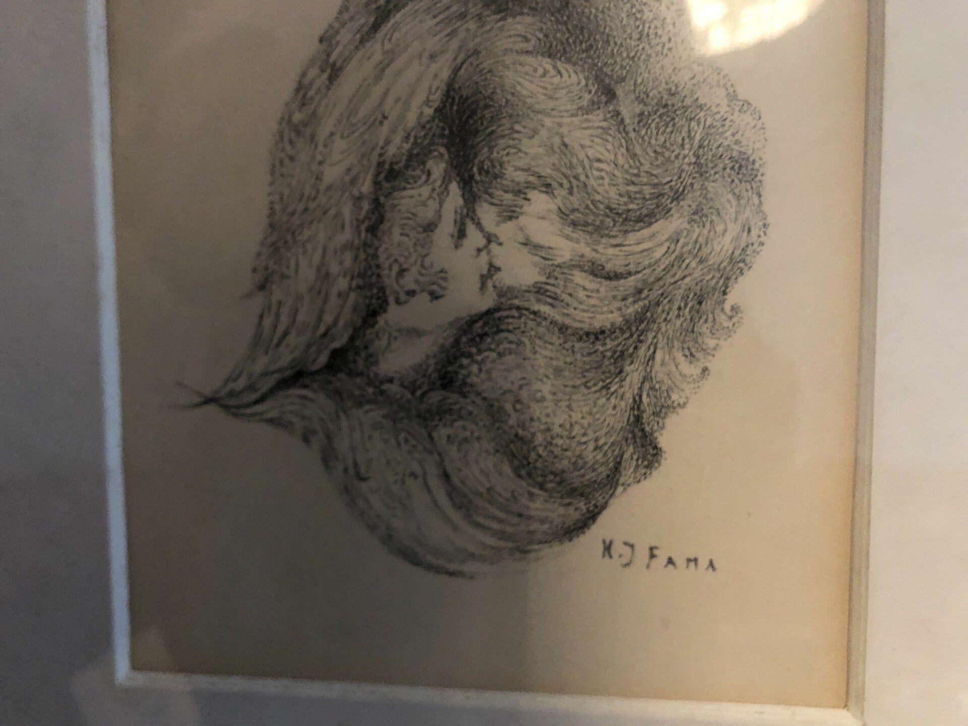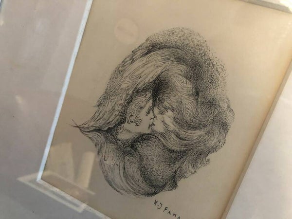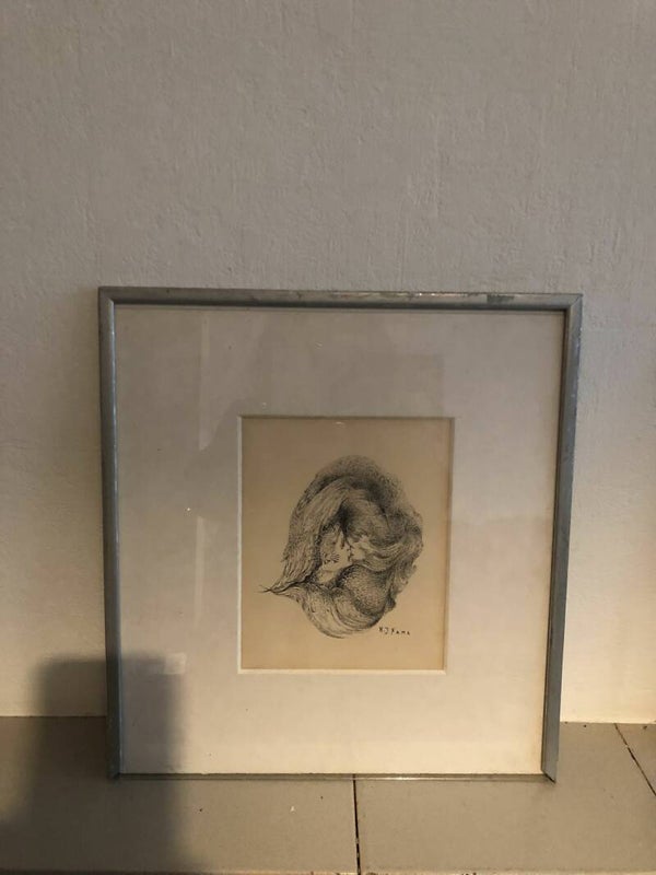 Ingelijste tekening met potlood.