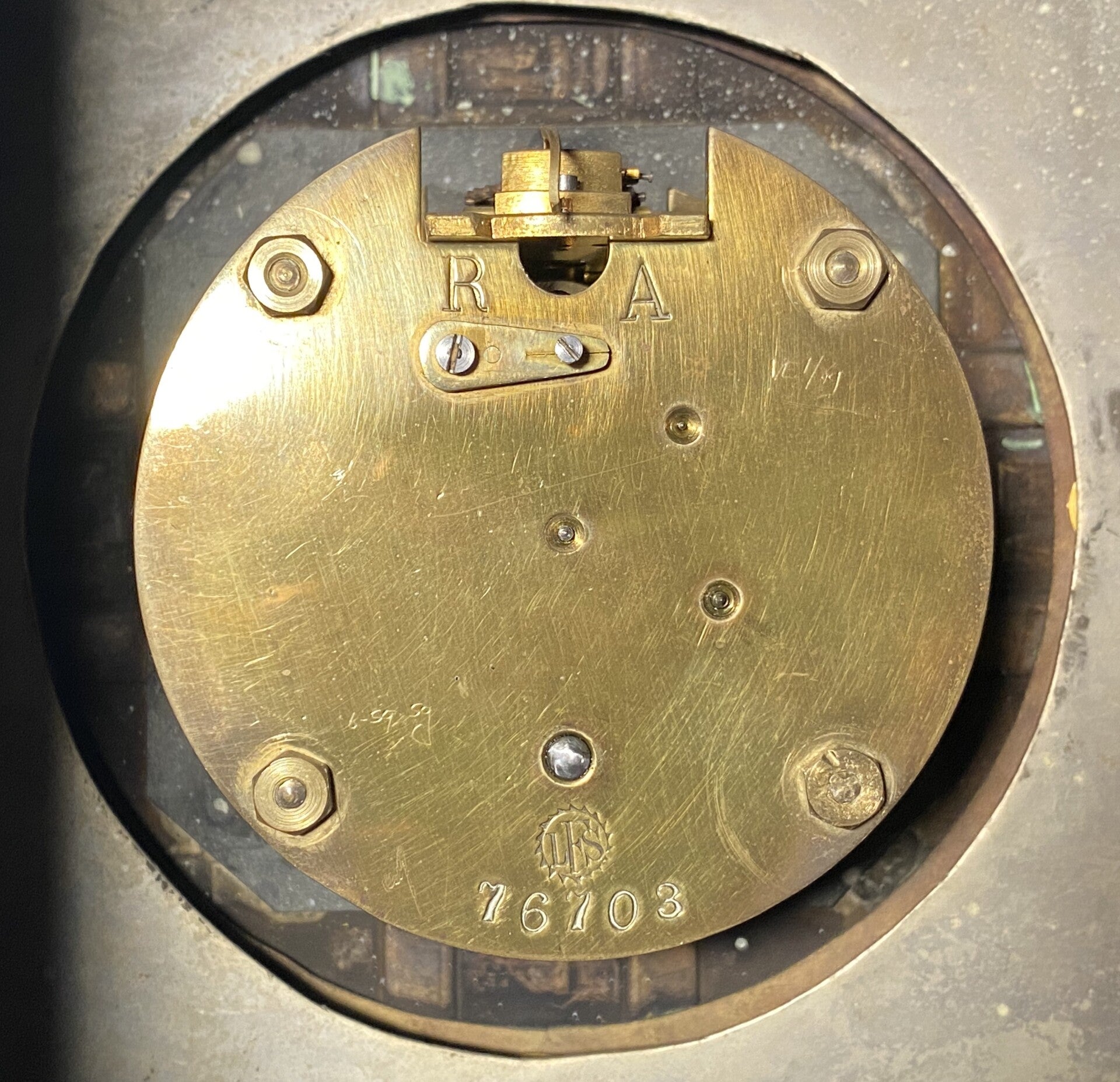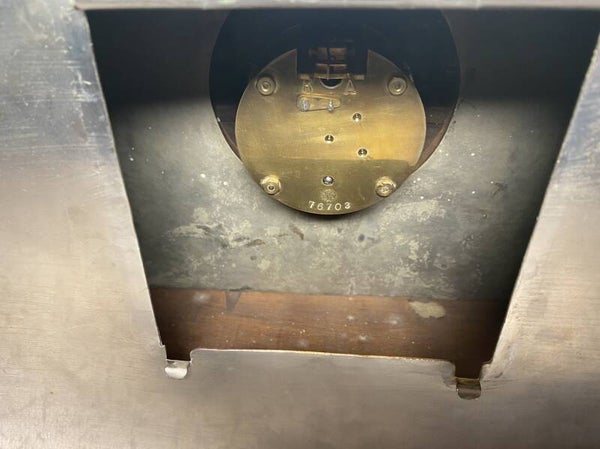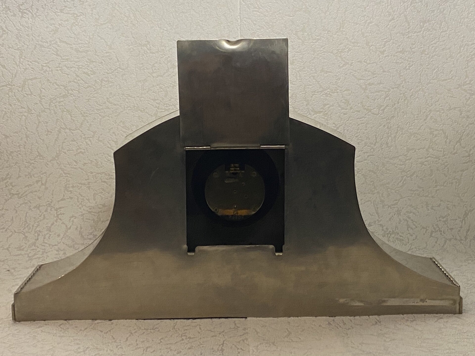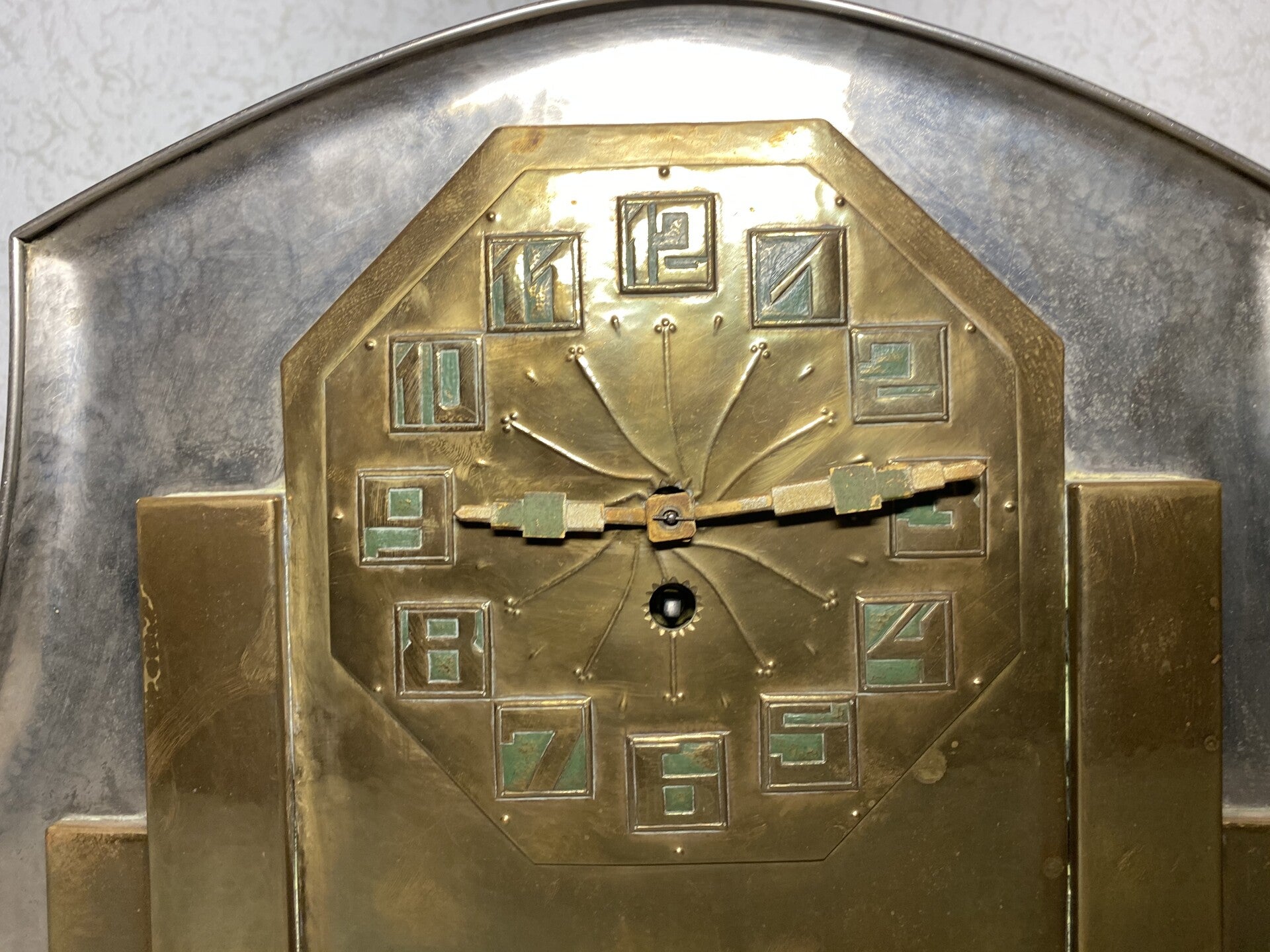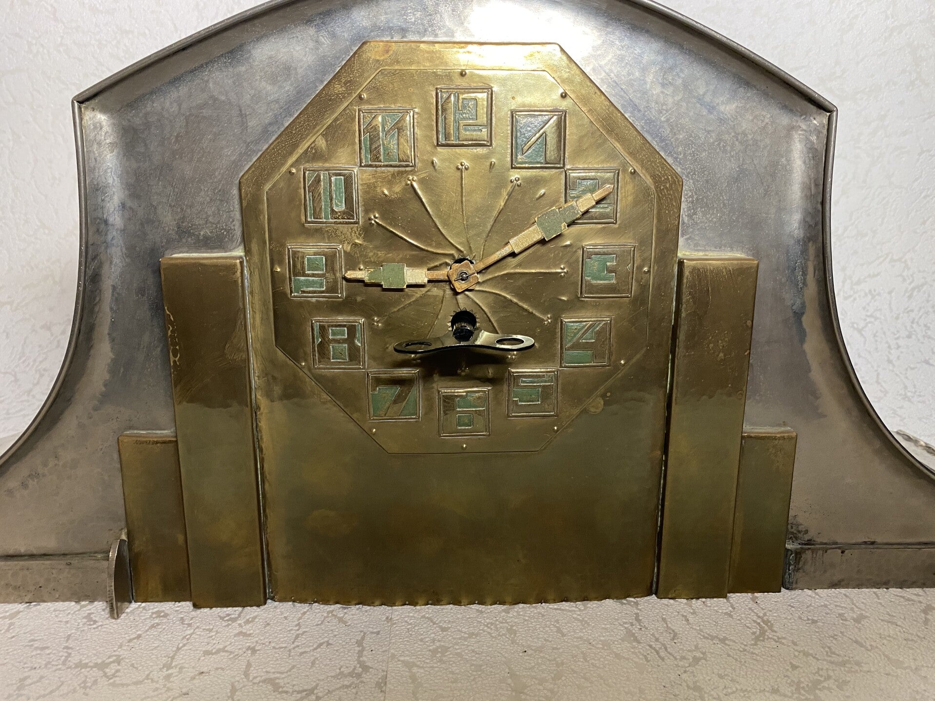 Zilverkleurig/ koperen schoorsteenpendule in Art Deco stijl.\