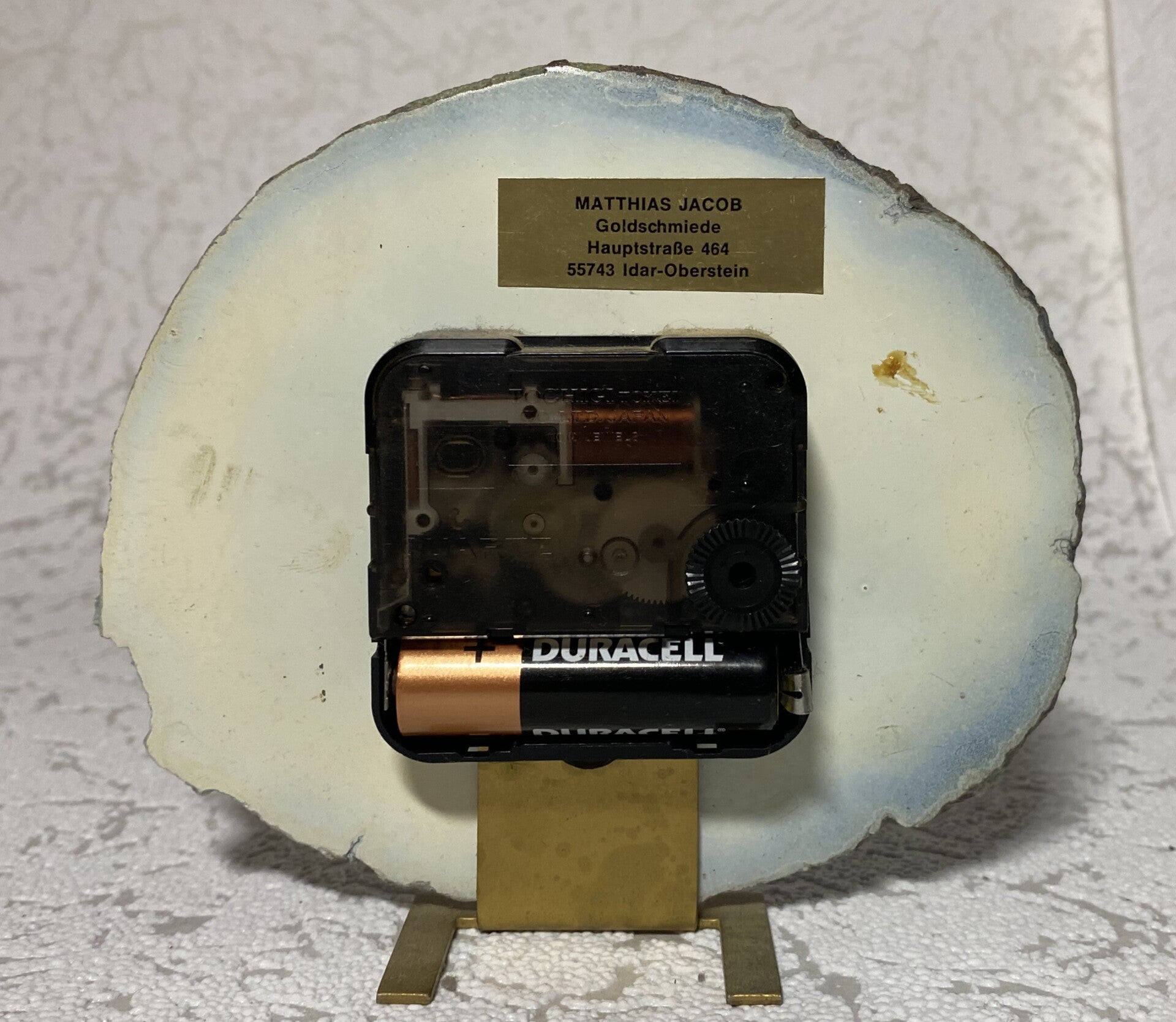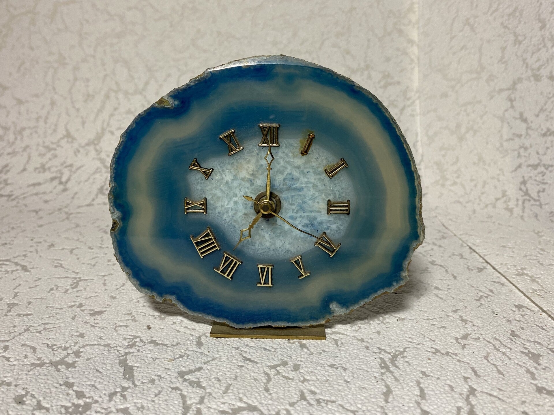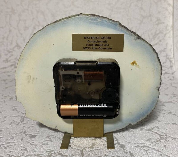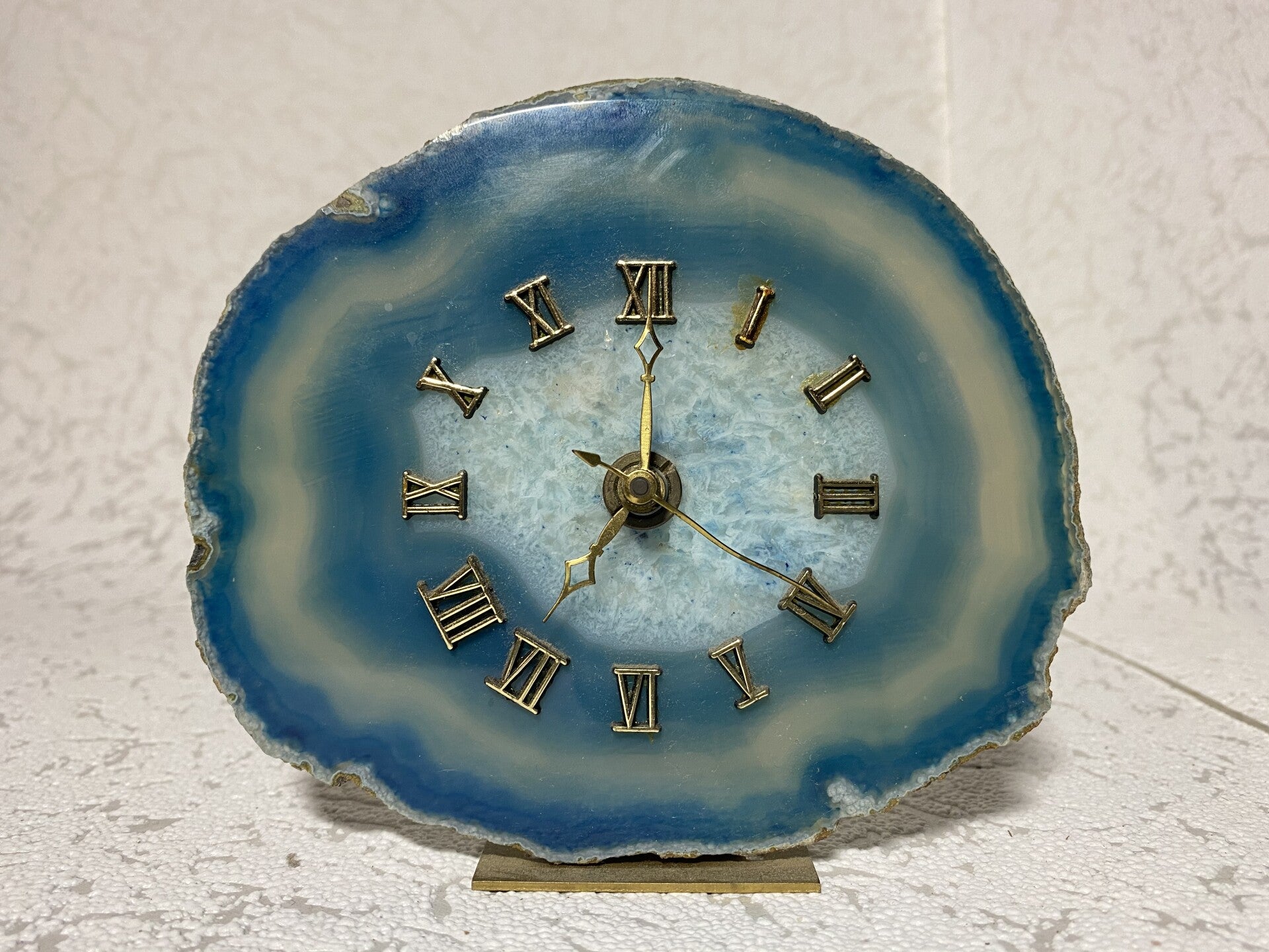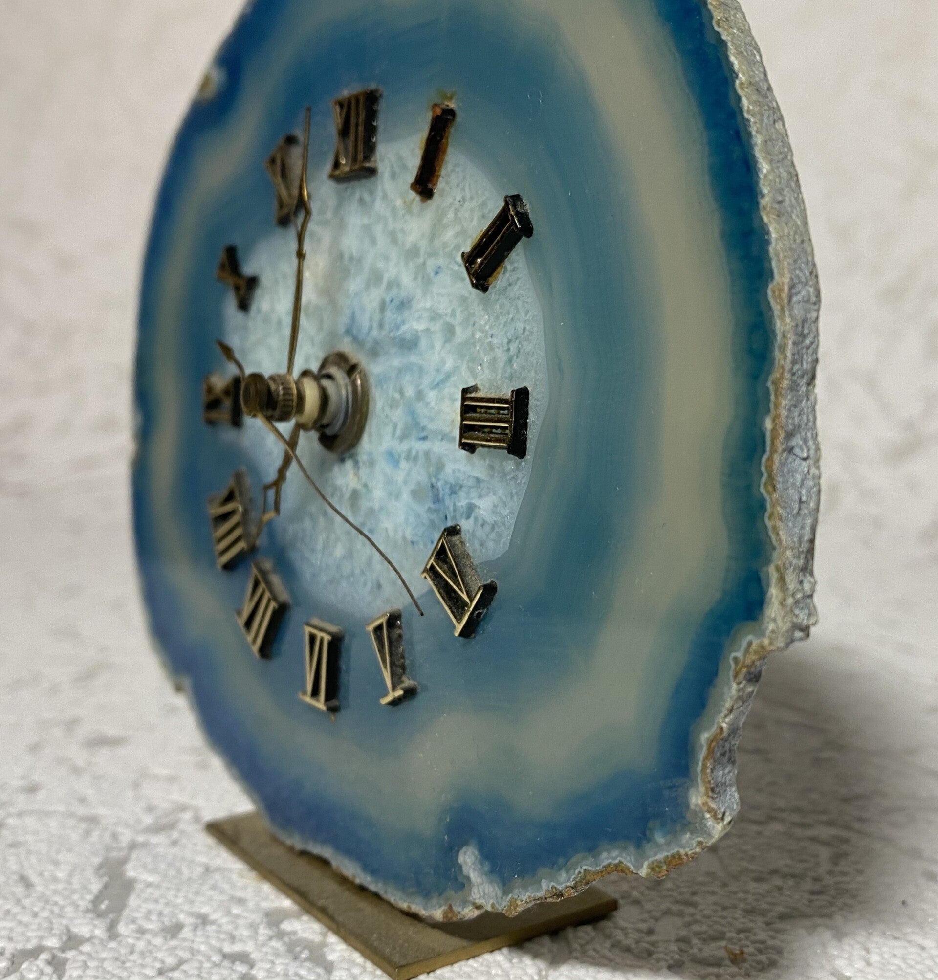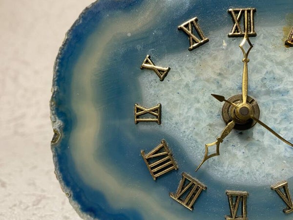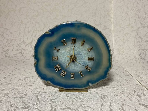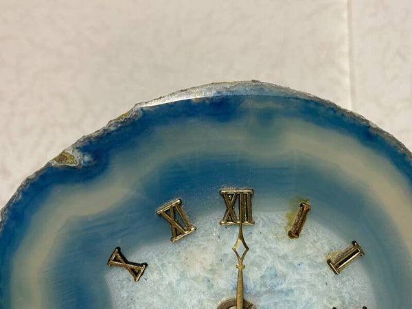 Kleine blauwe Agaat klok met romeinse cijfers. Werkt op batterij.