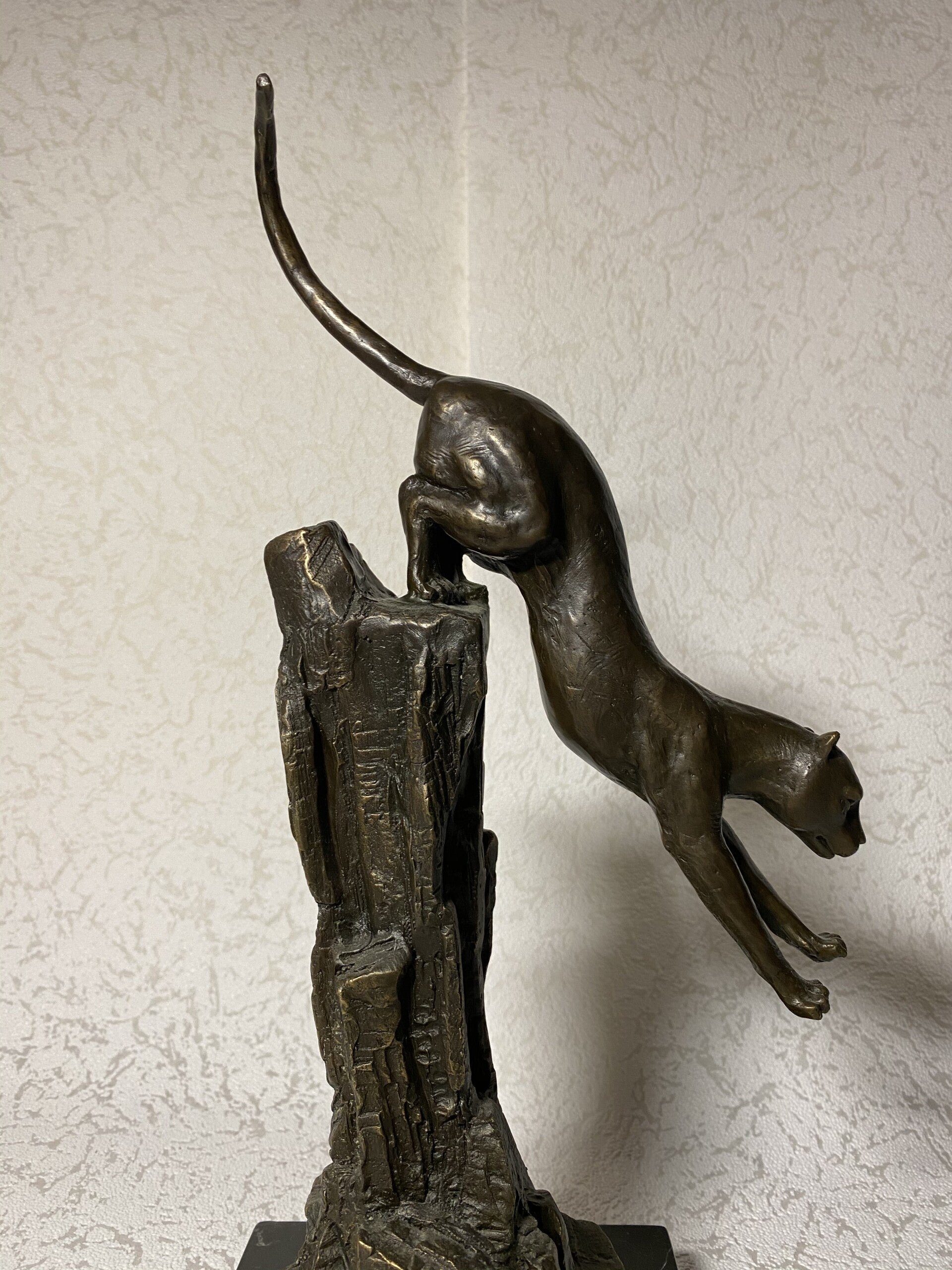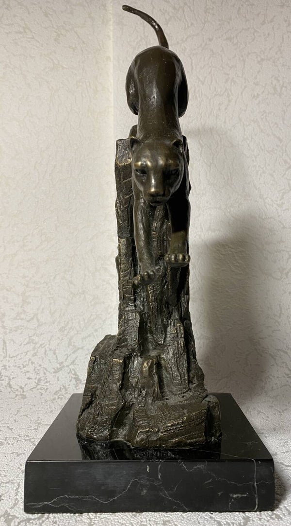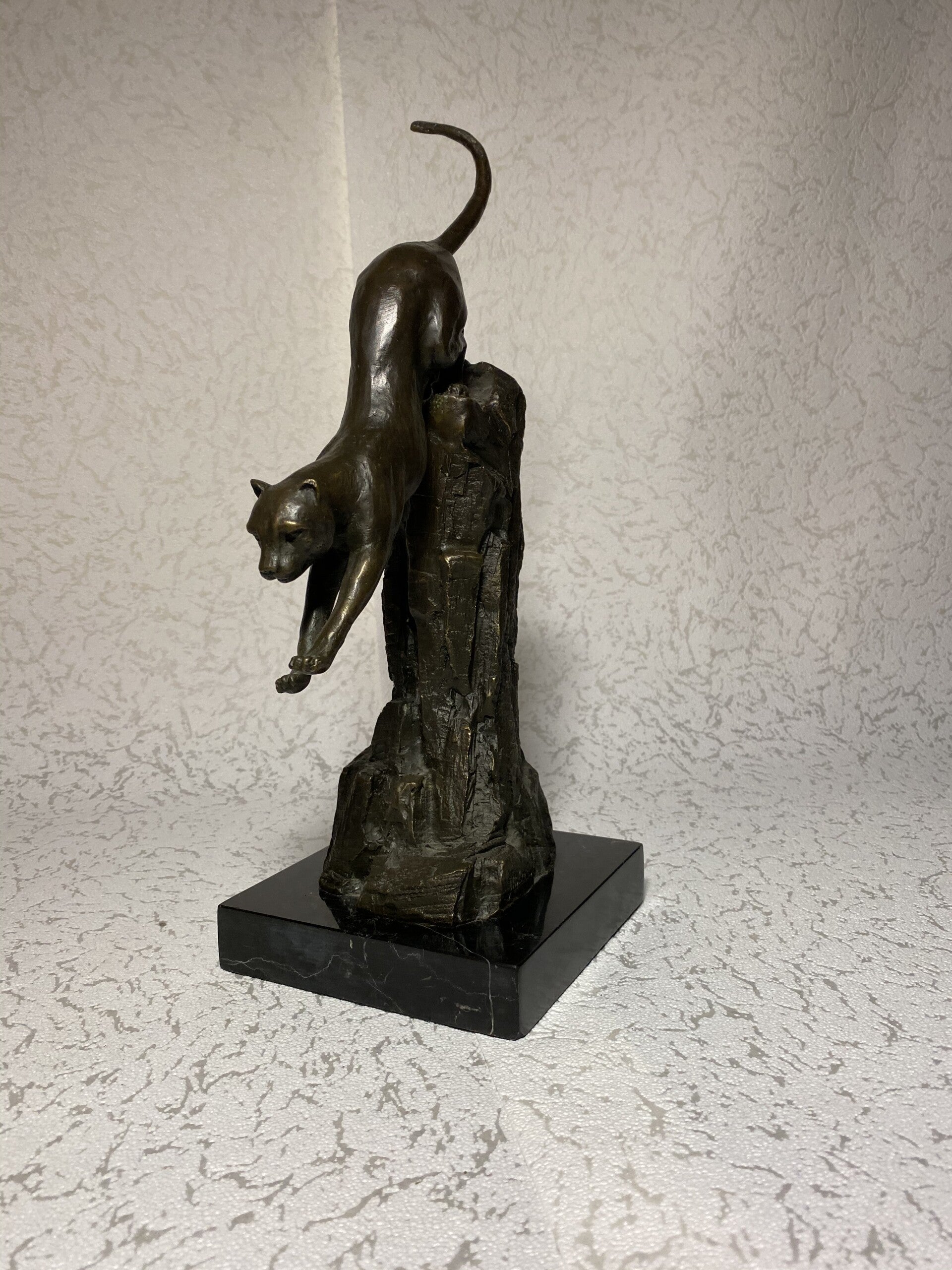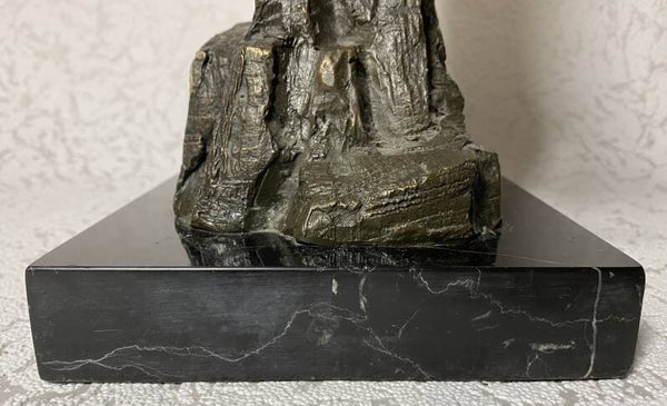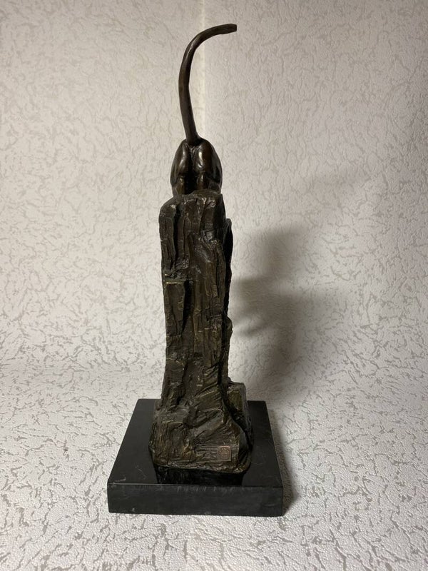 Afmetingen: totale hoogte: 40cm, marmer: 15 x 15 x 3cm, beeld hoogte: 24,5cm, breedte: 30cm.