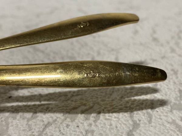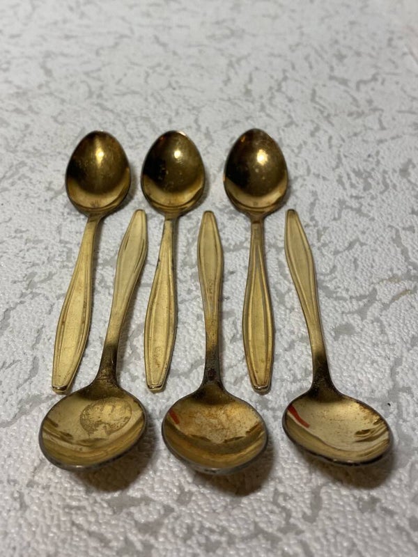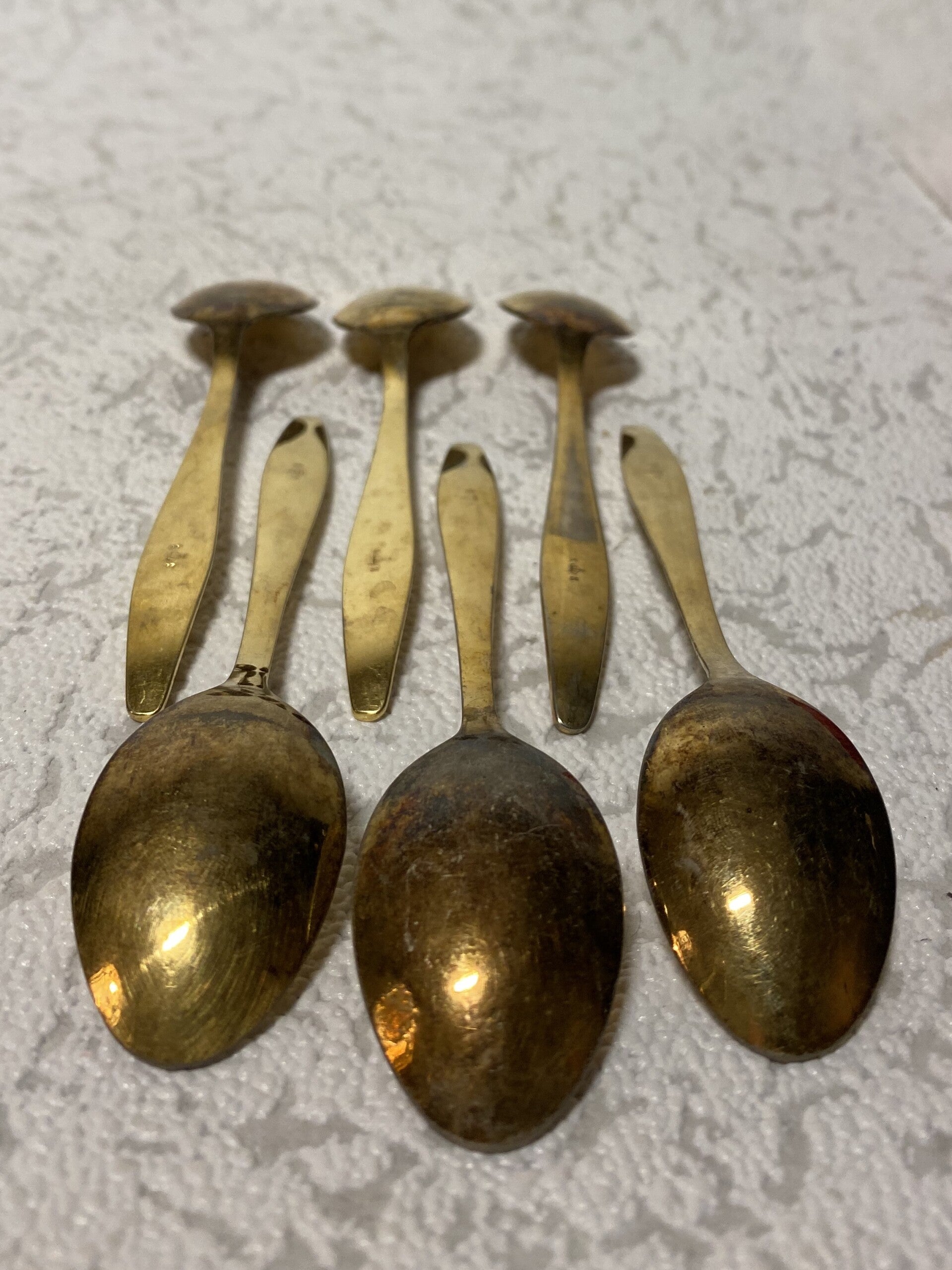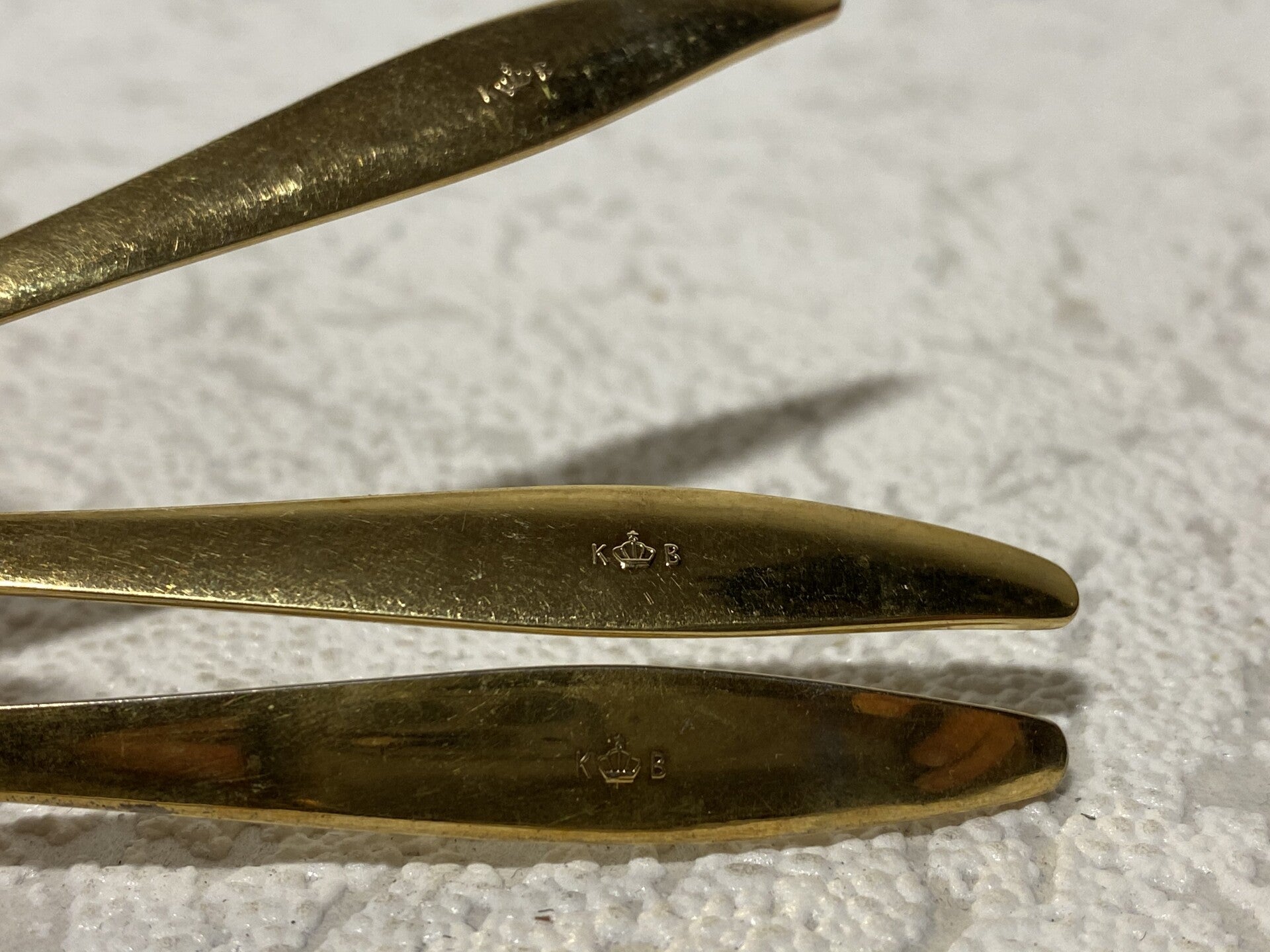 Verzilverde en vergulde theelepels van K B in originele doos.