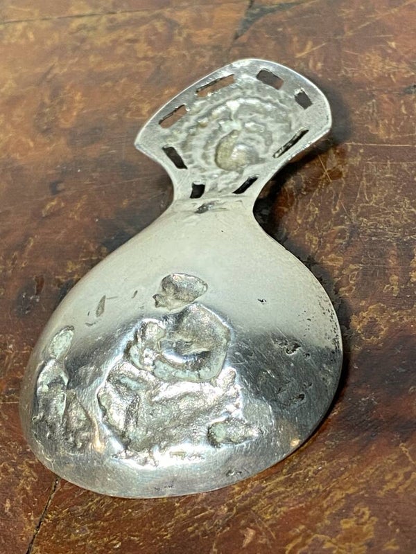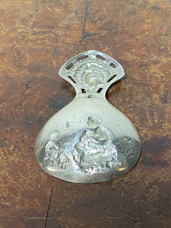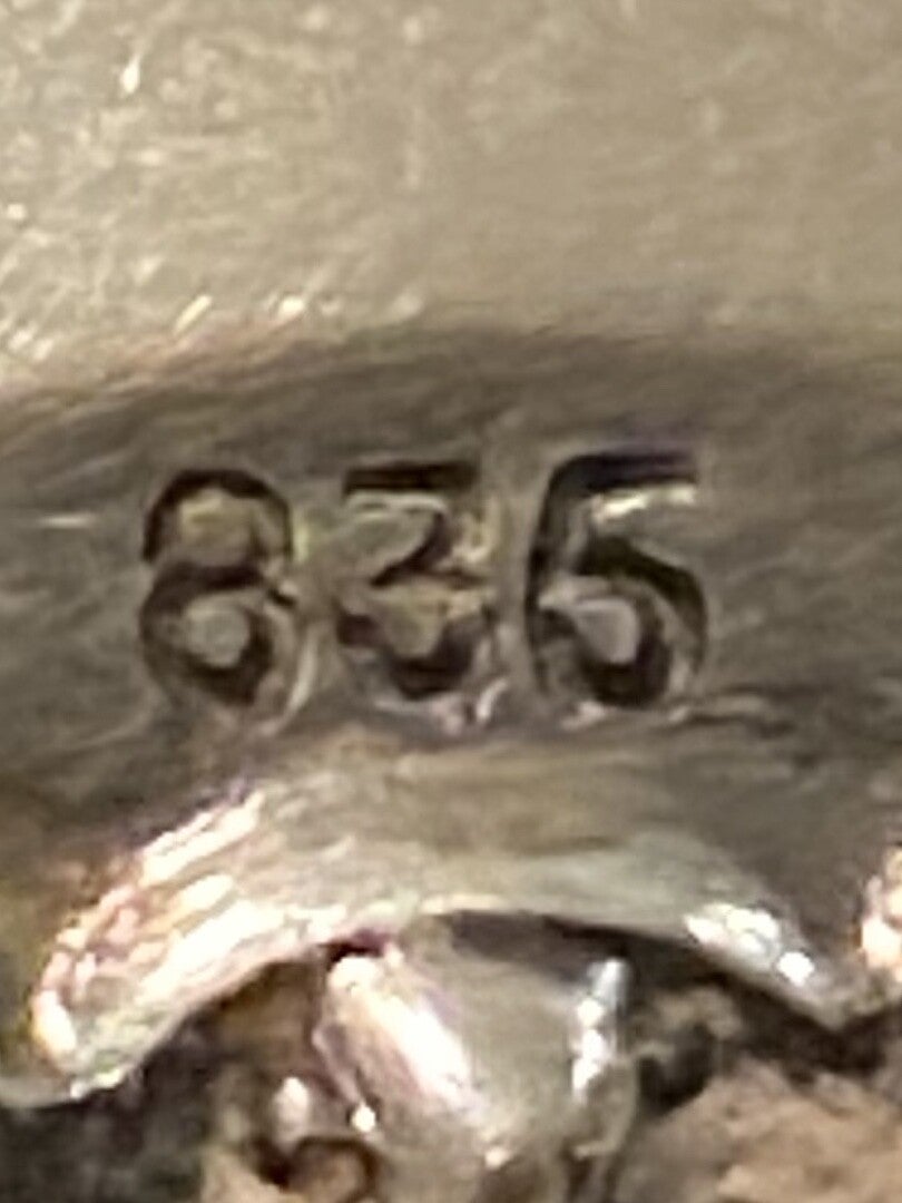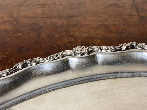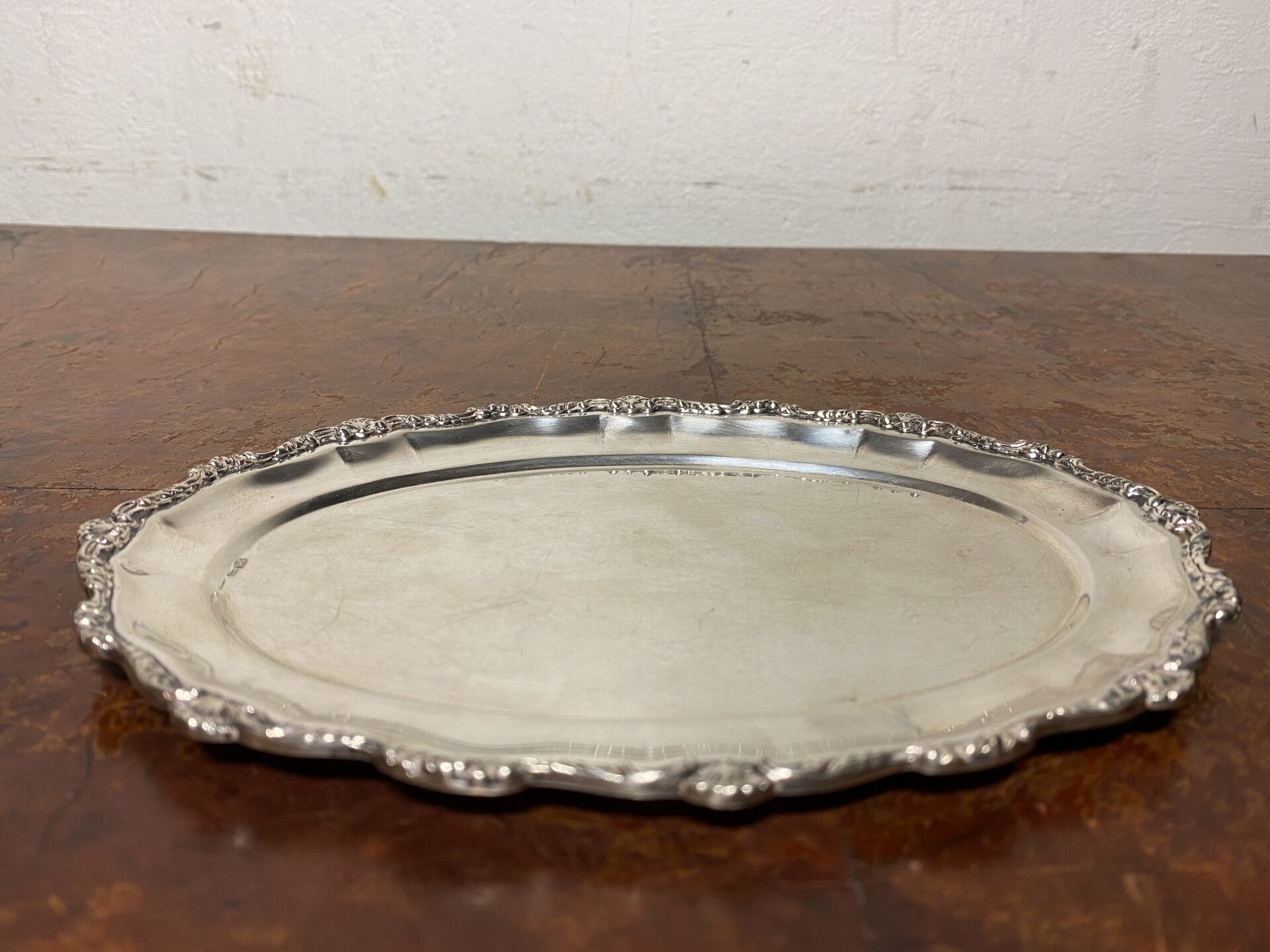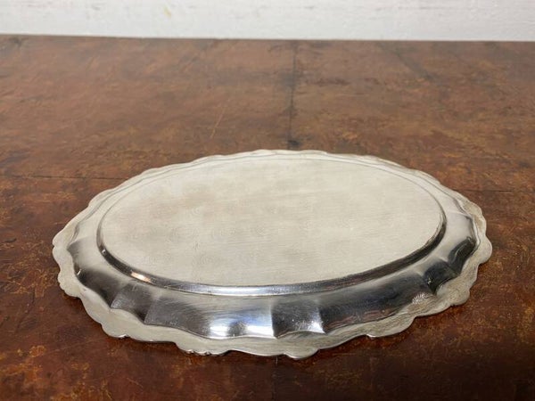 -Zilveren dienblad met fraai versierde rand, gemerkt: .835, DA +, ·· ZII dus Nederlands en van 1953- tot heden. Afmetingen: 19,5 cm x 14 cm.