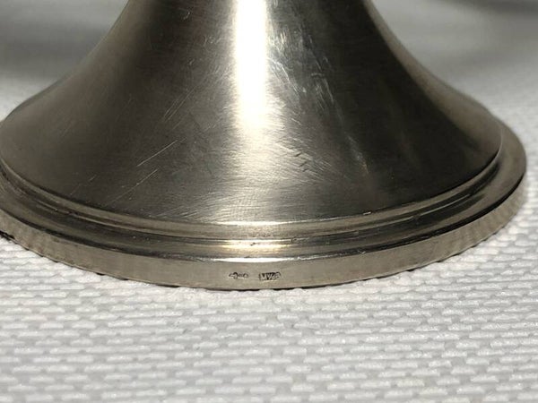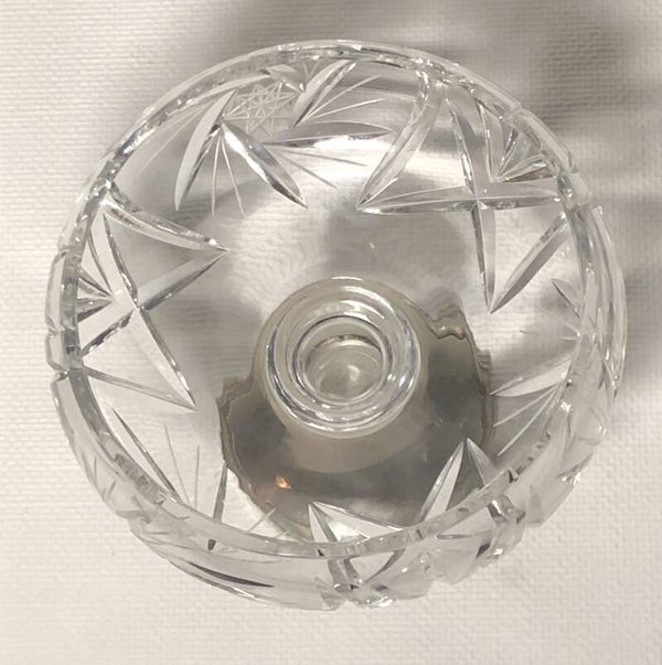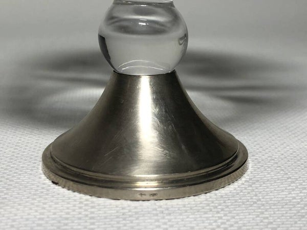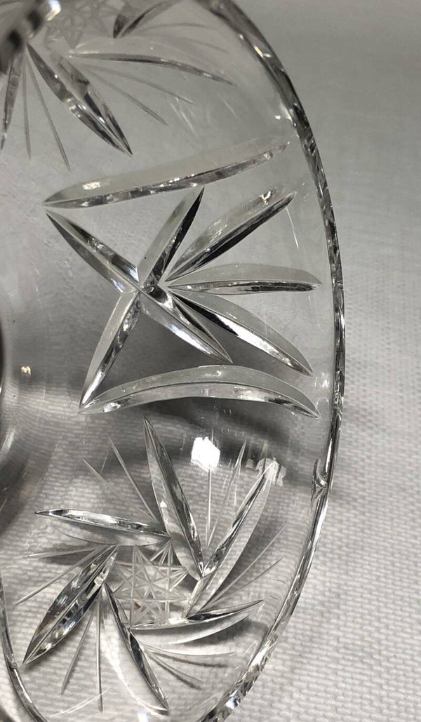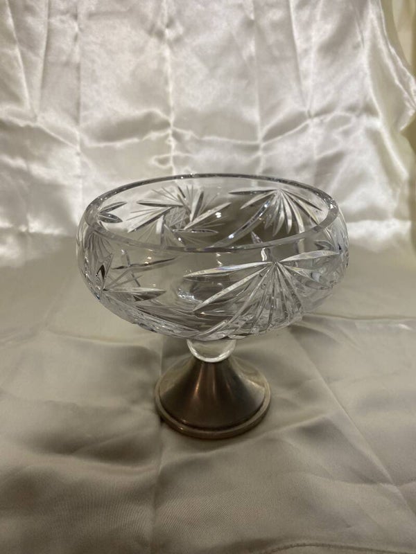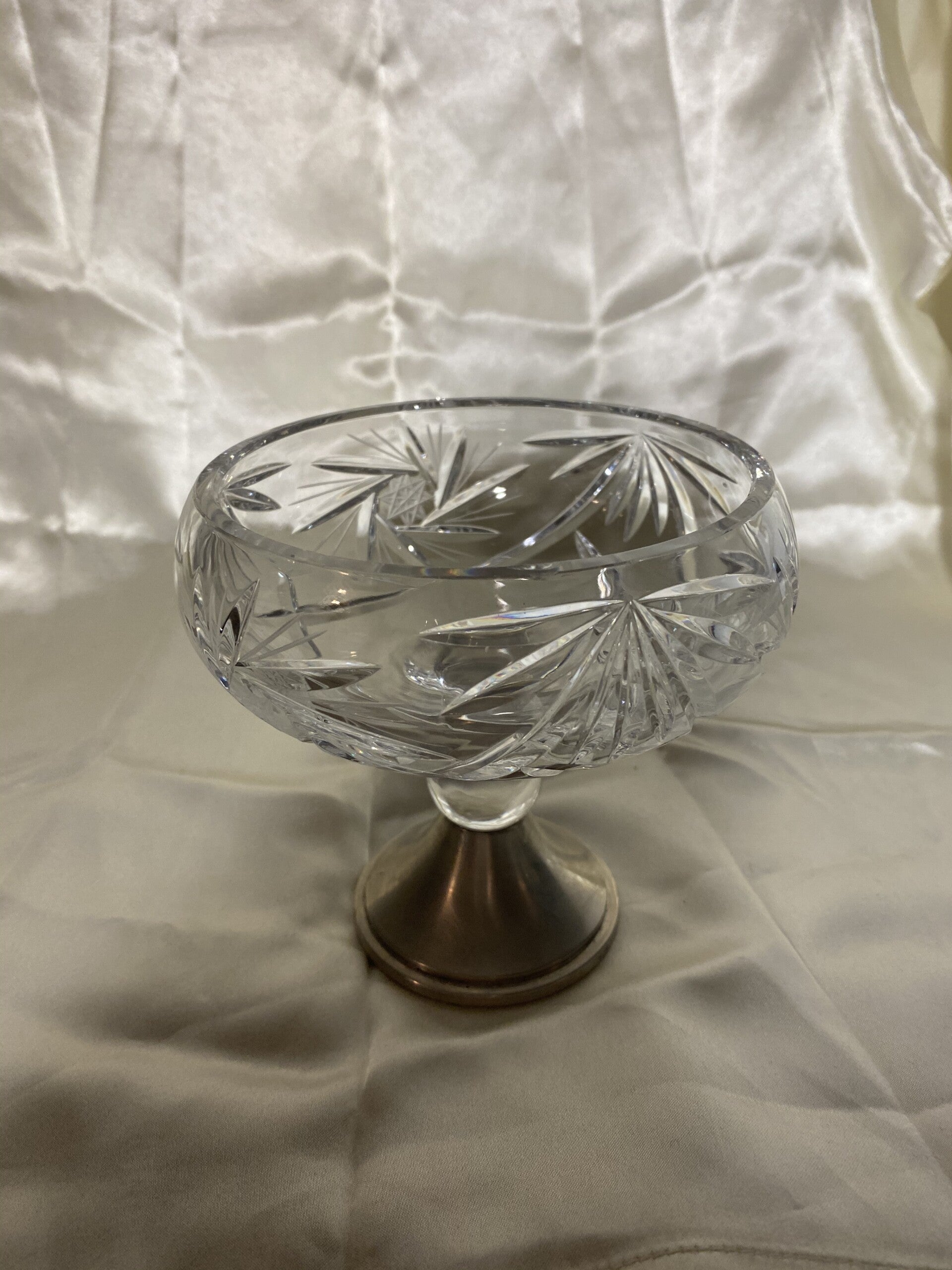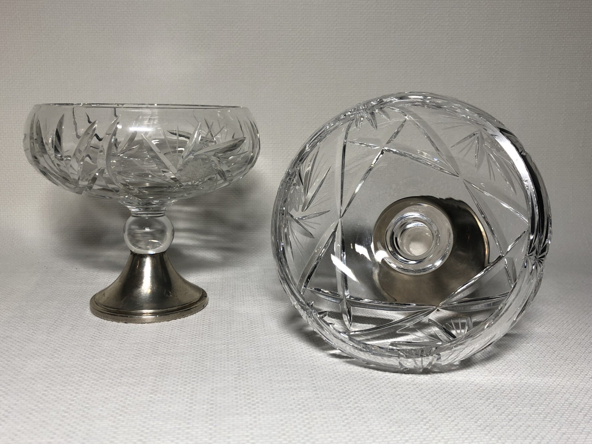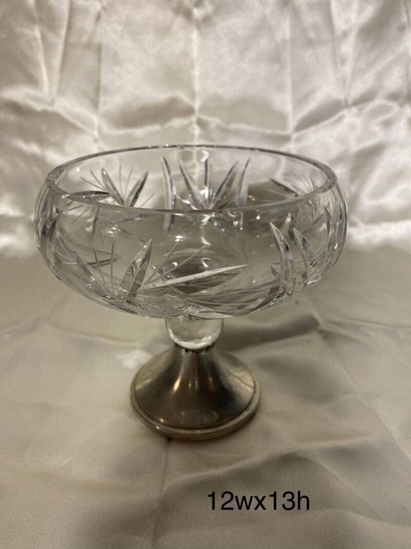 Twee kristallen schalen op zilveren voet. Afmetingen: hoogte: 13cm en breedt: 12cm.