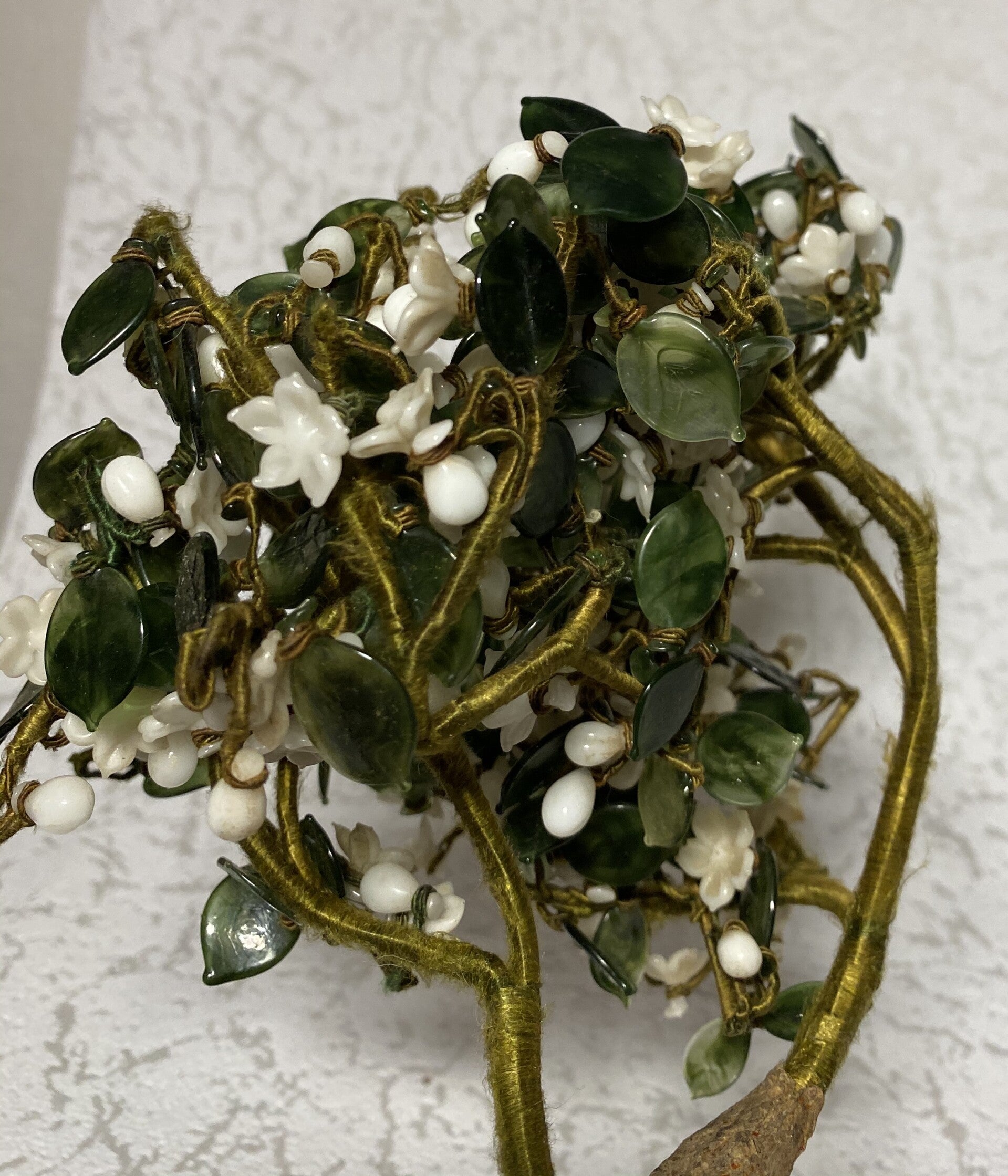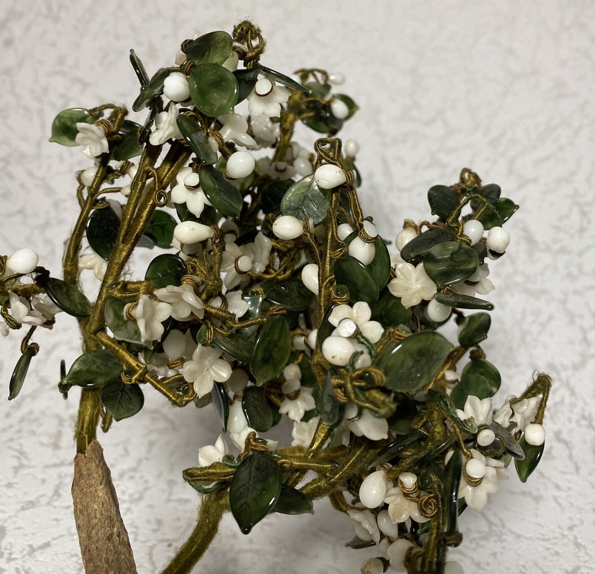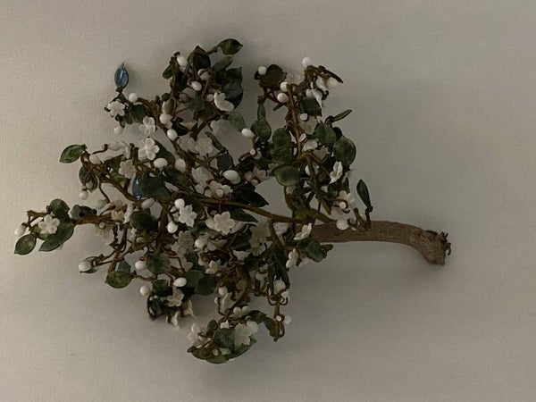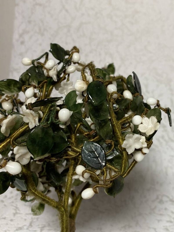 Takje met edelstenen als bladeren van nefriet en witte jade.
