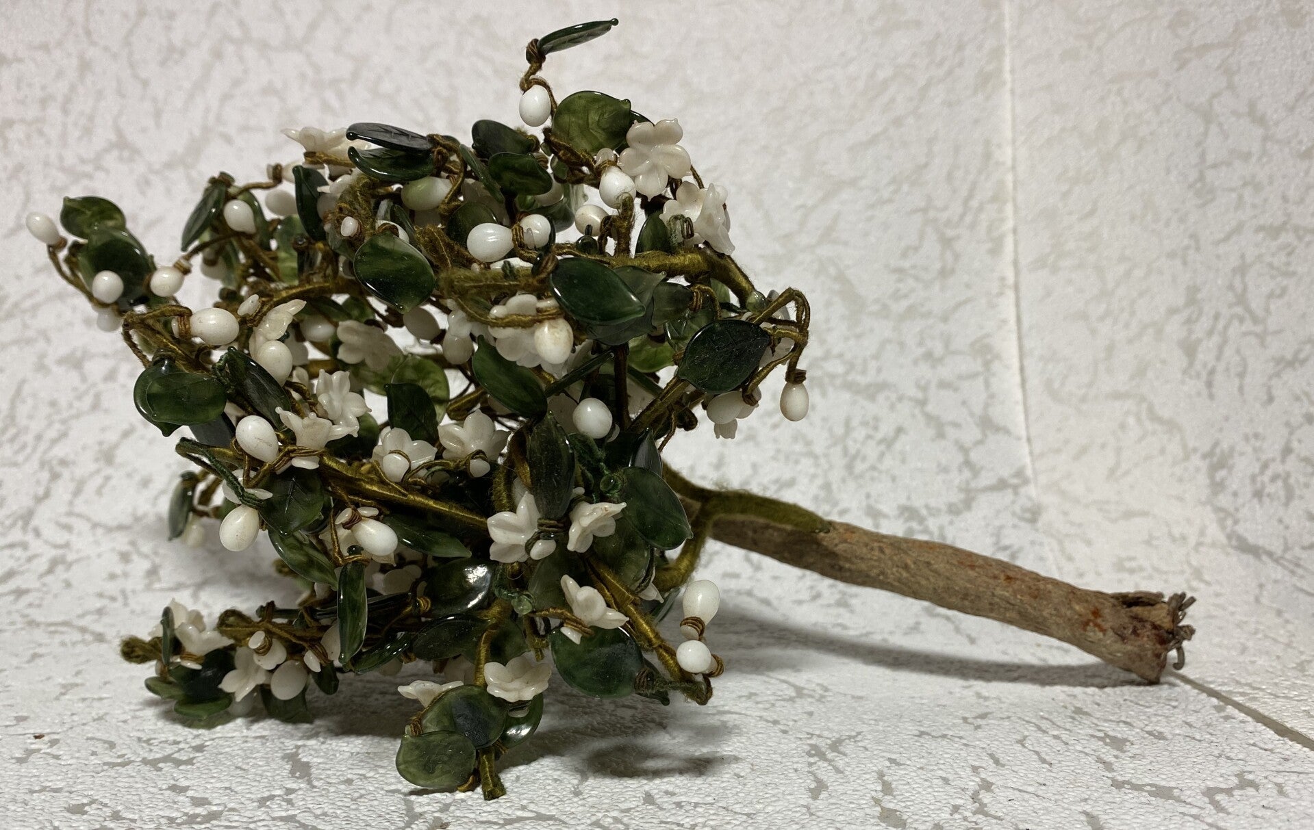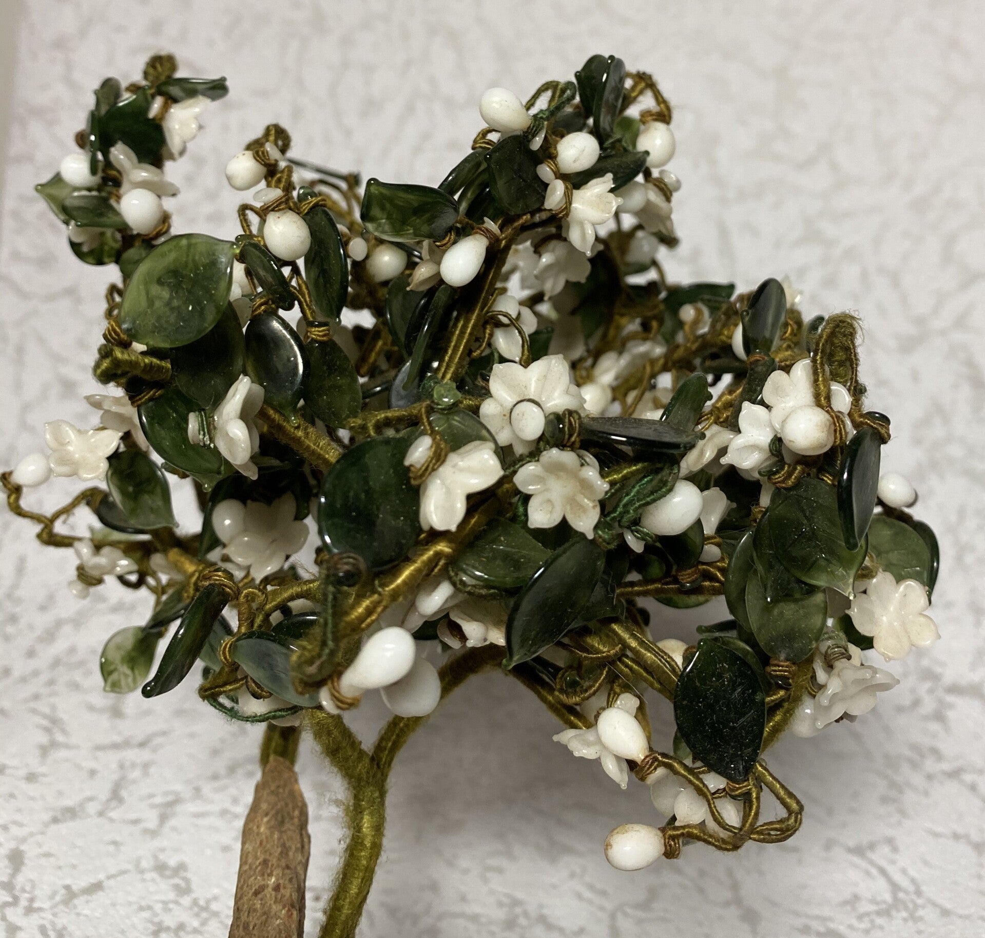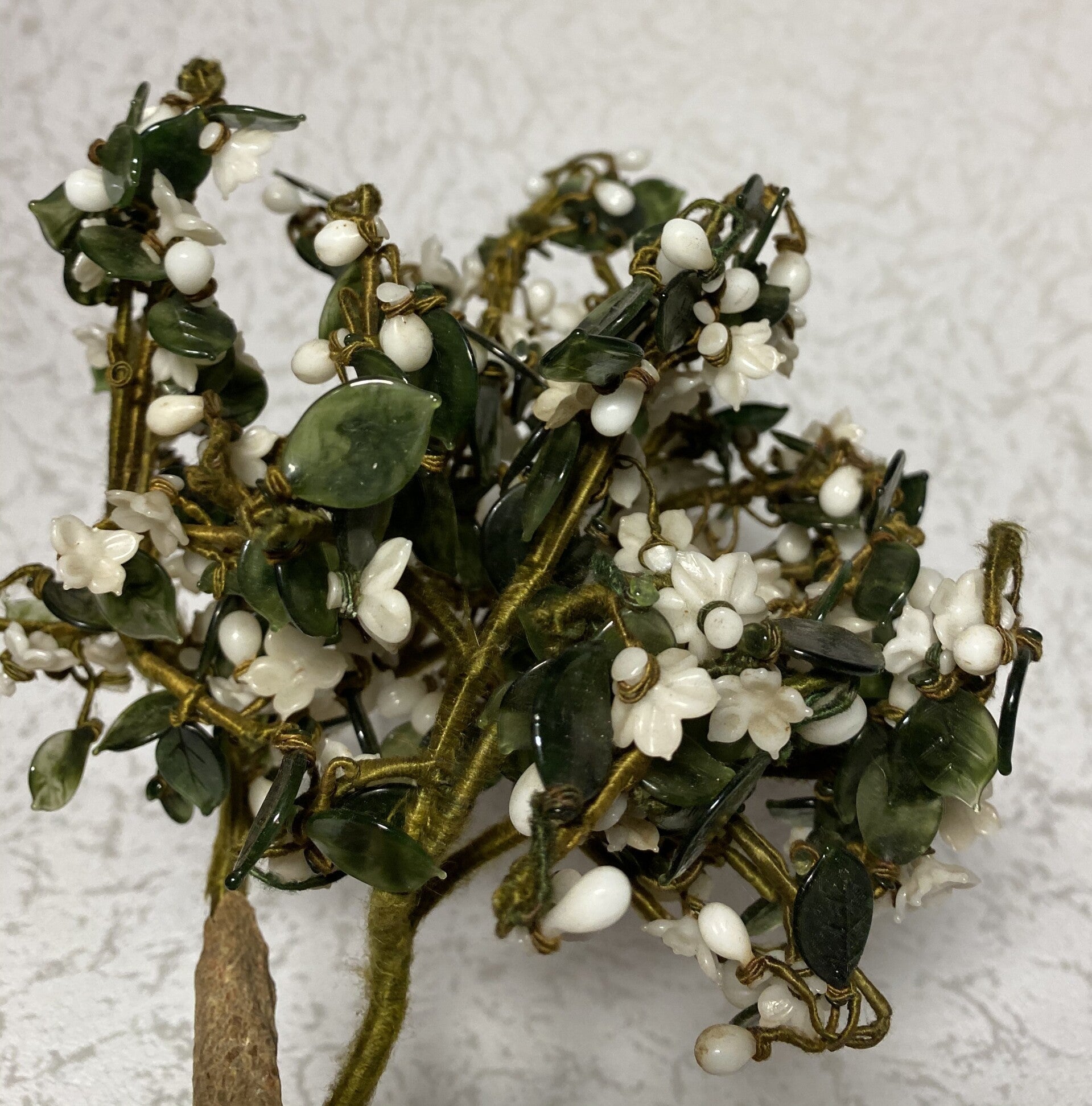 Takje met edelstenen als bladeren van nefriet en witte jade.