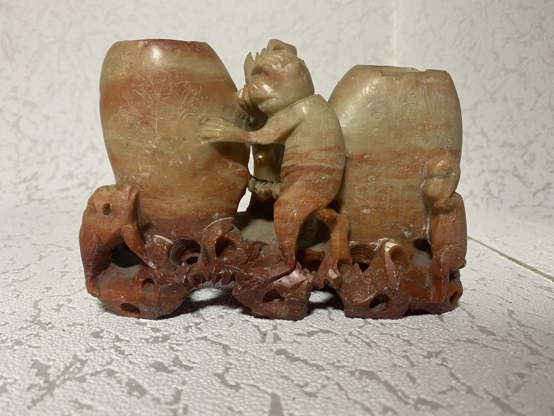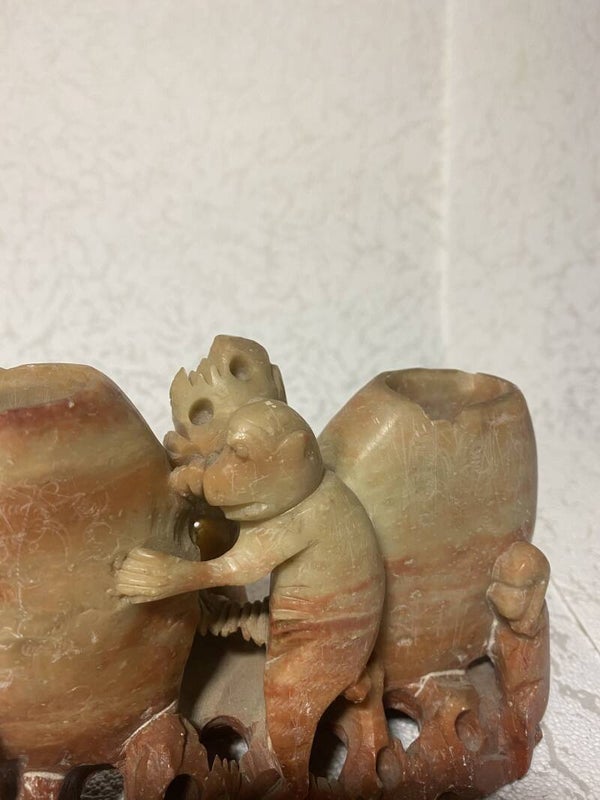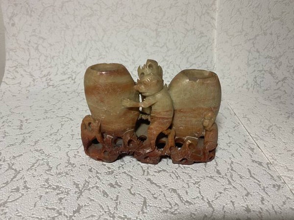Chinees penseelhouder van speksteen/ zeepsteen met inktpotten.