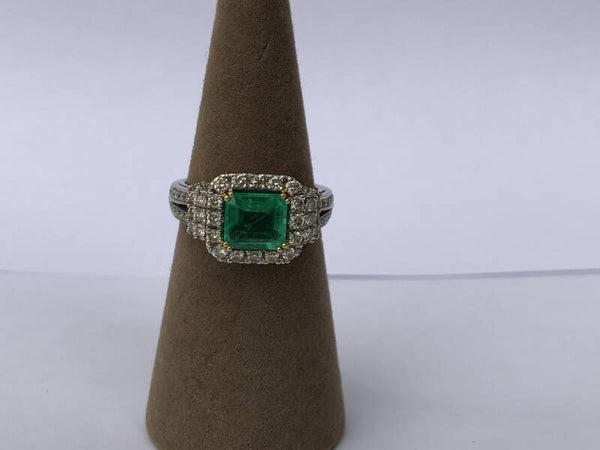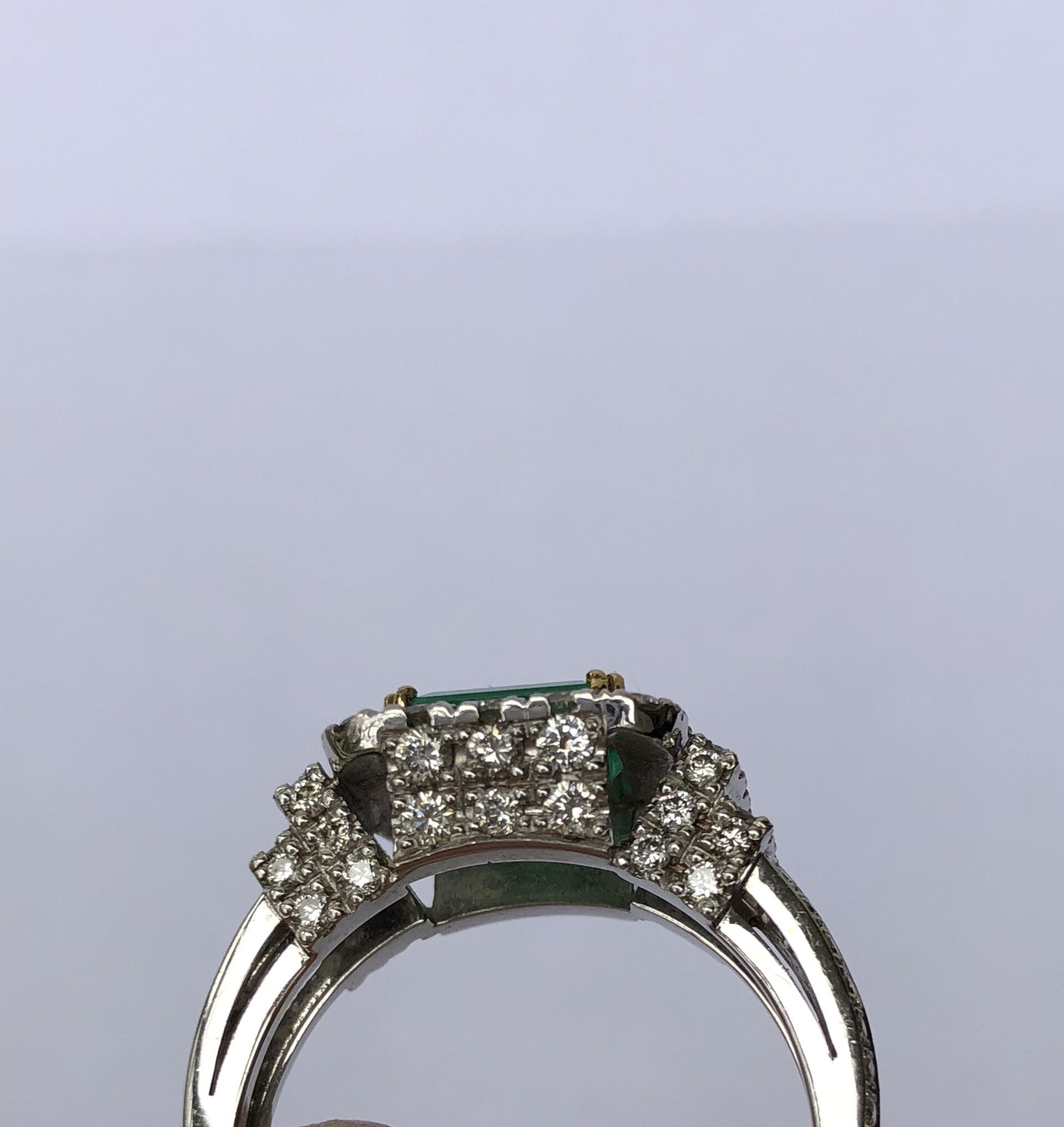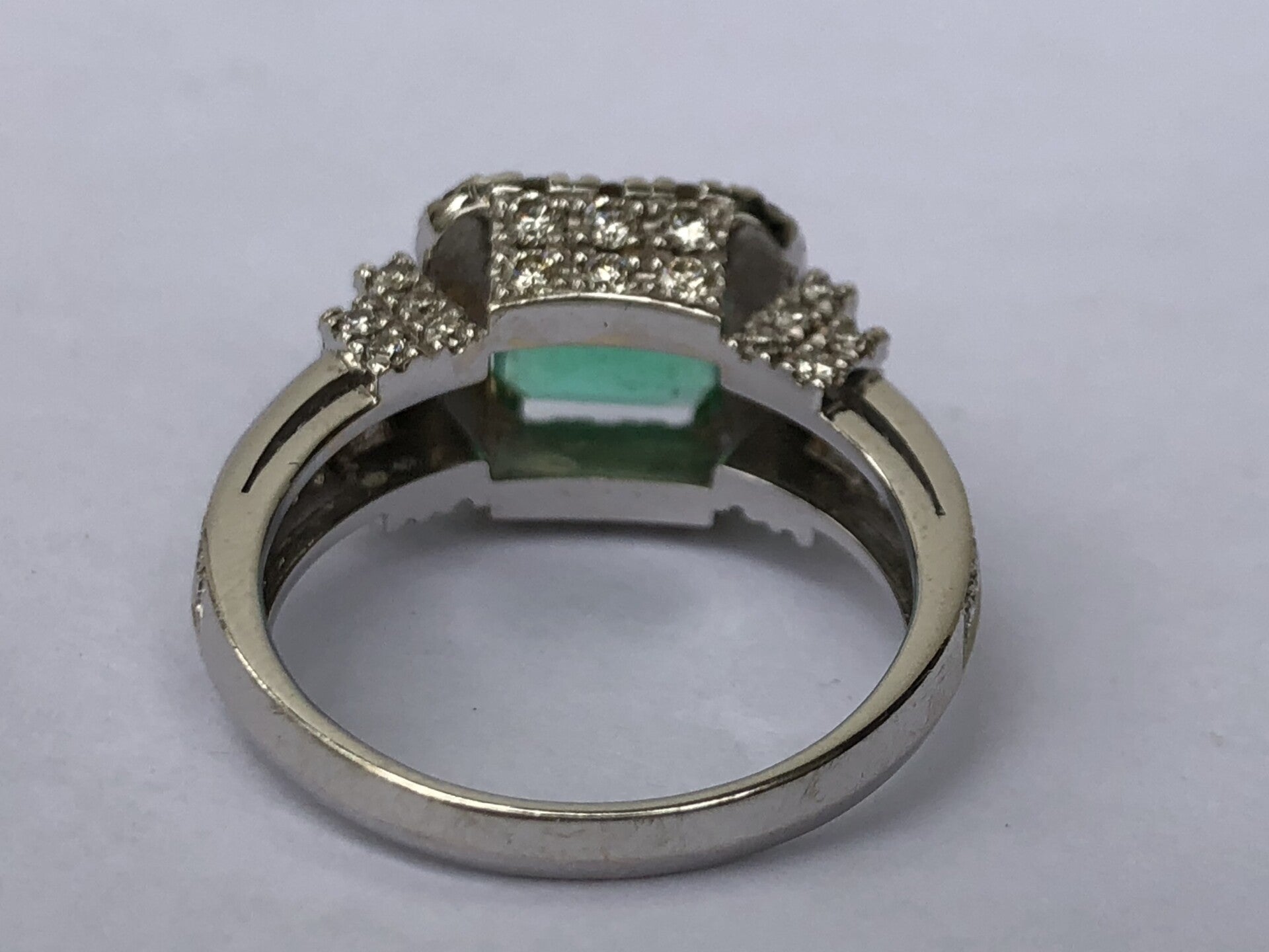 Transparante, licht blauwgroene, vierkante smaragdgeslepen steen