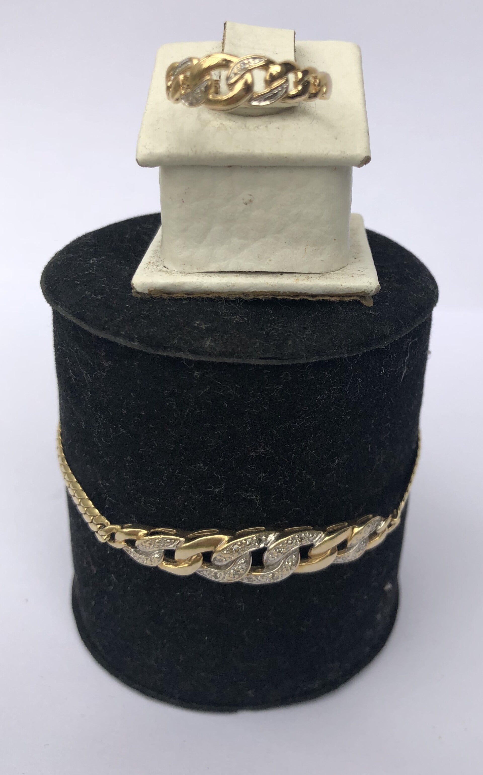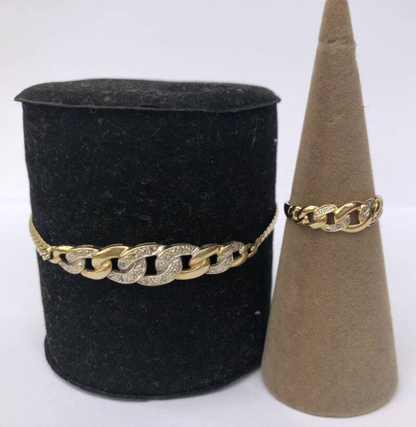 Armband lengte: 19cm, ring: maat 17. Totale gewicht: 9,26.