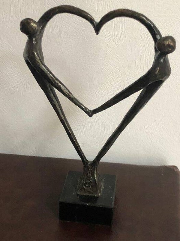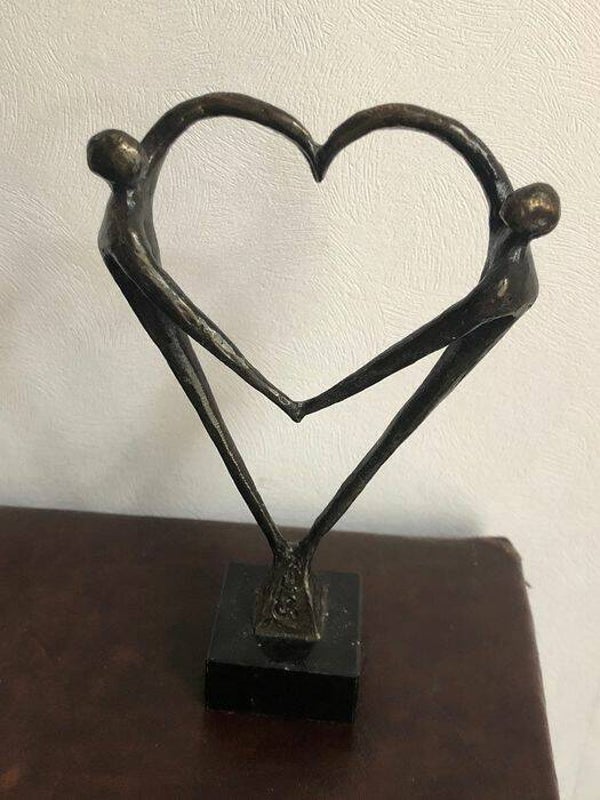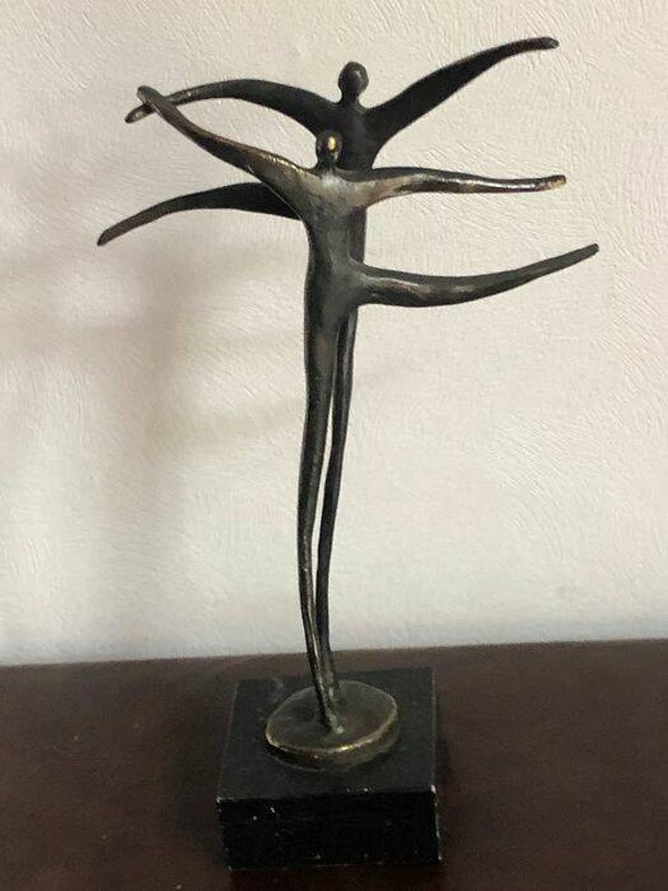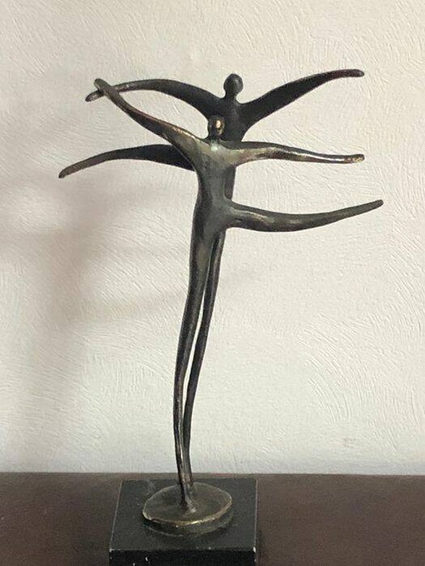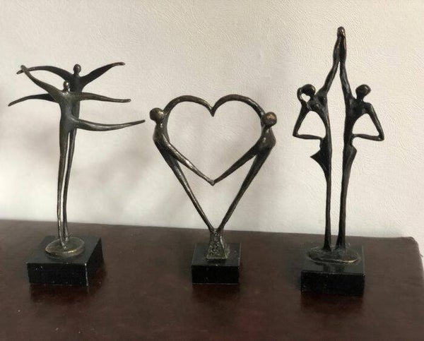 Afmetingen: 1. twee dansende mensen bronzen basis van graniet: 20 x12 cm 2. twee dansende mensen21 x 8 cm 3. twee dansende mensen met een hart van 12 x 6 cm