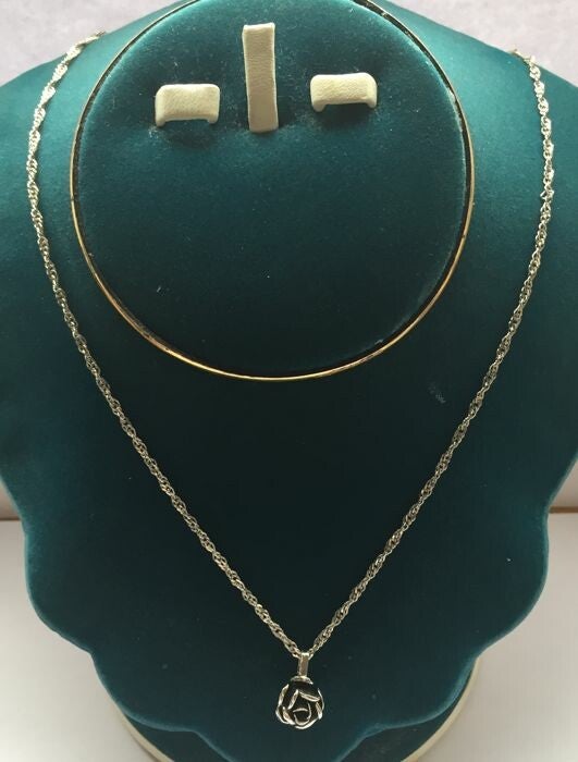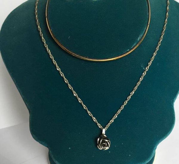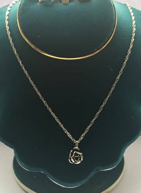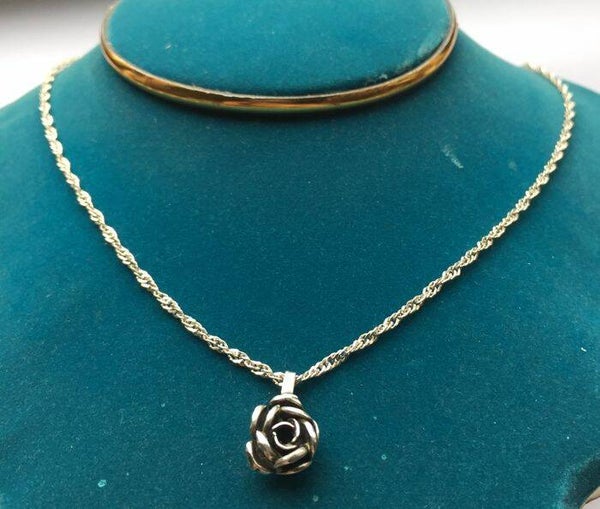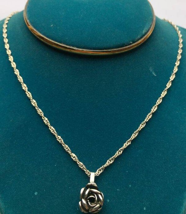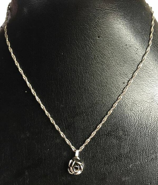 Zilveren Italiaanse ketting met roos als hanger in stijl van Theodor Klotz.