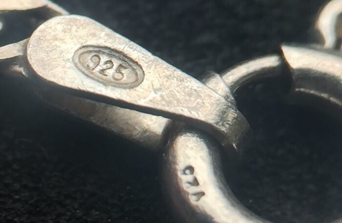 Gemarkeerd op hanger: 925. Gemarkeerd op ketting: 925 and made in Italy.Ketting lengte: 45.5 cm.Afmetingen van pendant: 11 mm x 17 mm totaal gewicht: 5,45 grams.