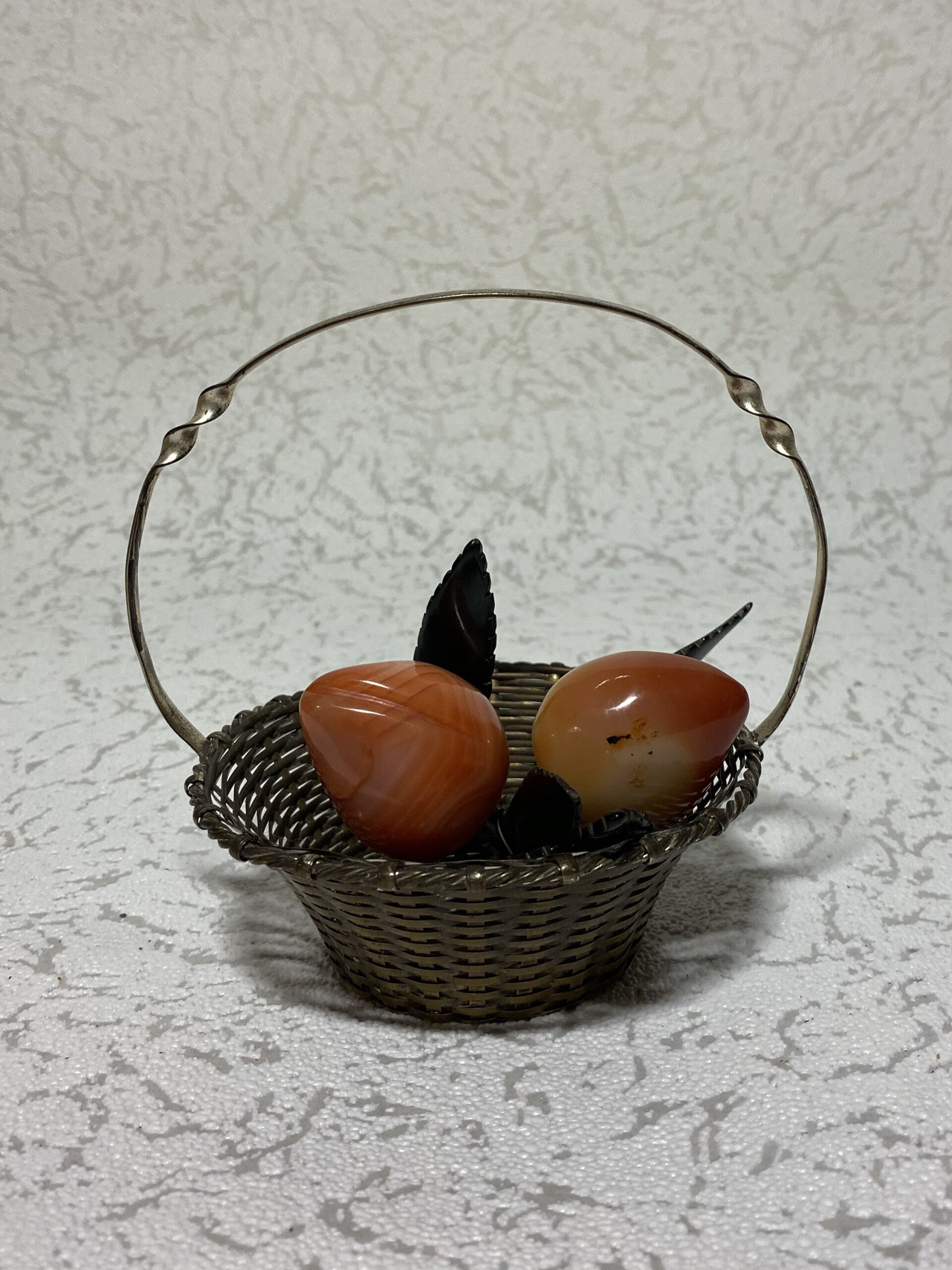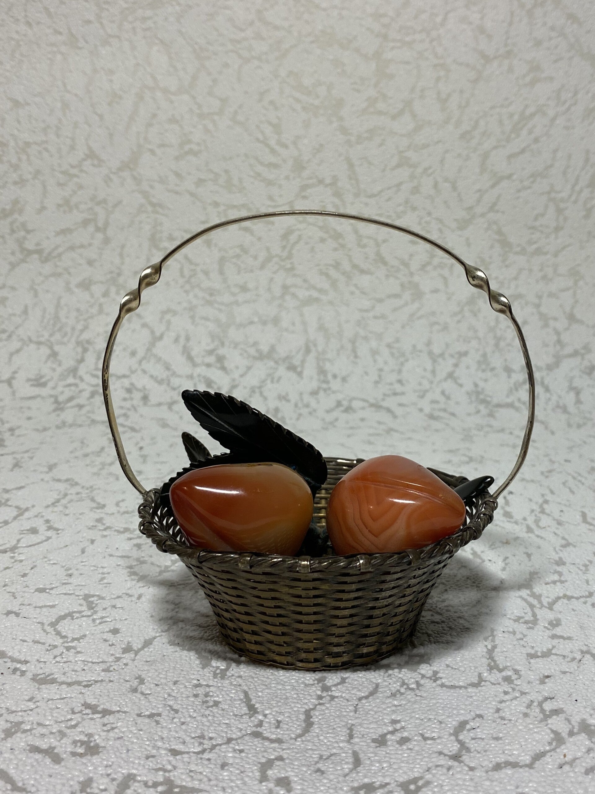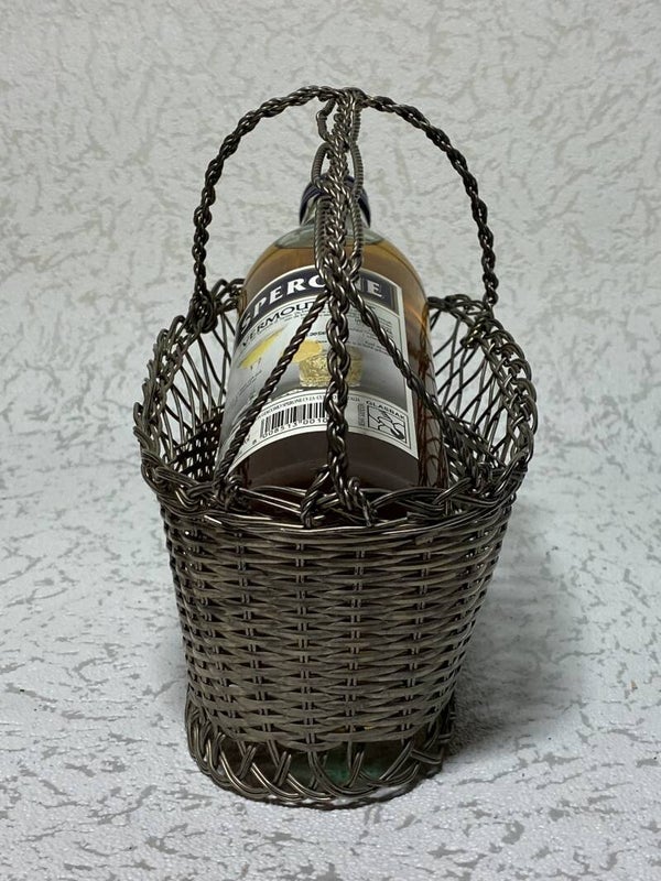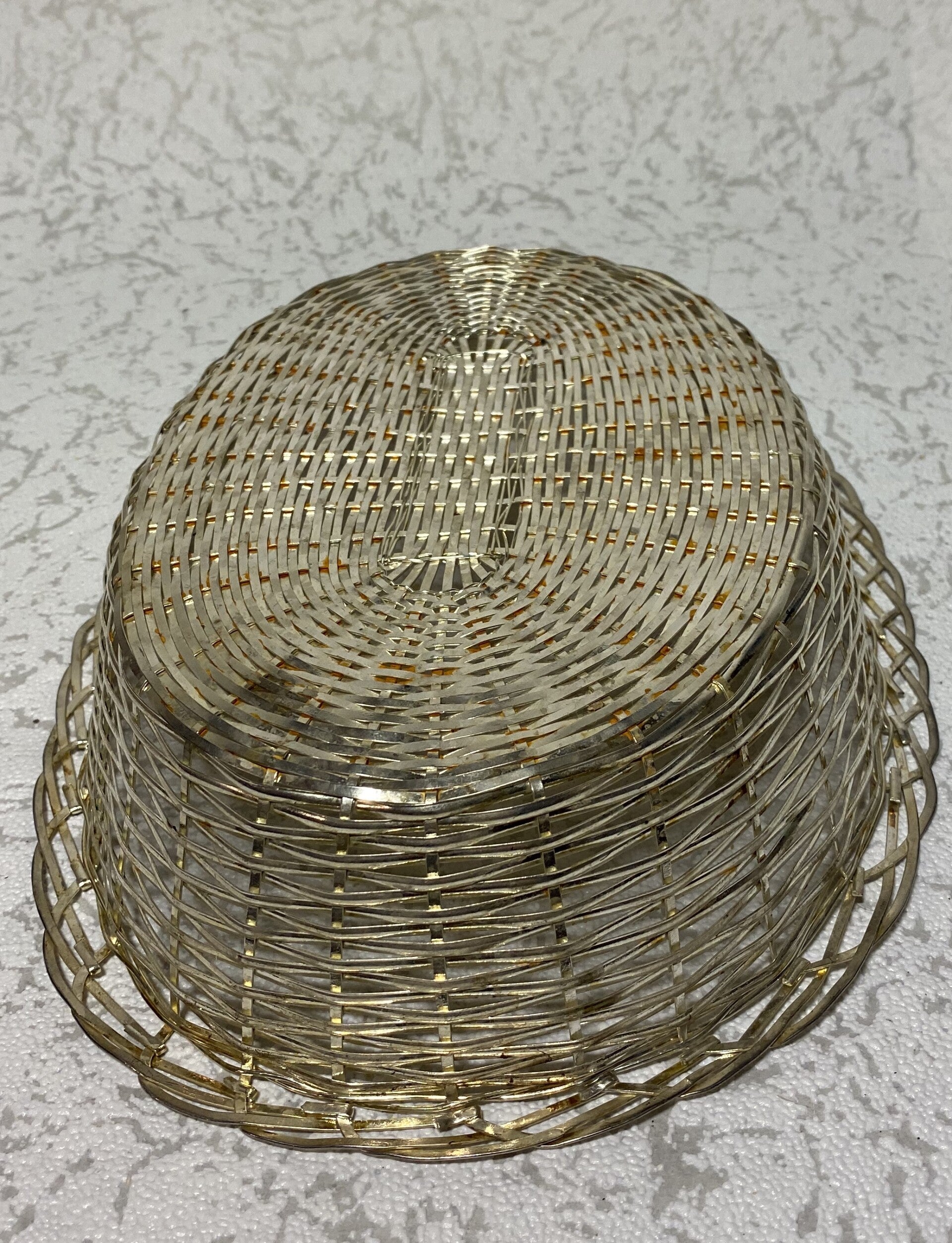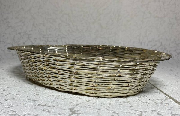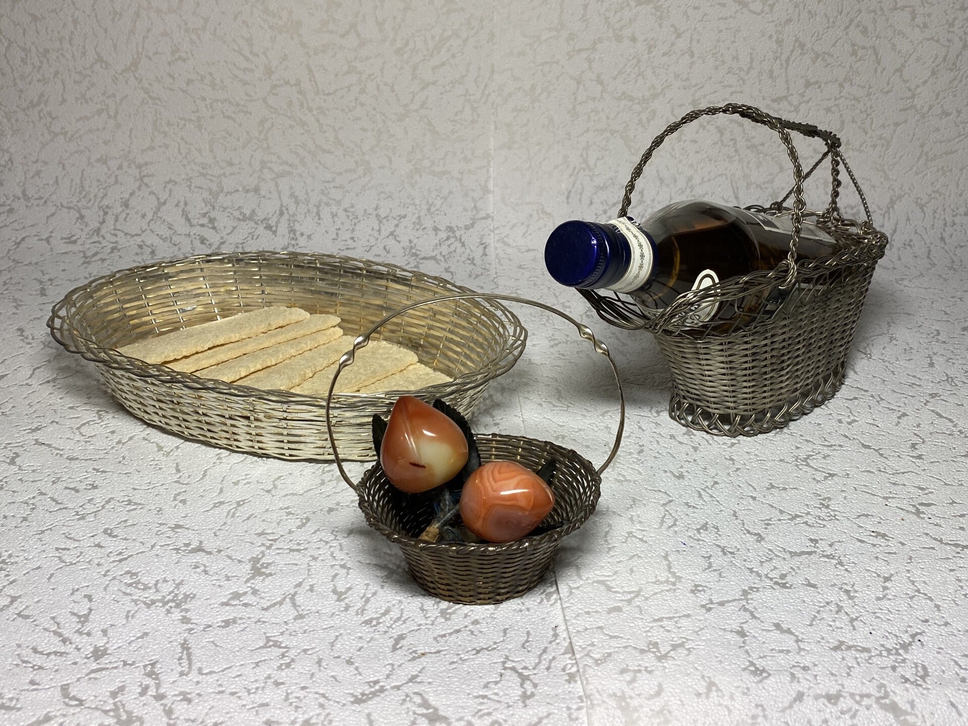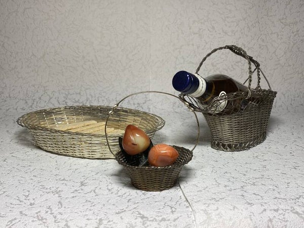 Geweven verzilverde wijn- , brood- en zoetjesmanden.