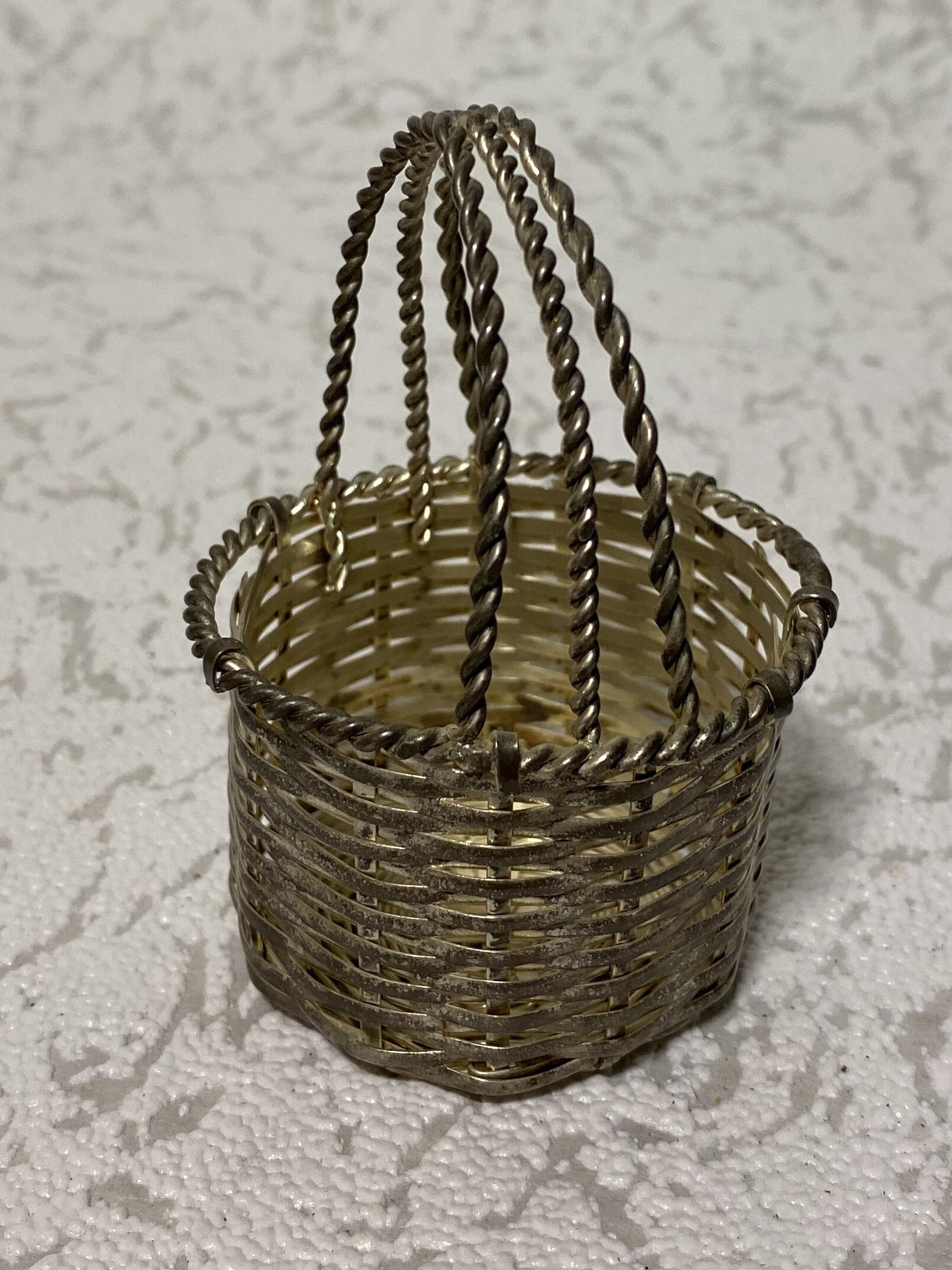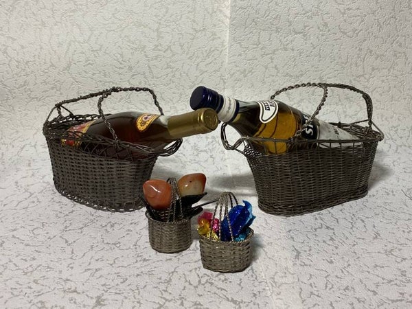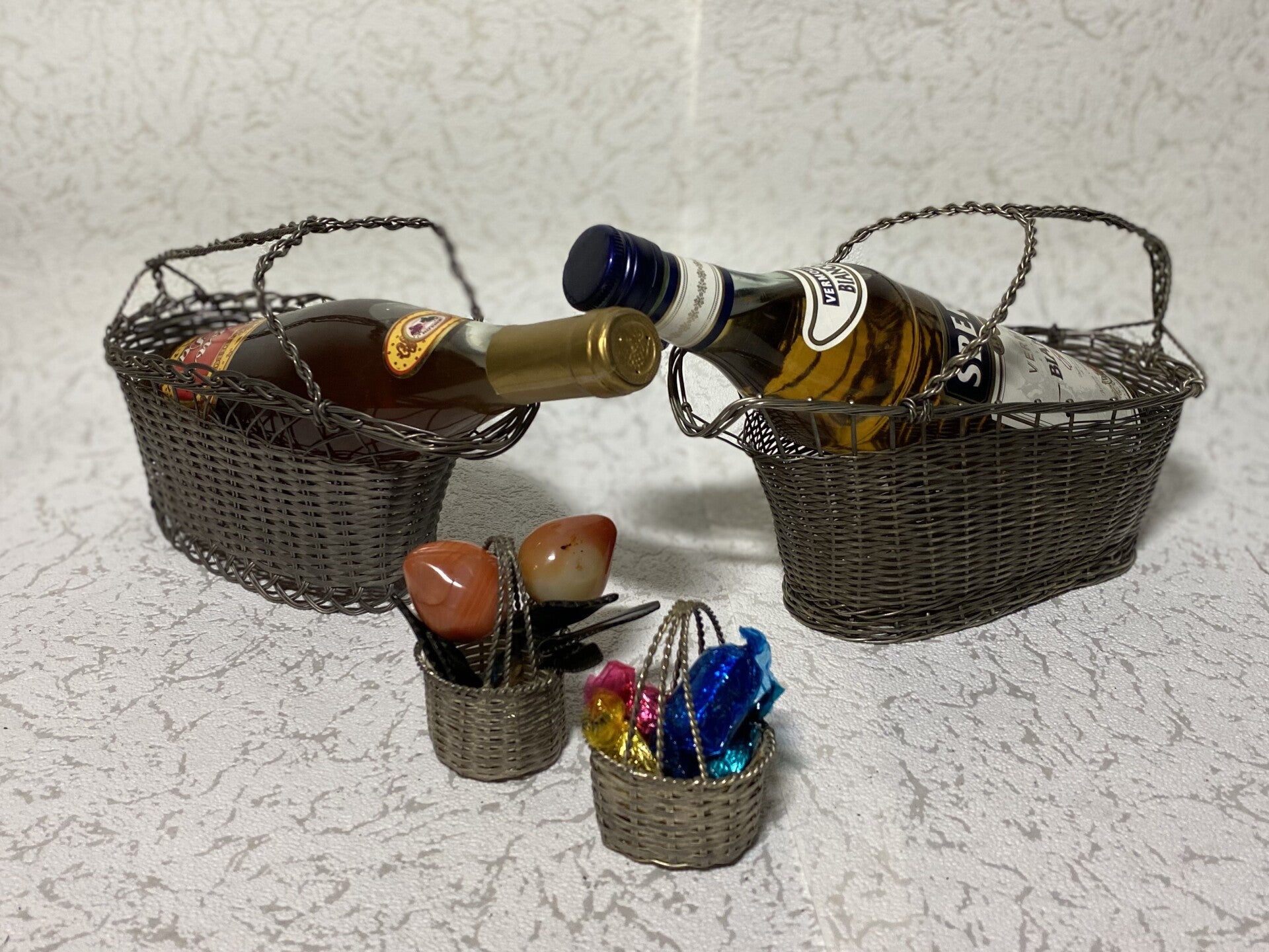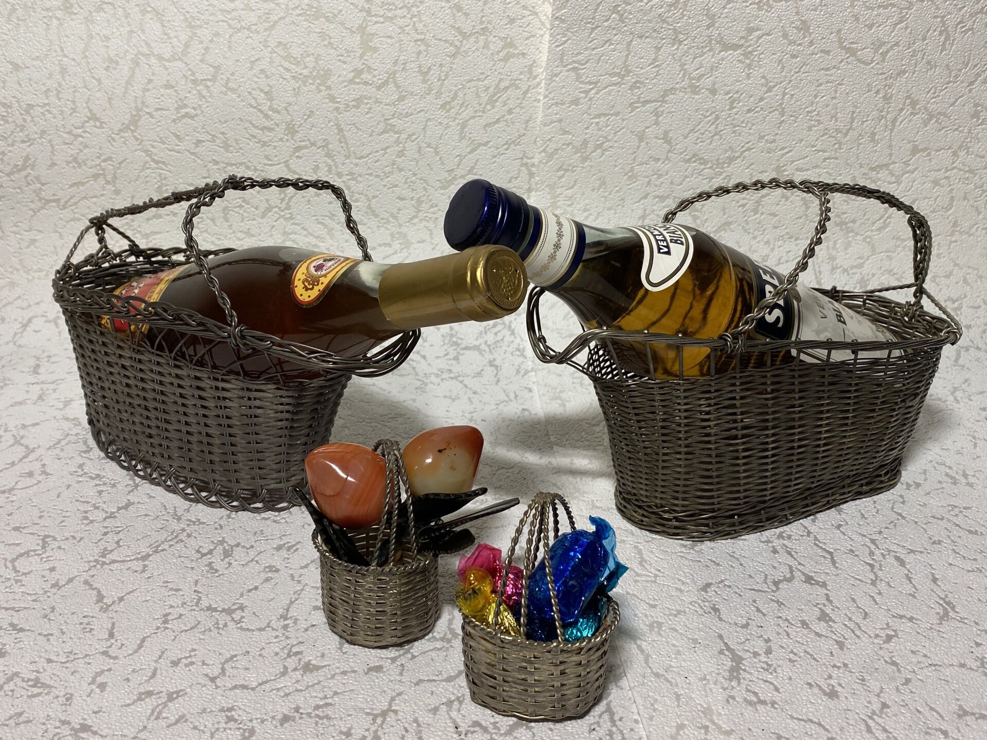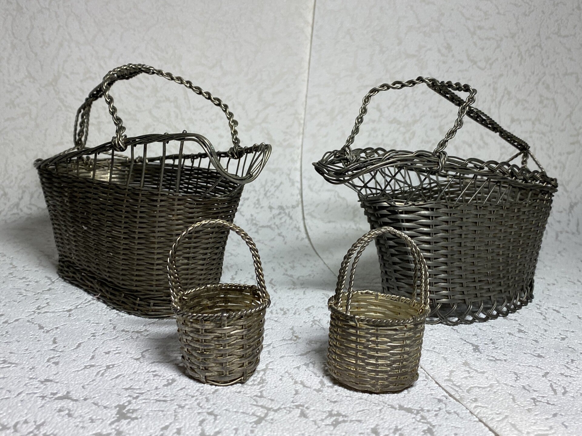 2 verzilverde geweven wijnmanden & 2 verzilverde geweven snoepmanden.