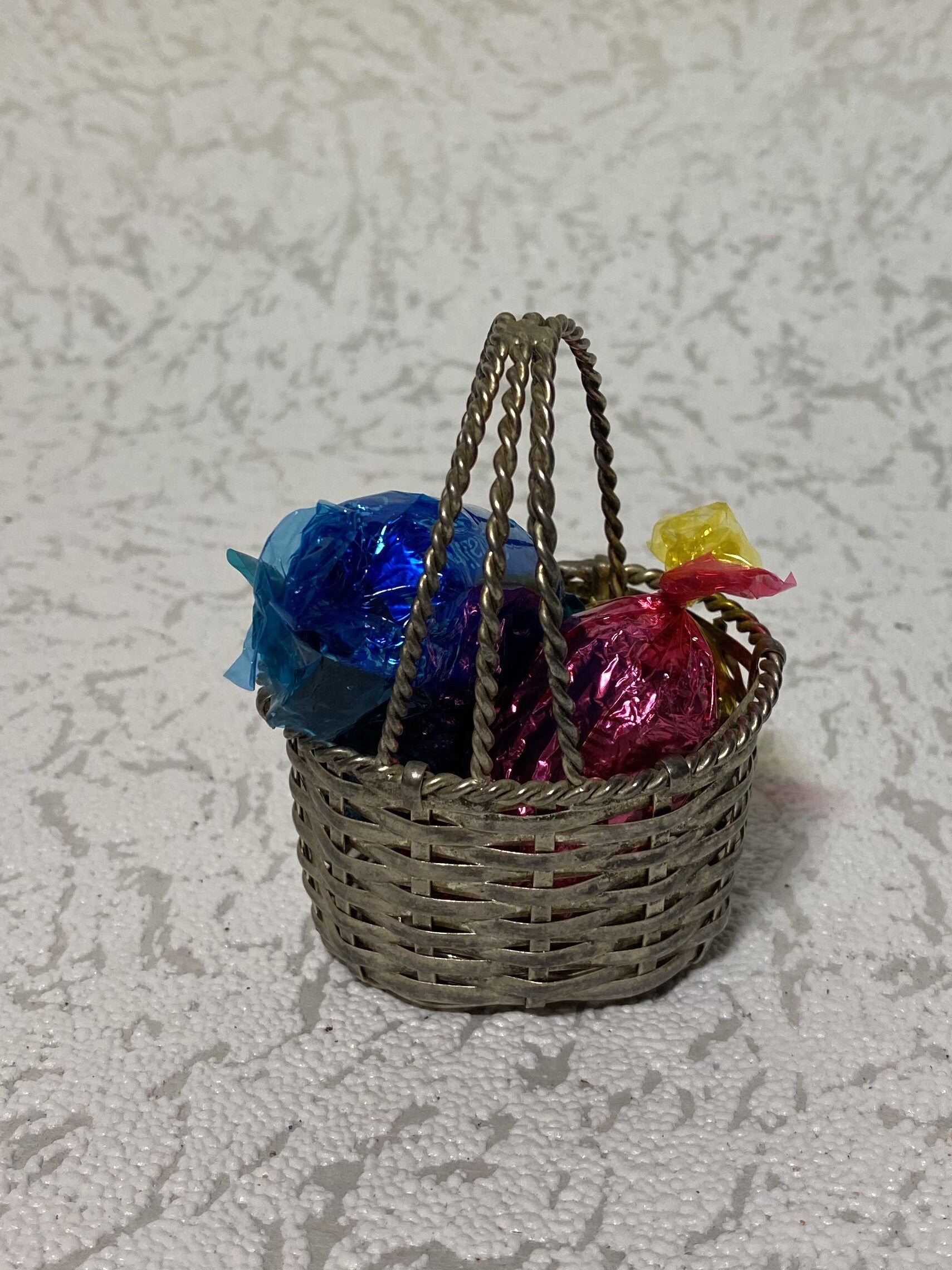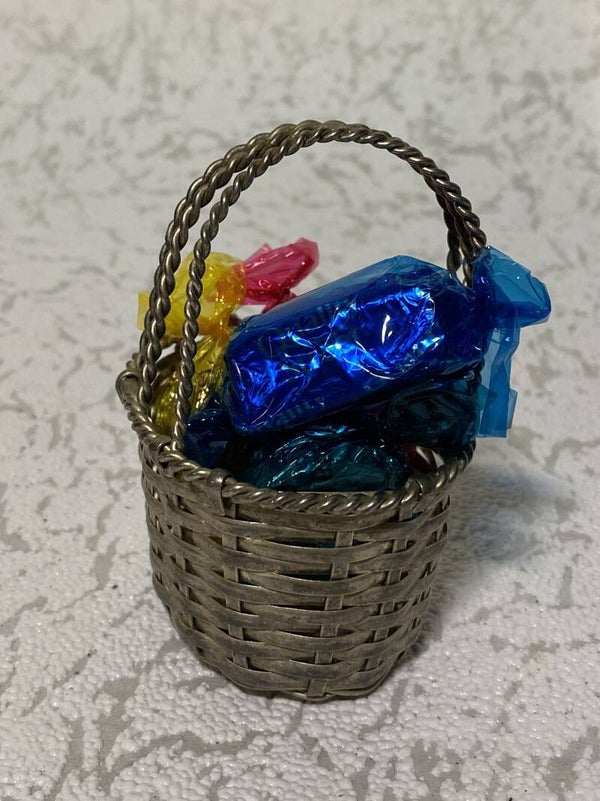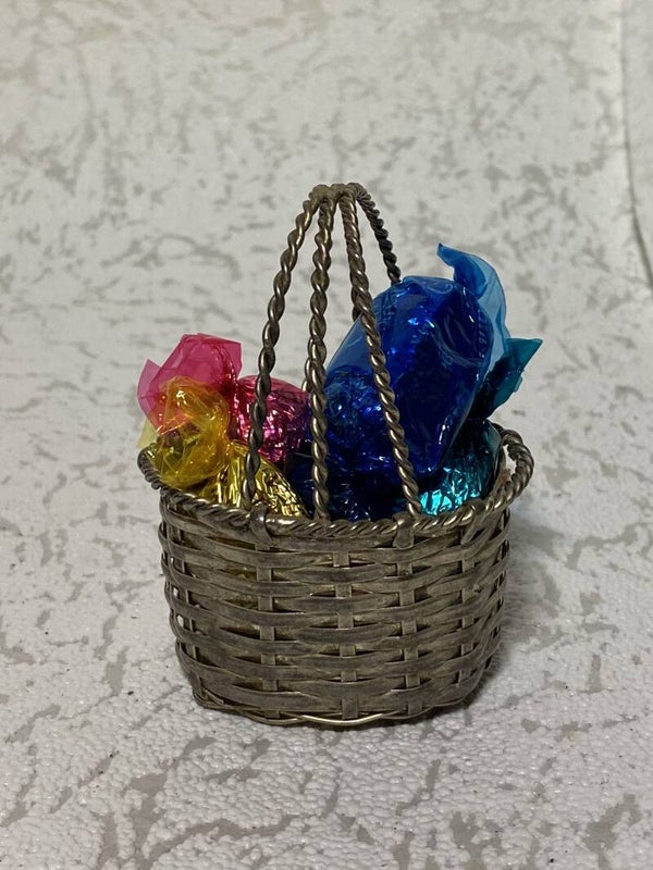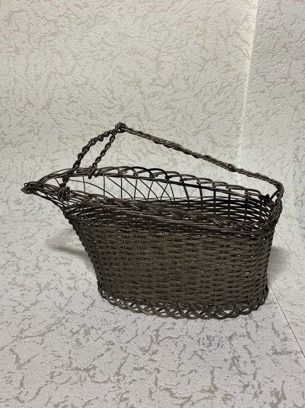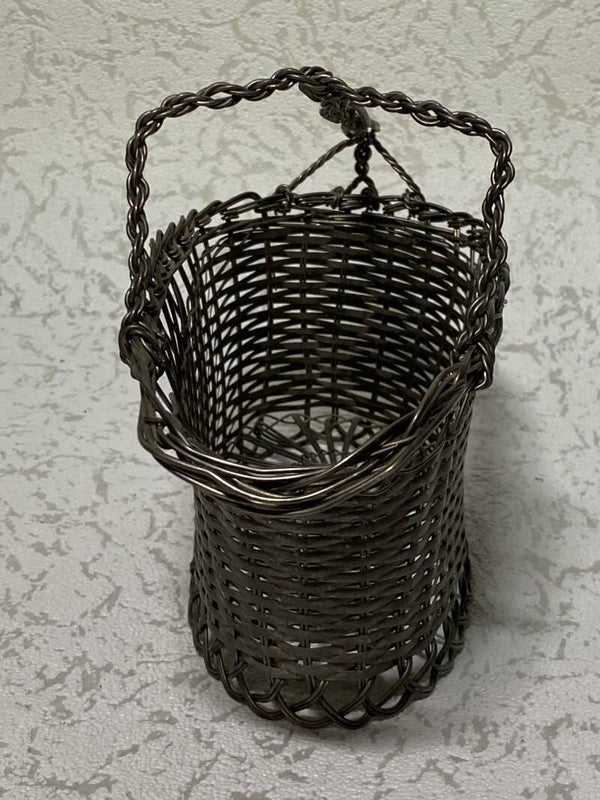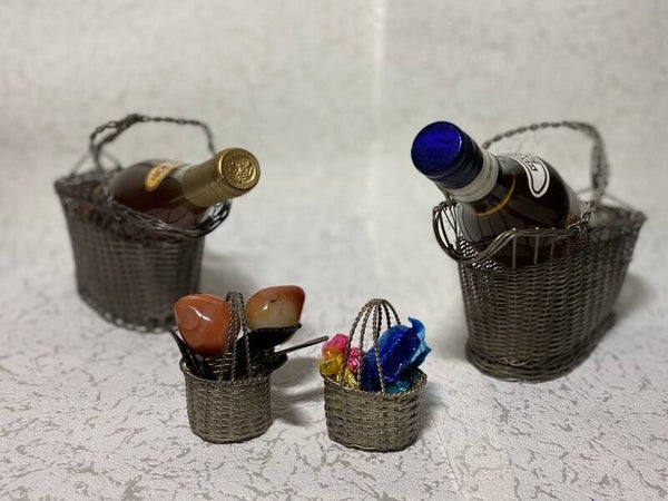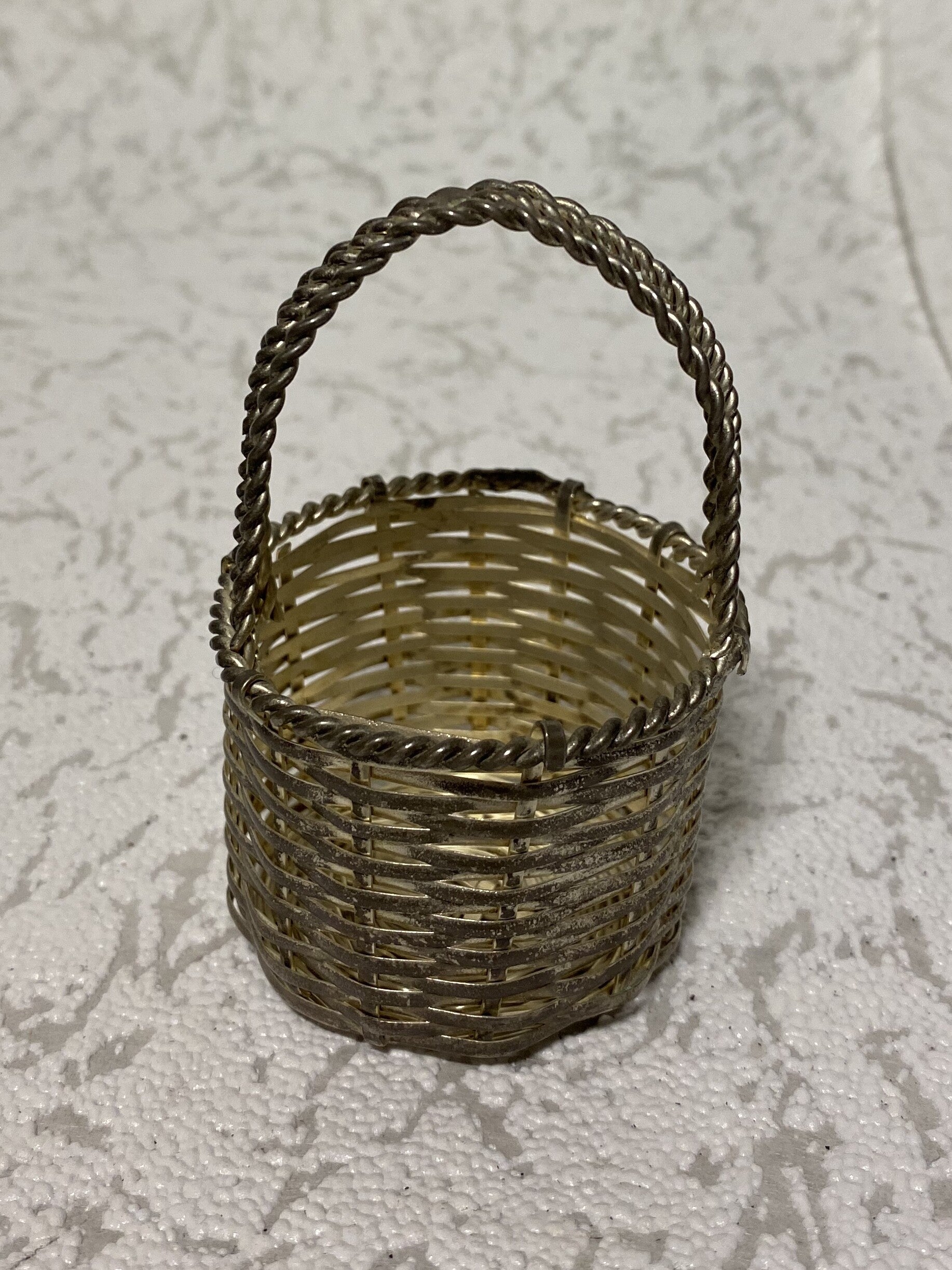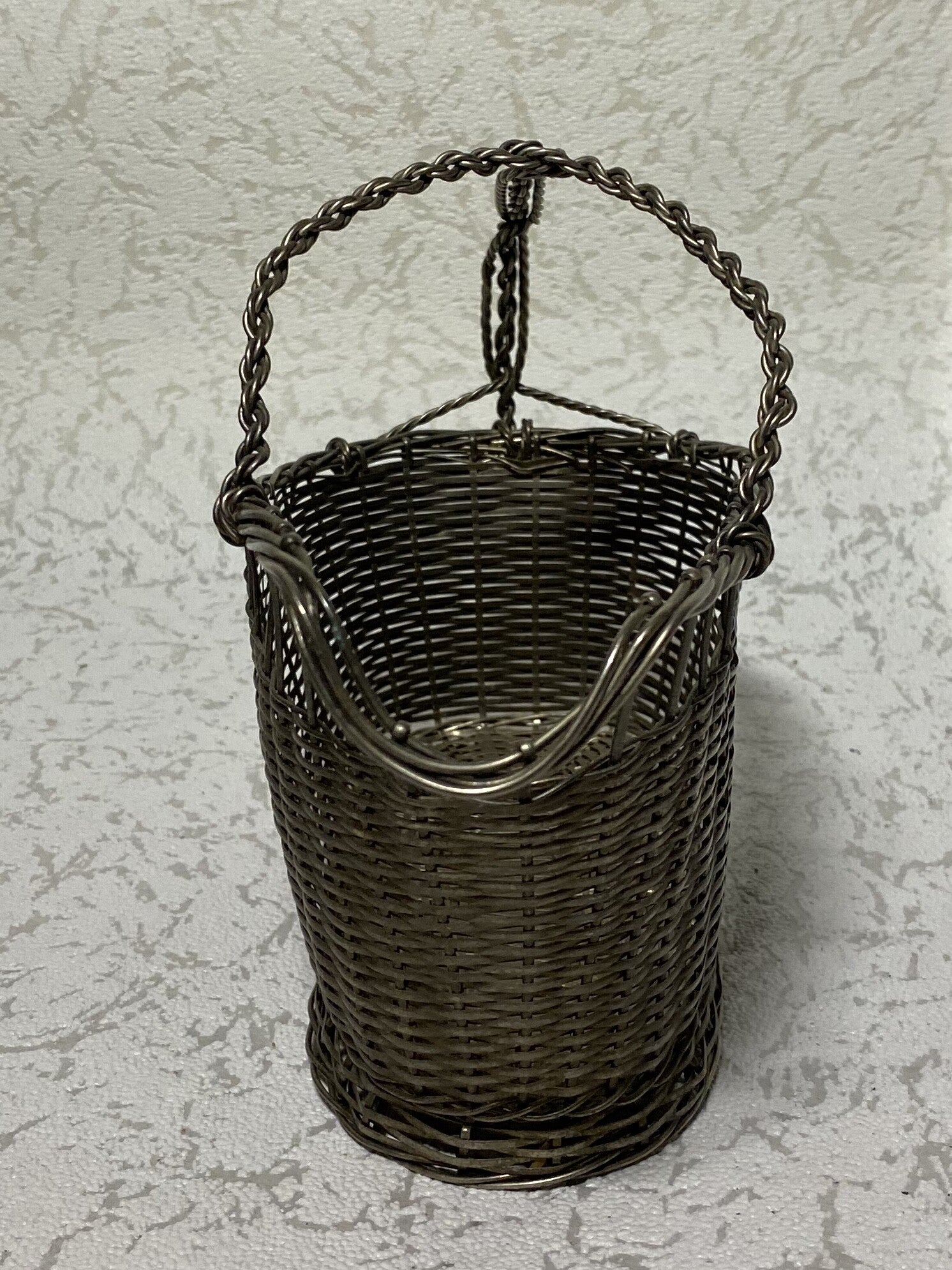 2 verzilverde geweven wijnmanden & 2 verzilverde geweven snoepmanden.