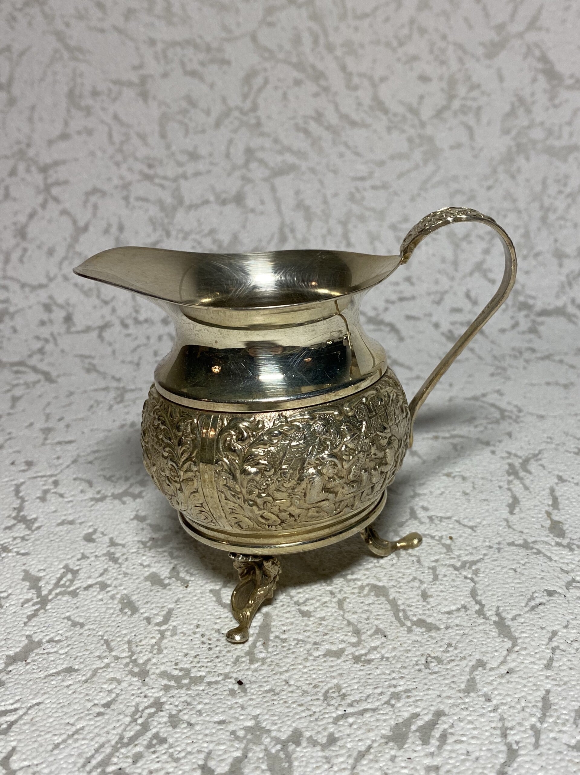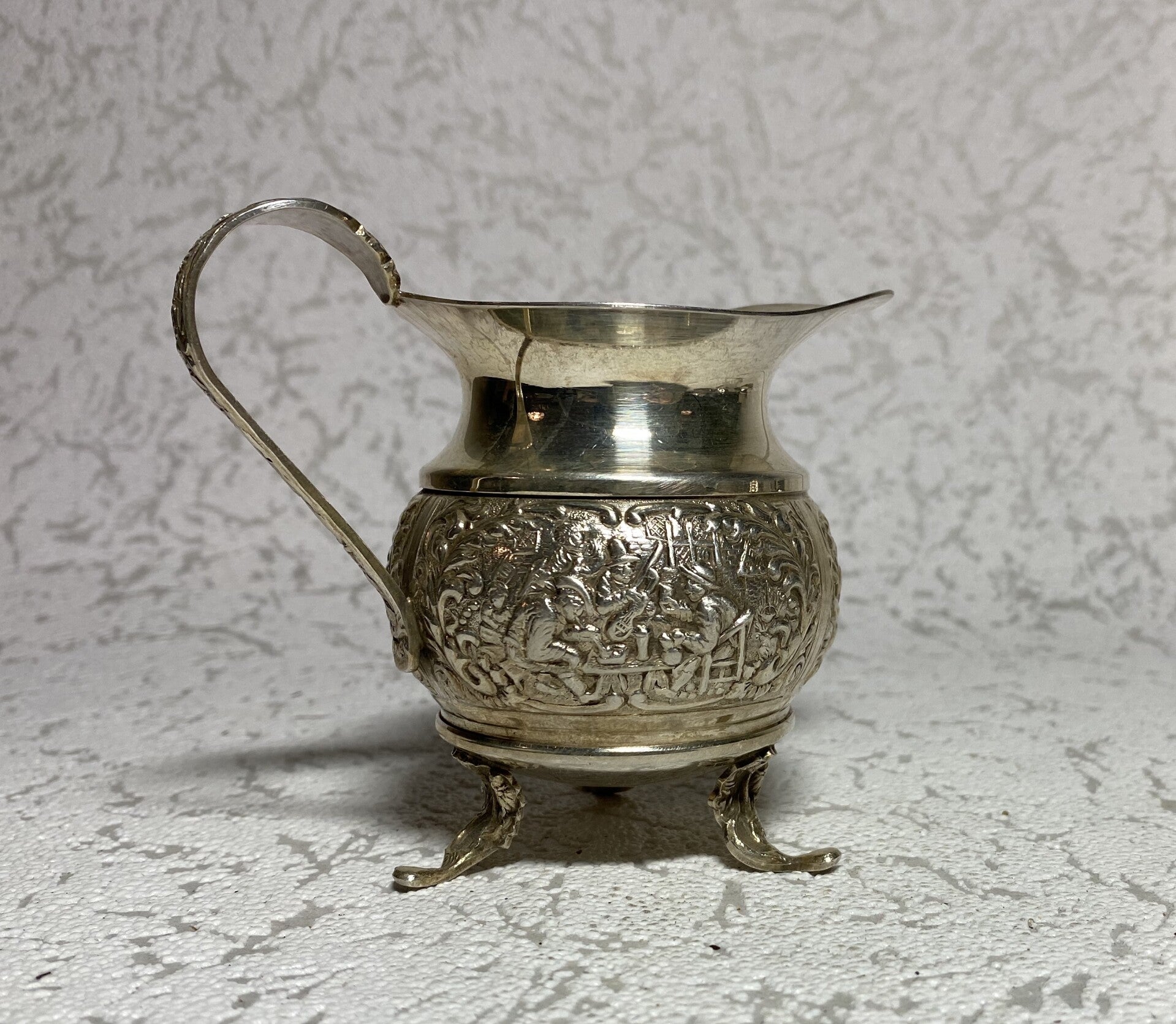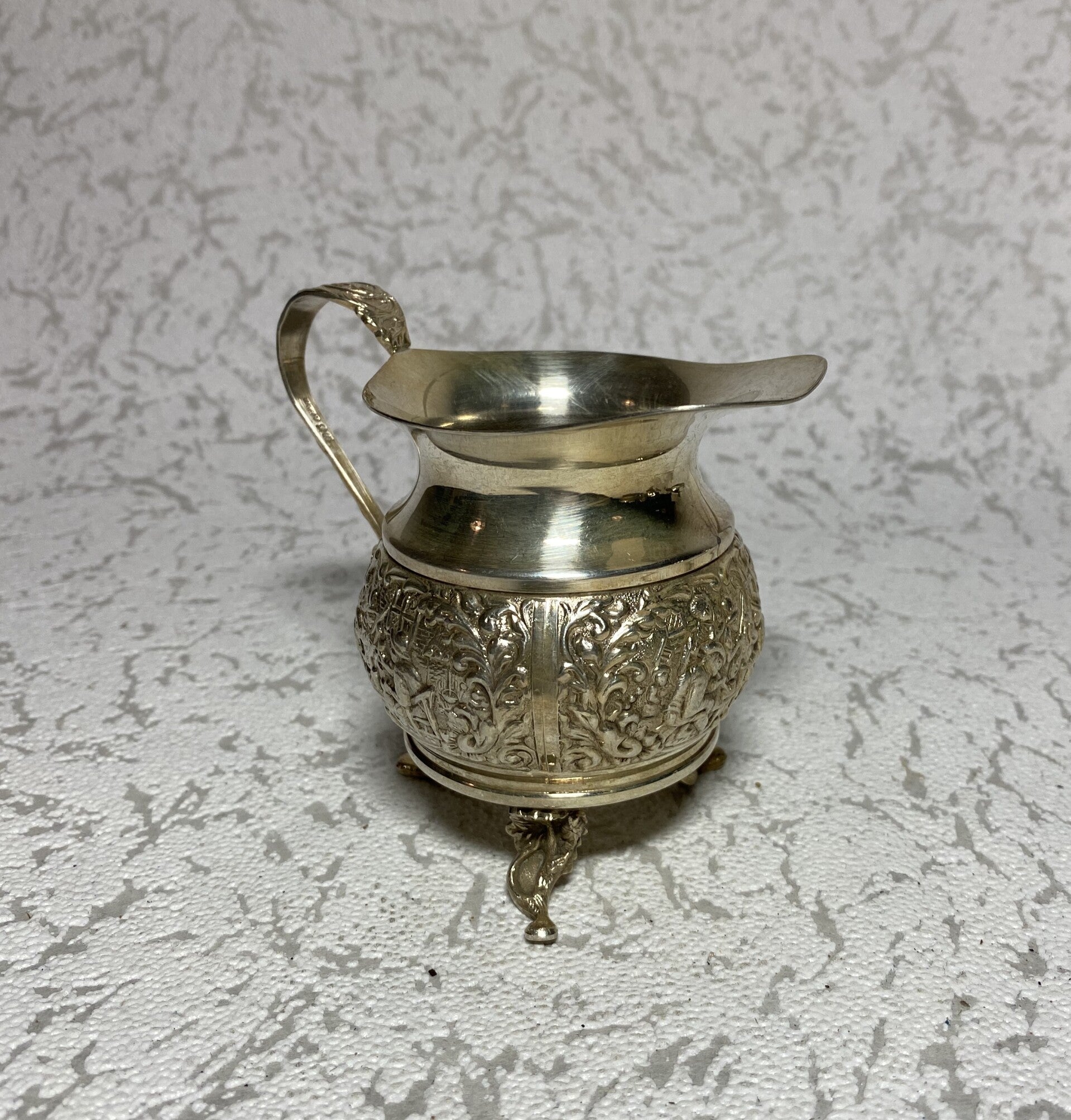 Verzilverde 'Douwe Egberts' melk-/ roomkannetje. 'DE, HH'