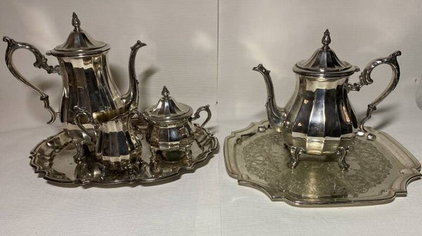 WM. A. Rogers verzilverde koffie en thee set en een verzilverde WMF dienblad.