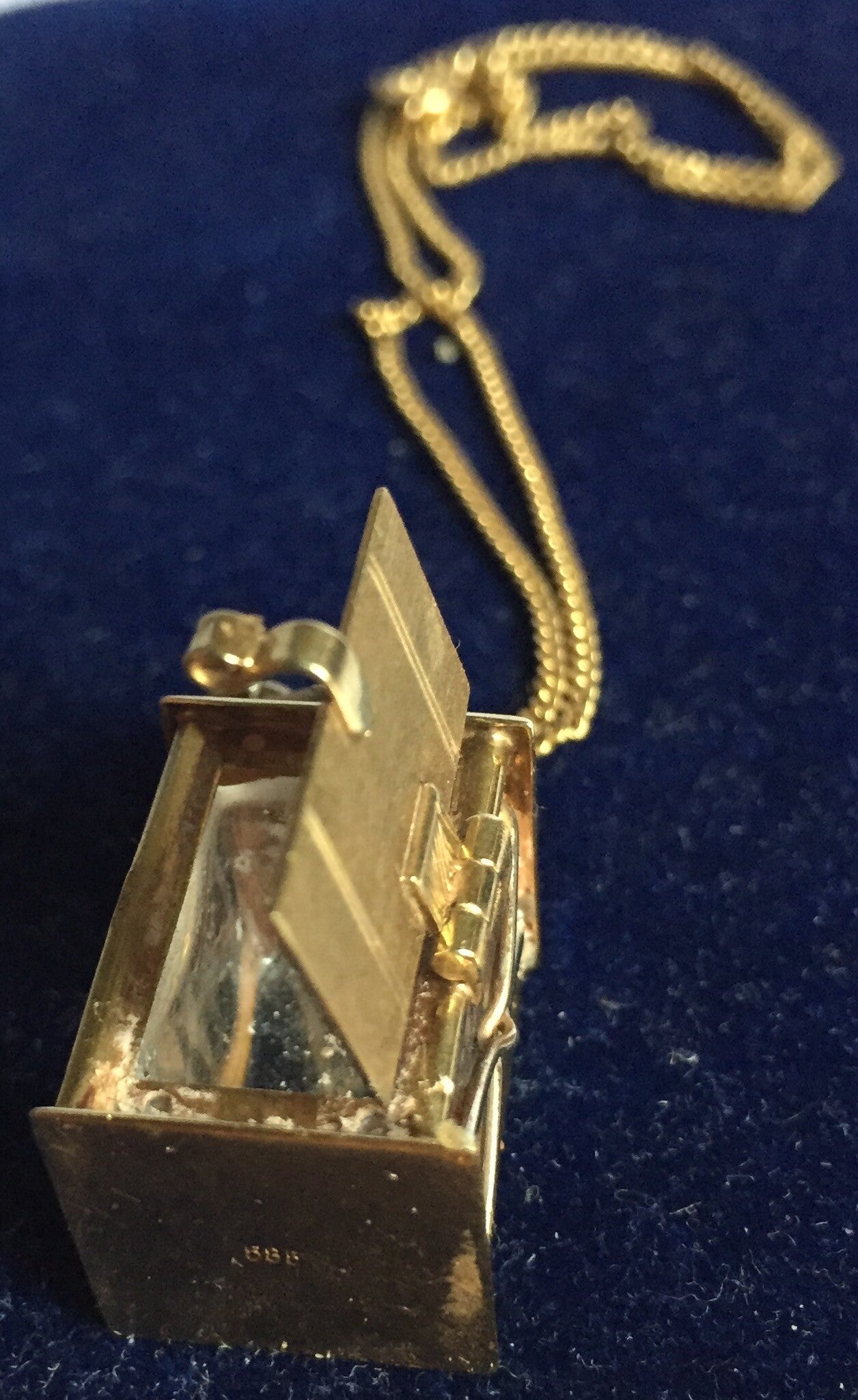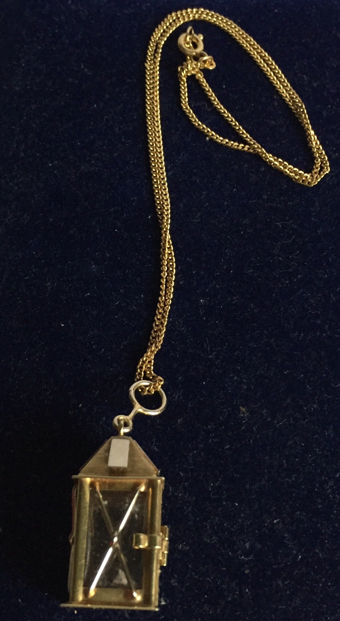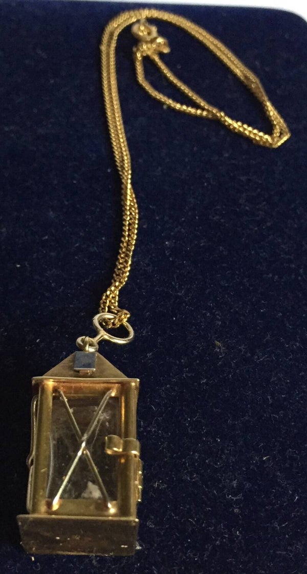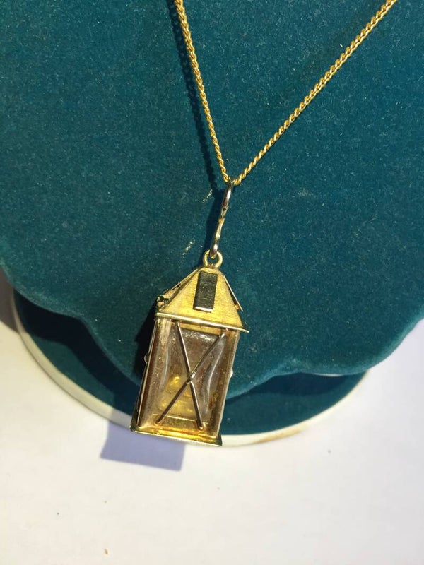 14k gouden ketting met 14k gouden lantaarn als hanger.