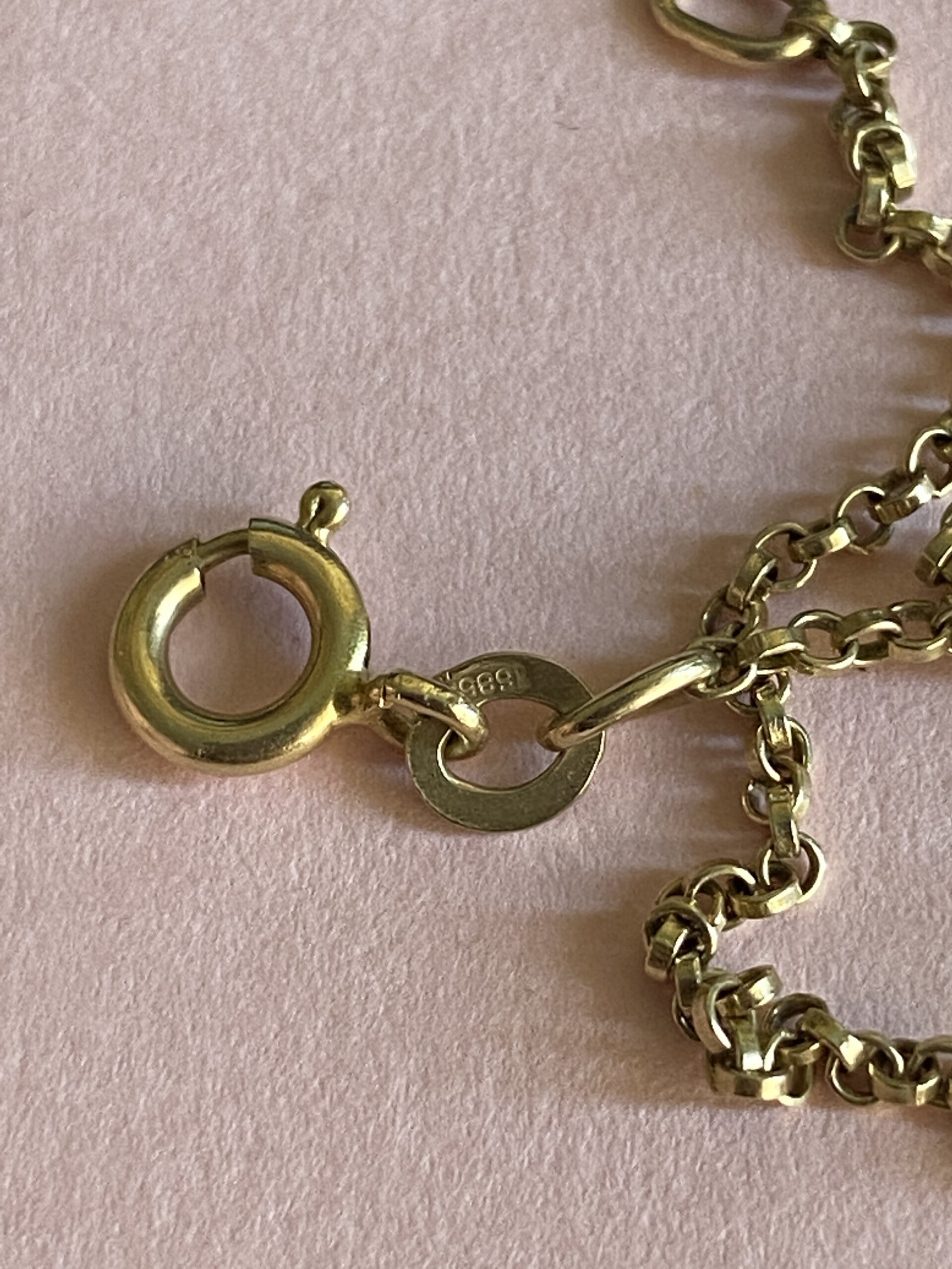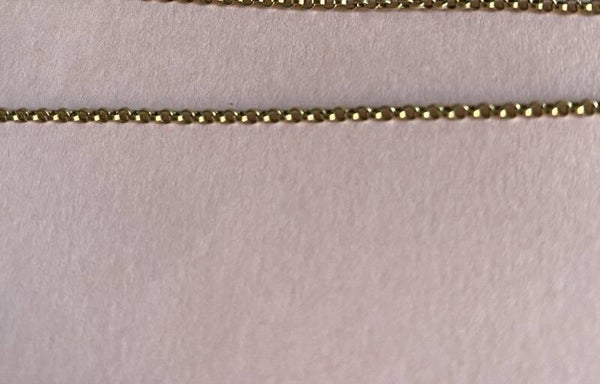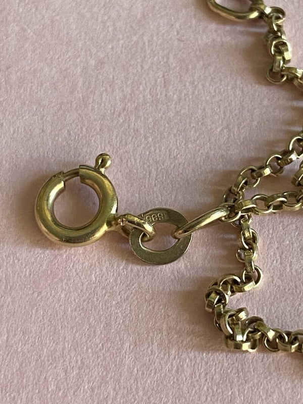 Afmetingen: ketting: 56,5cm, hanger: 1,5 x 1,5cm. Totaal gewicht: 6,29gram, gewicht hanger: 2,15gram.