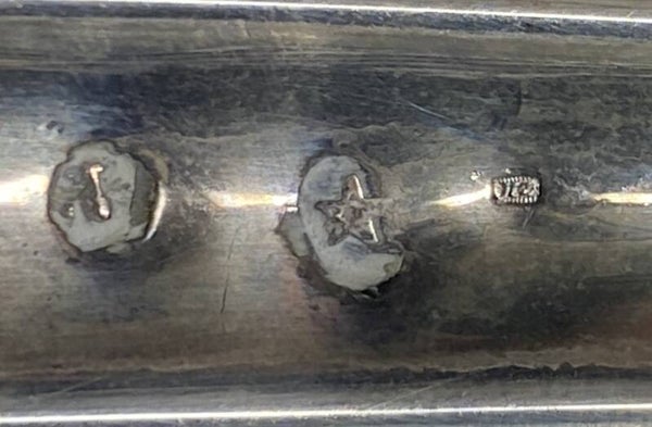 De schaal bezit verschillende zilverstempels, waaronder een ster en de letter A.