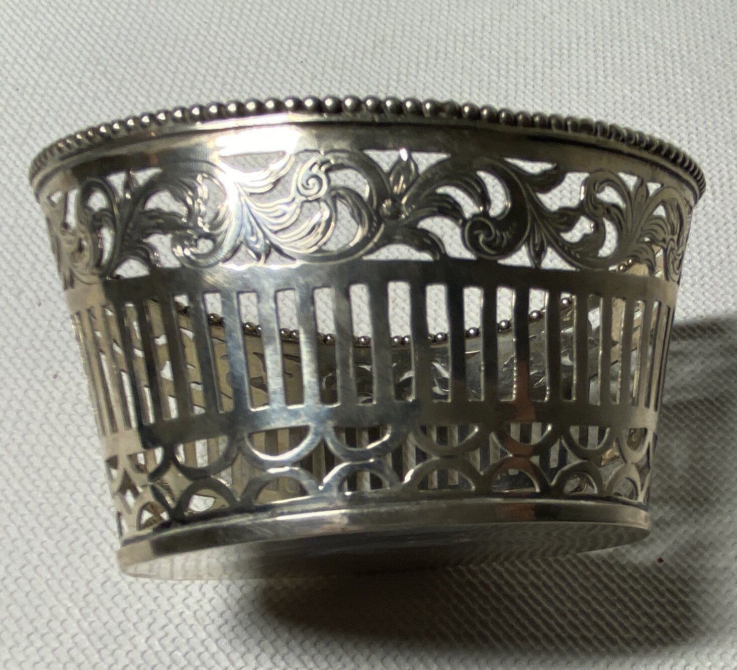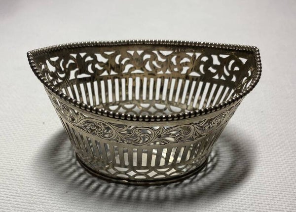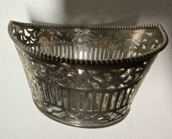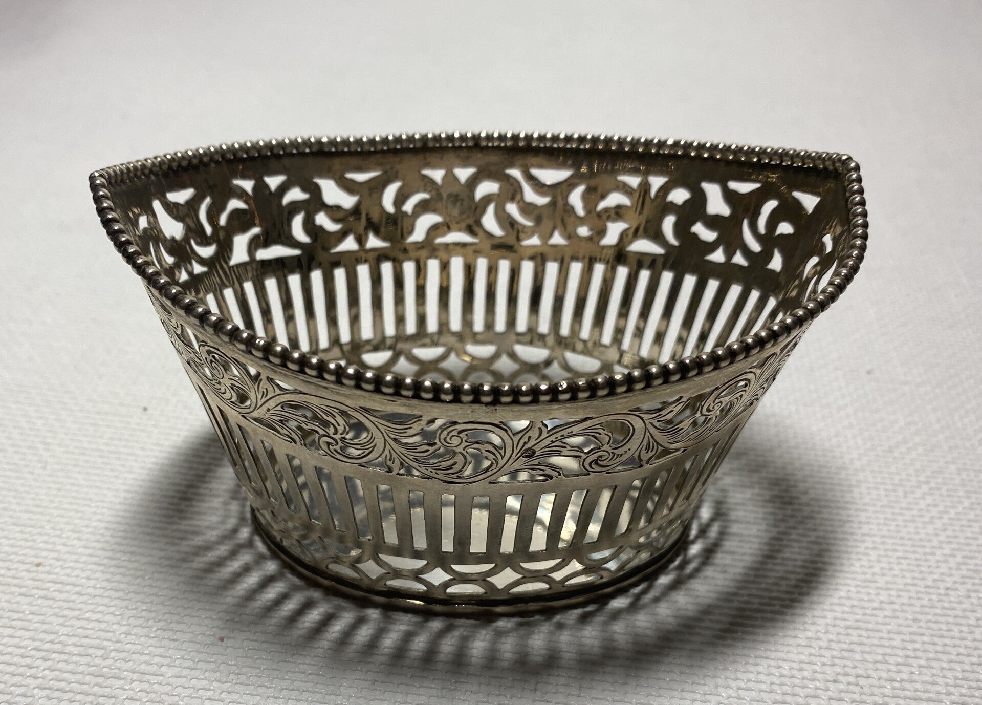Nederlandse zilveren schaal gedecoreerd met parelrand en meer.