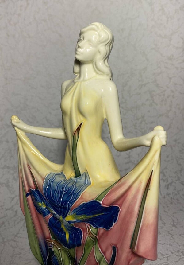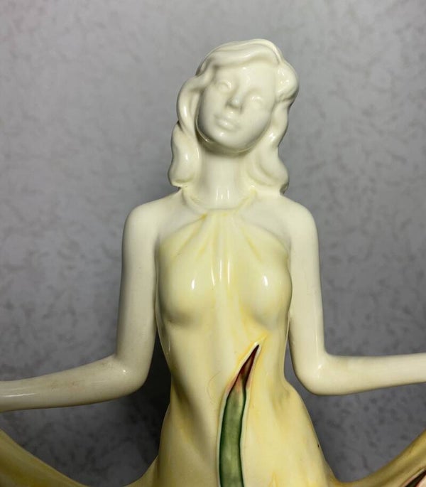 Franse Art Deco porseleinen handgeschilderde beeld van een dame. Décors du Galion.