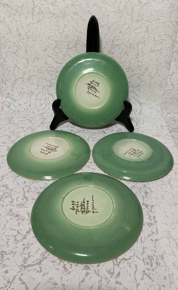 Borden van meerkleurig Gouds plateel met glanzend glazuur.