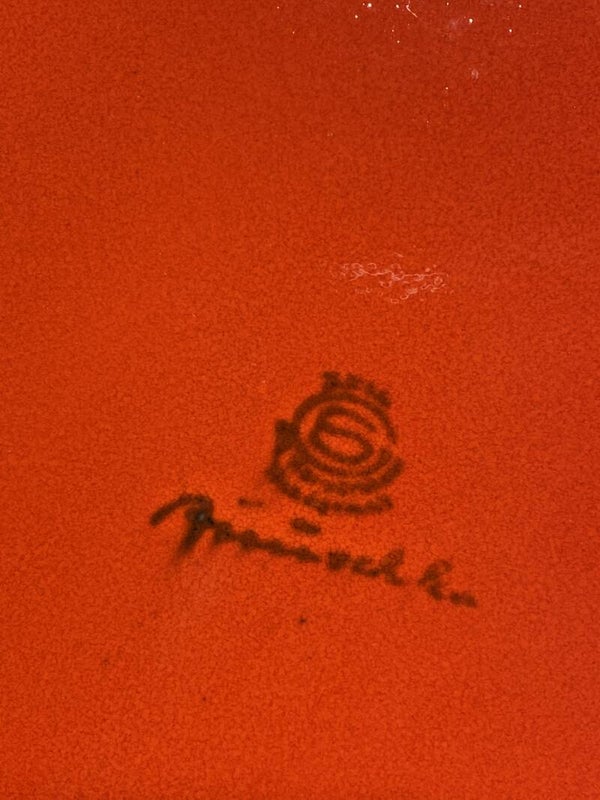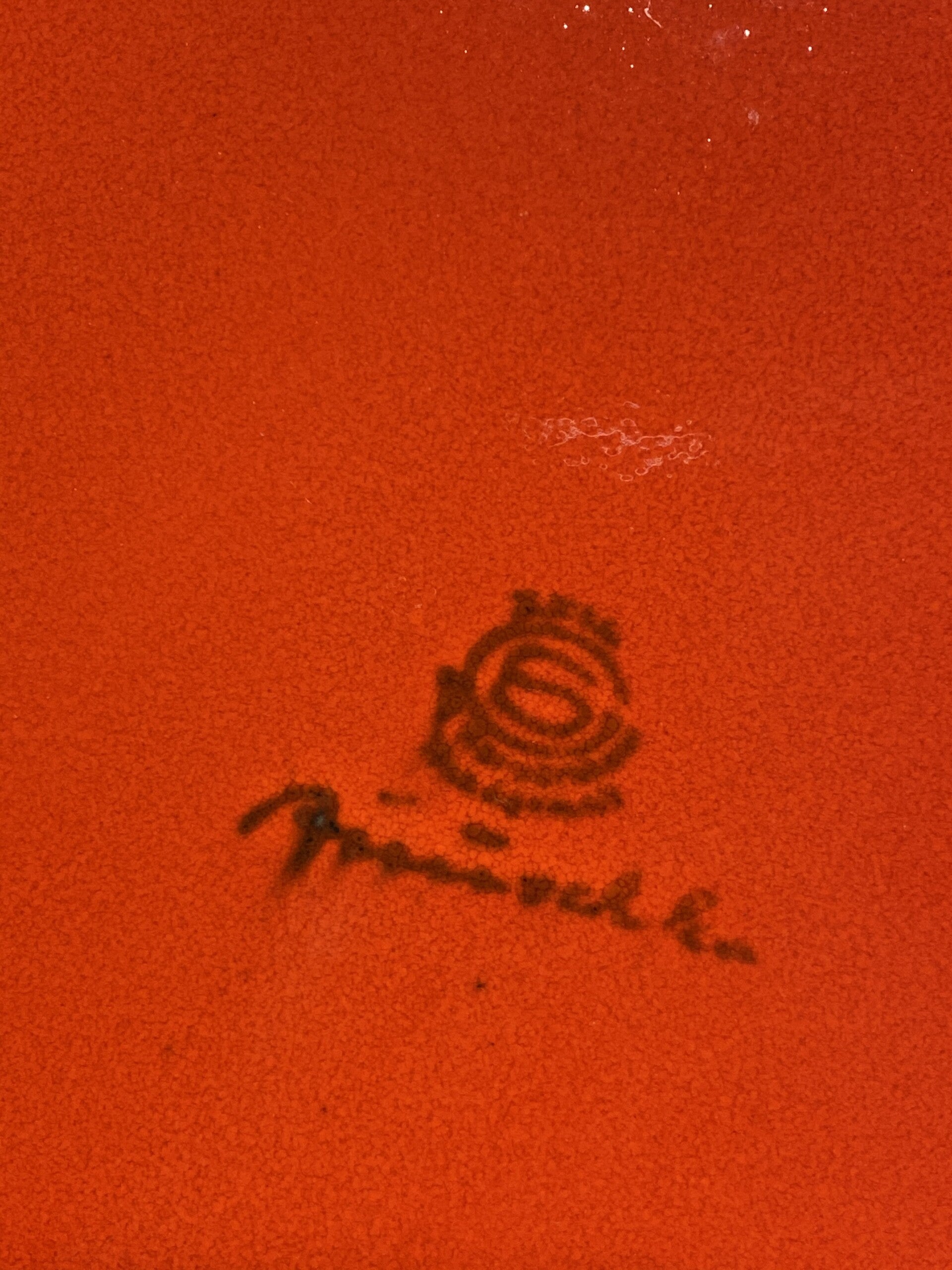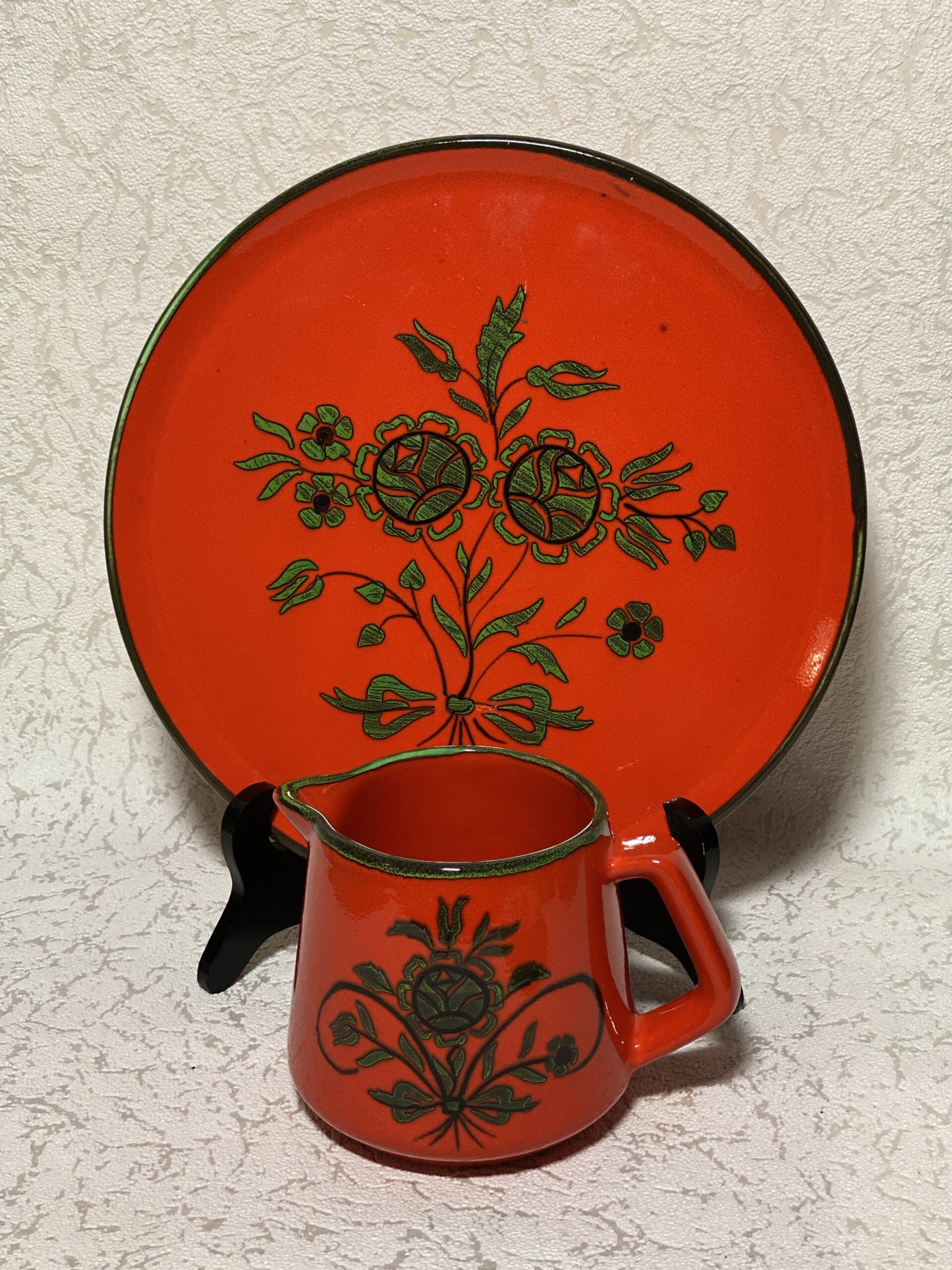Duitse 1928 Georg Schmider oranje kan met dienblad.