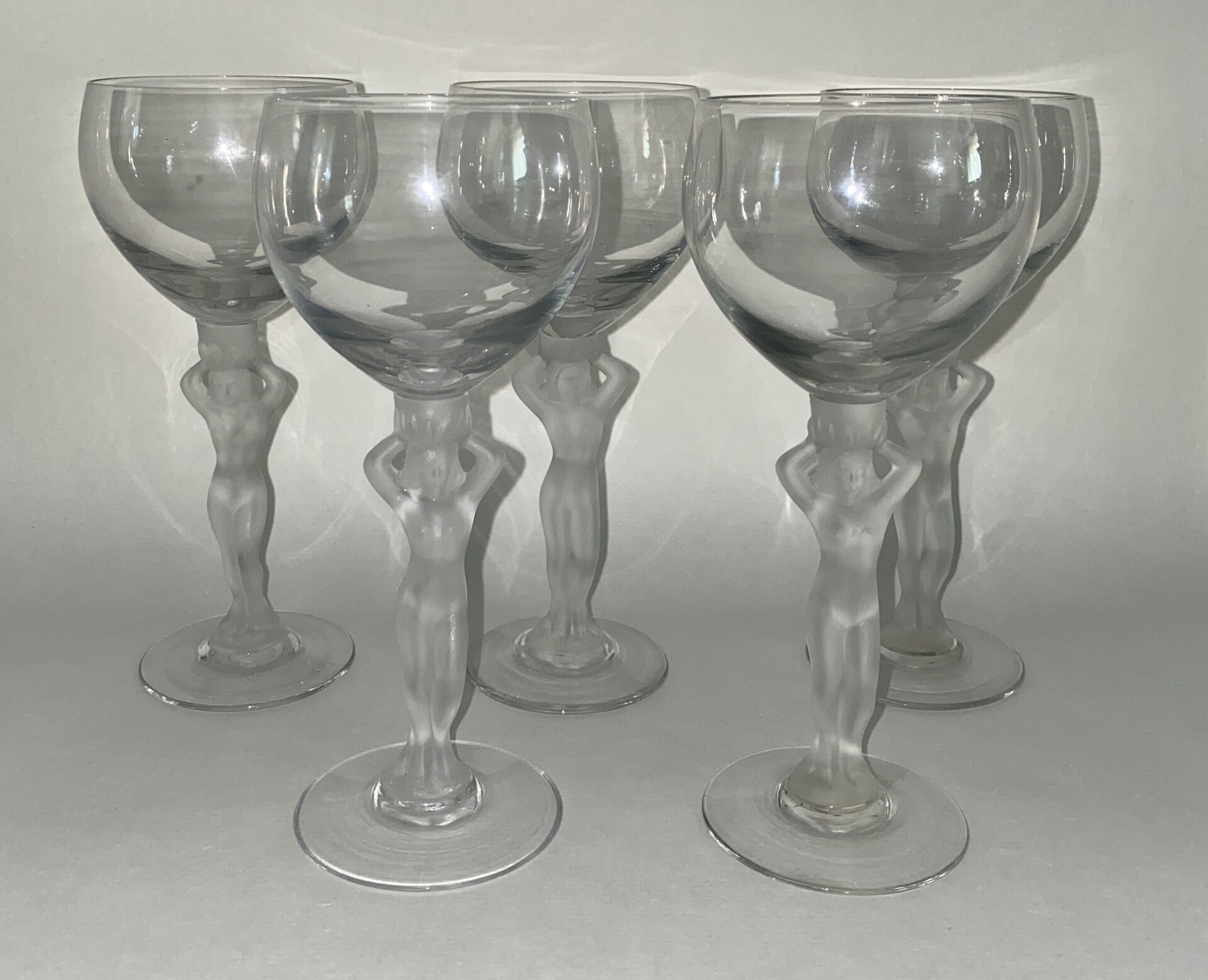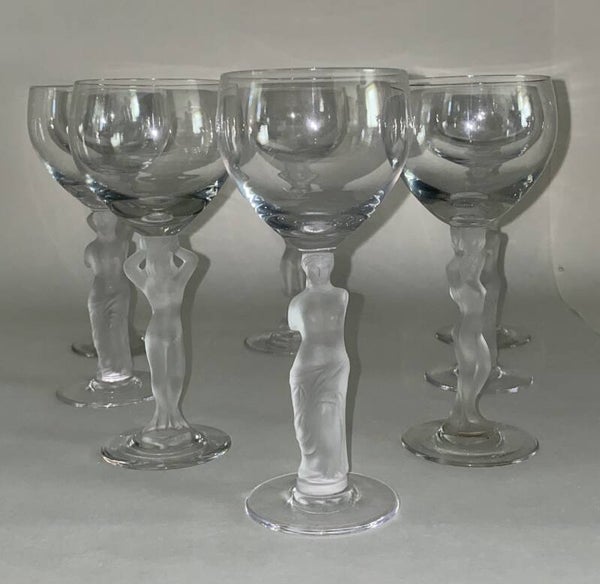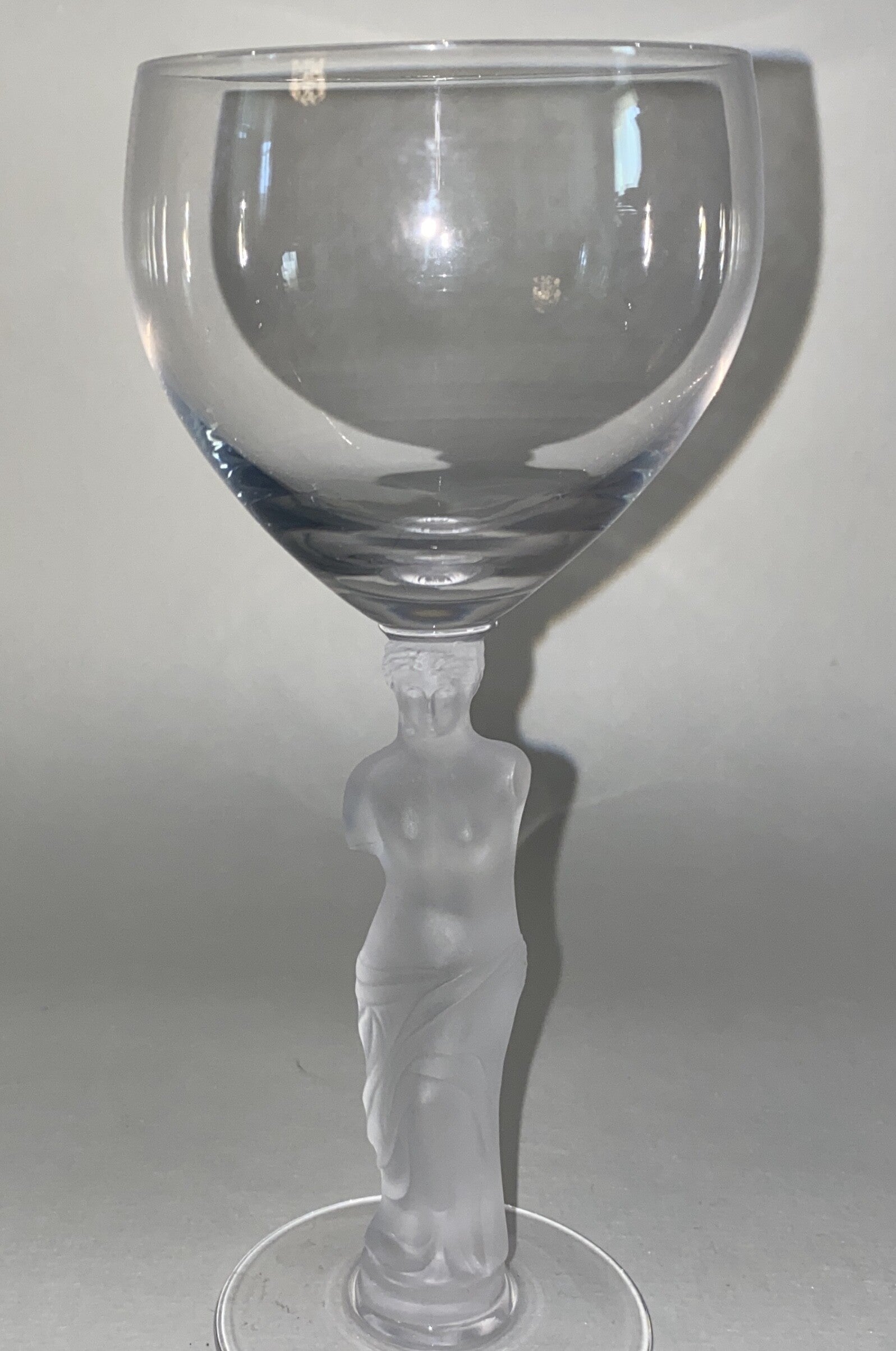 Franse Art Deco kristallen Bayel wijnglazen, met Lalique Bacchus en Bacchantes.