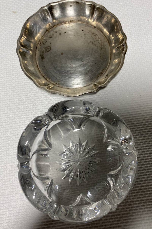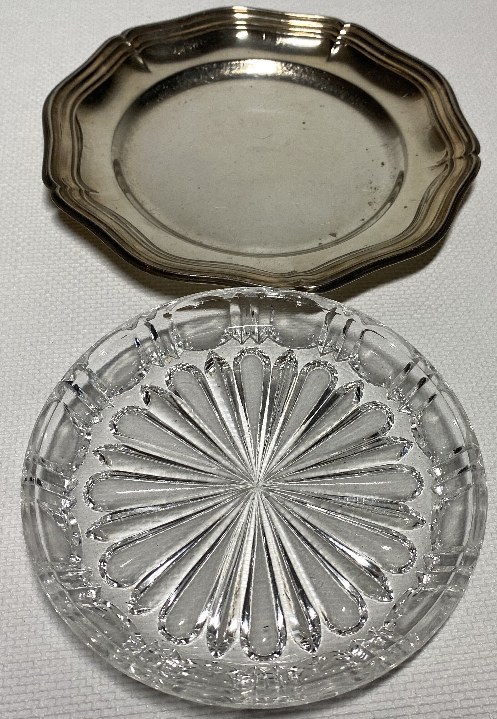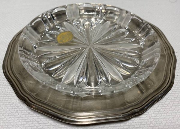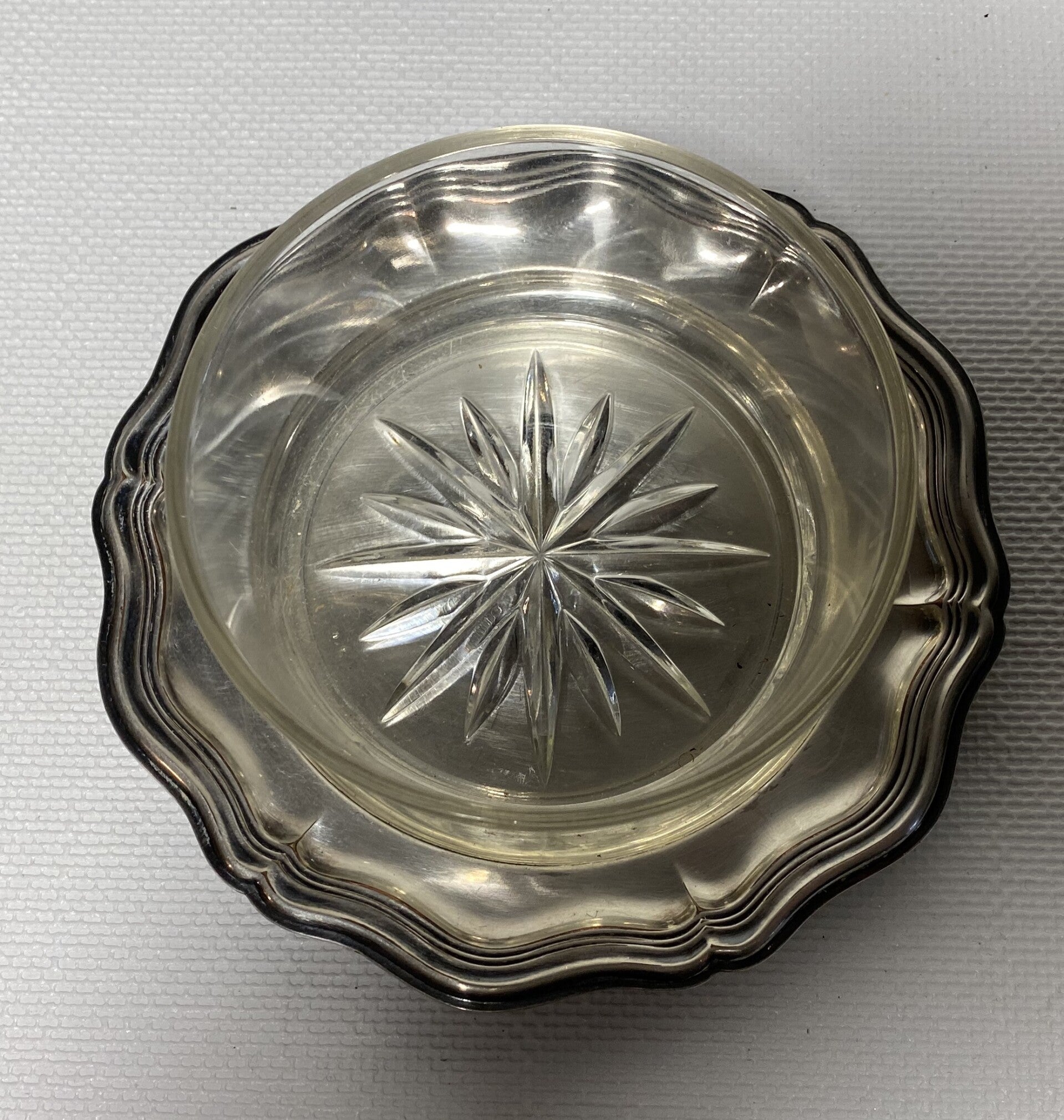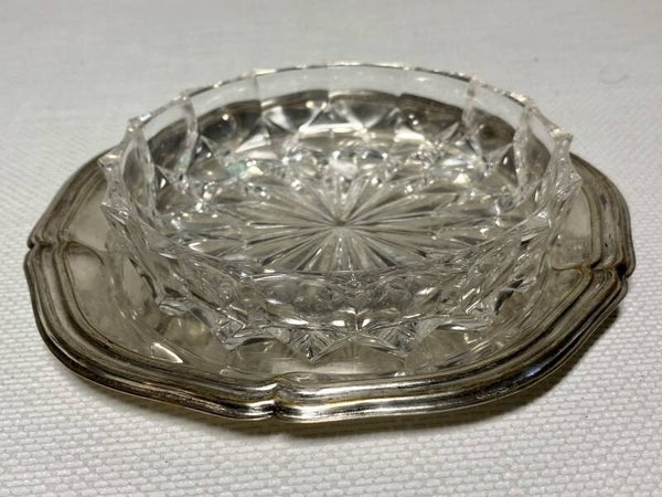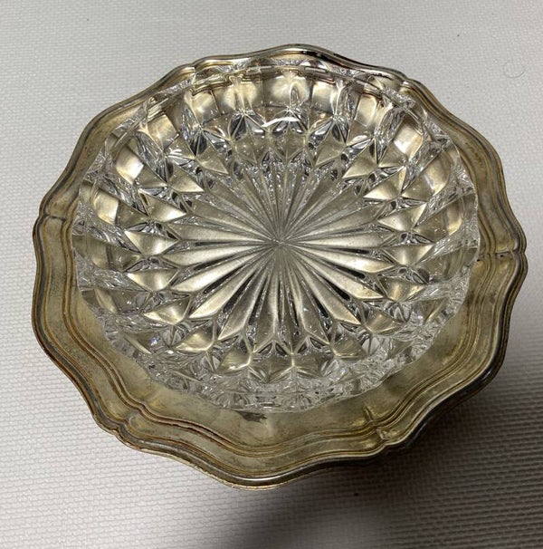7 kristallen schalen op verzilverde dienbladen
