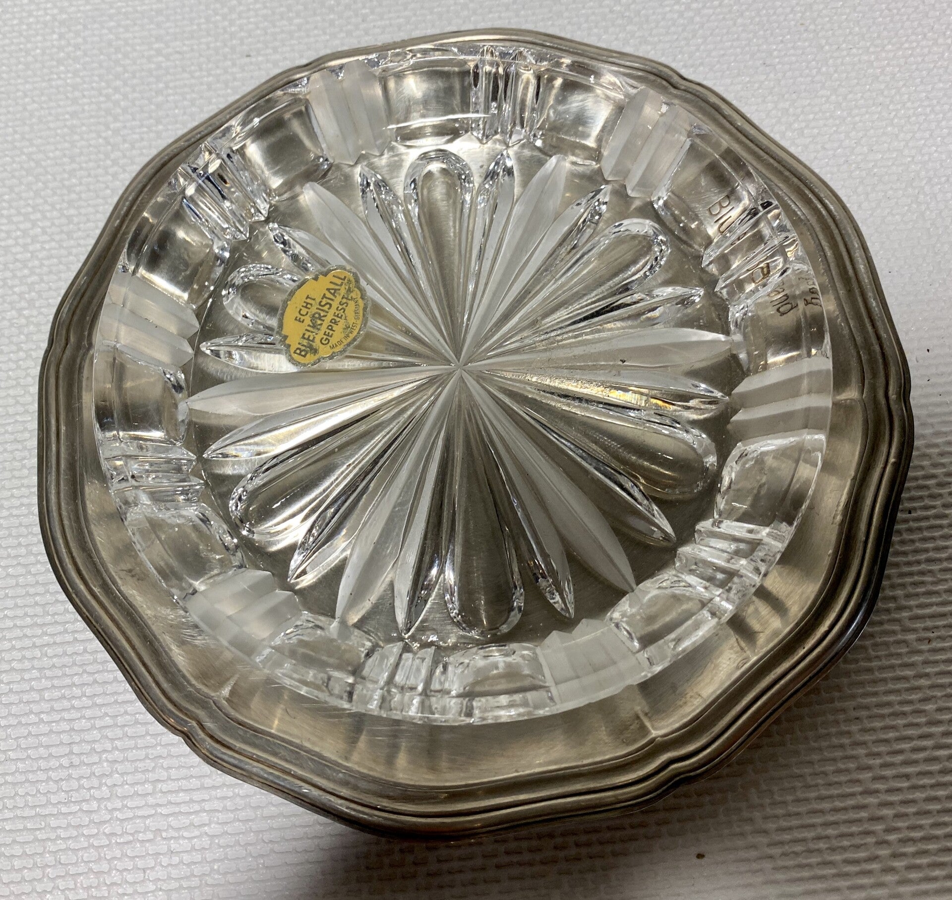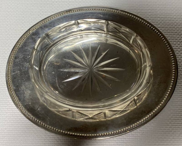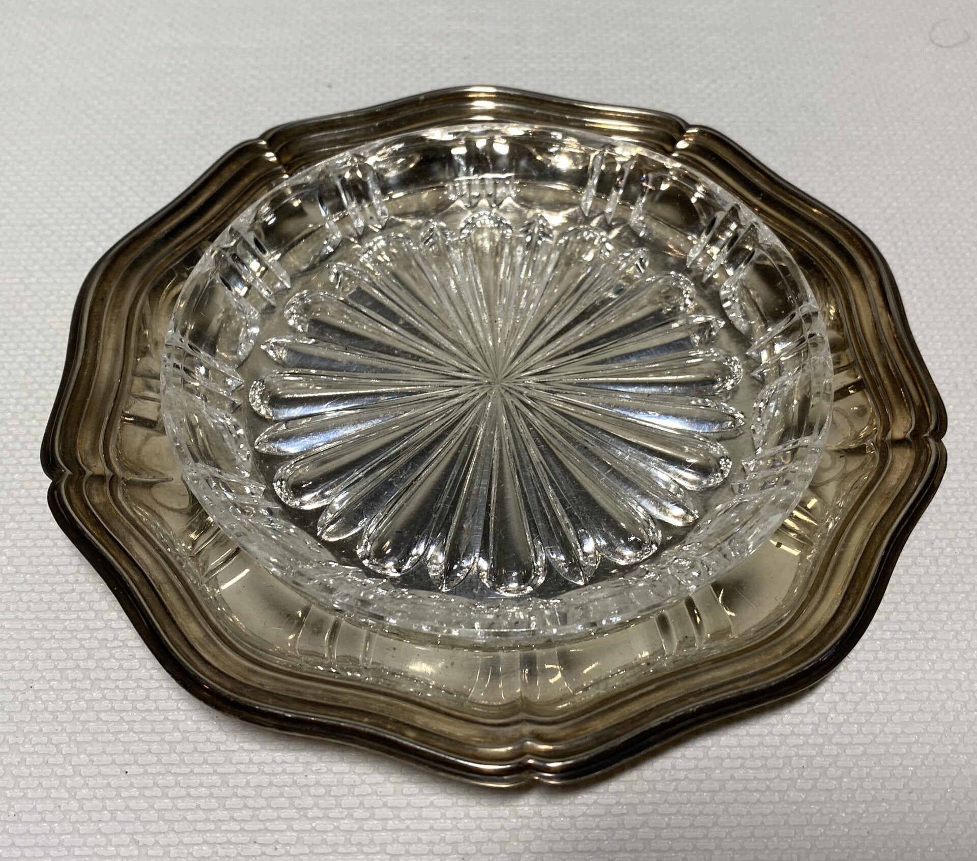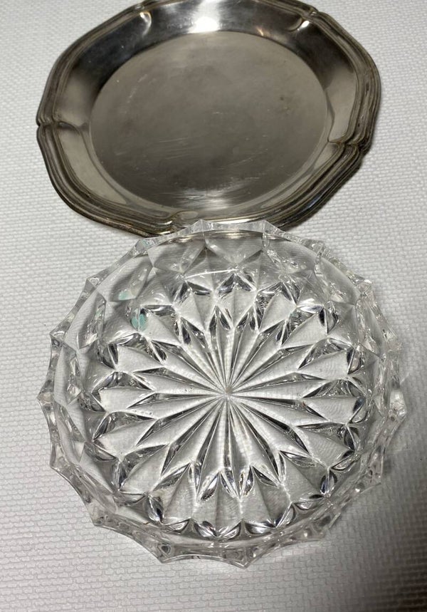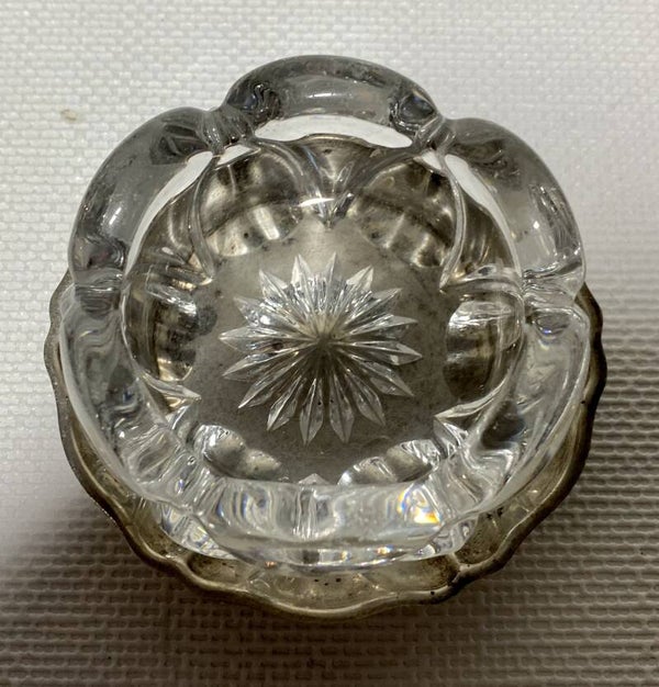 7 kristallen schalen op verzilverde dienbladen