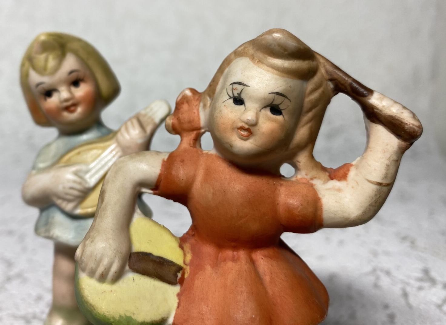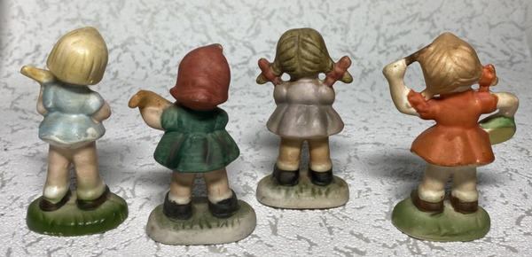Vier porseleinen Napo Japanse beeldjes, van muzikale kindjes.