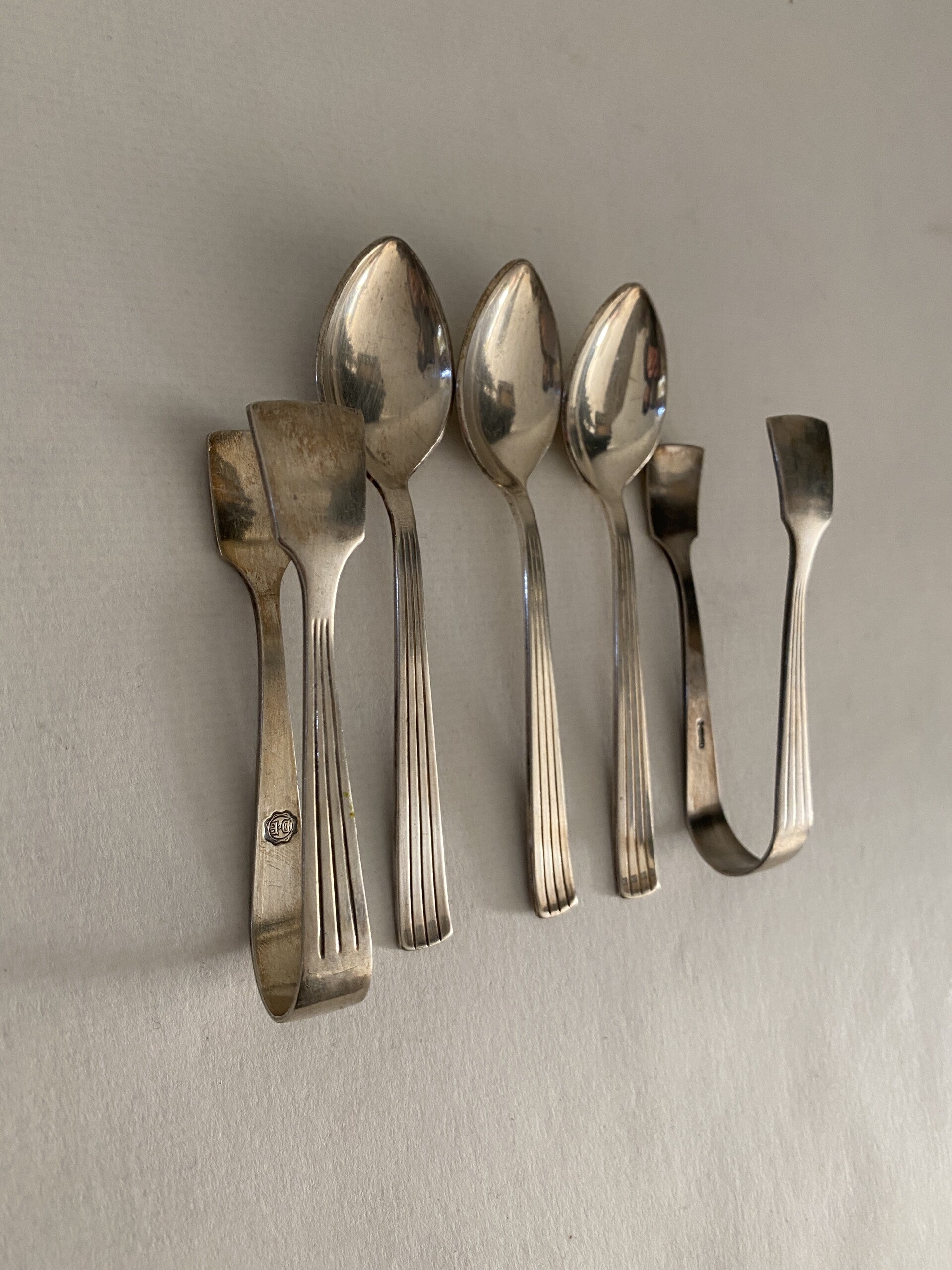 En 2 verzilverde Douwe Egberts Suikertangen.
