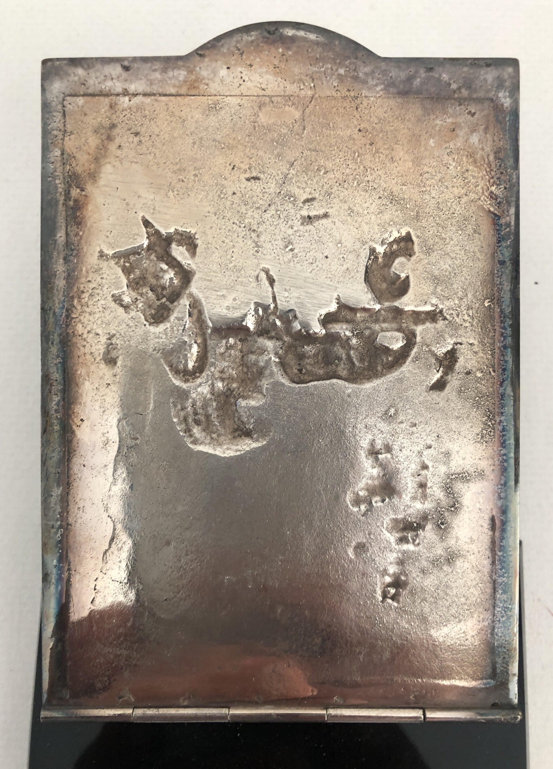Verzilverde 'Herbert Hooijkaas' blocnote houder.