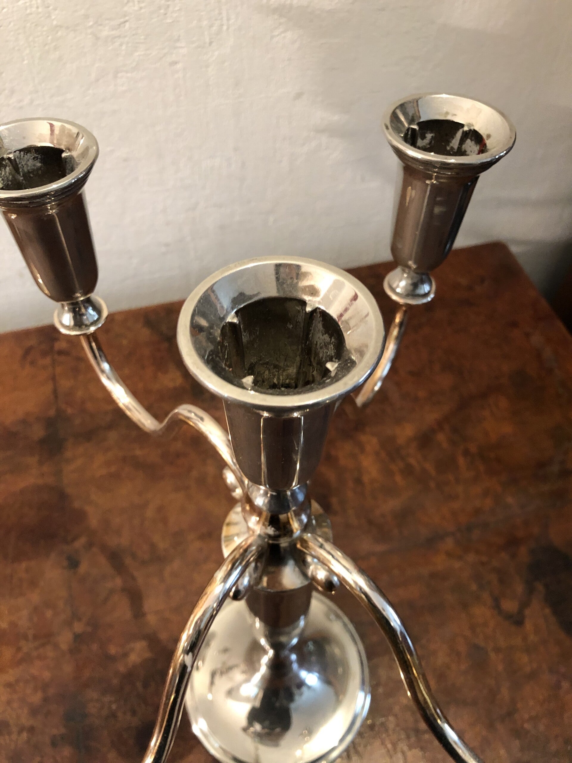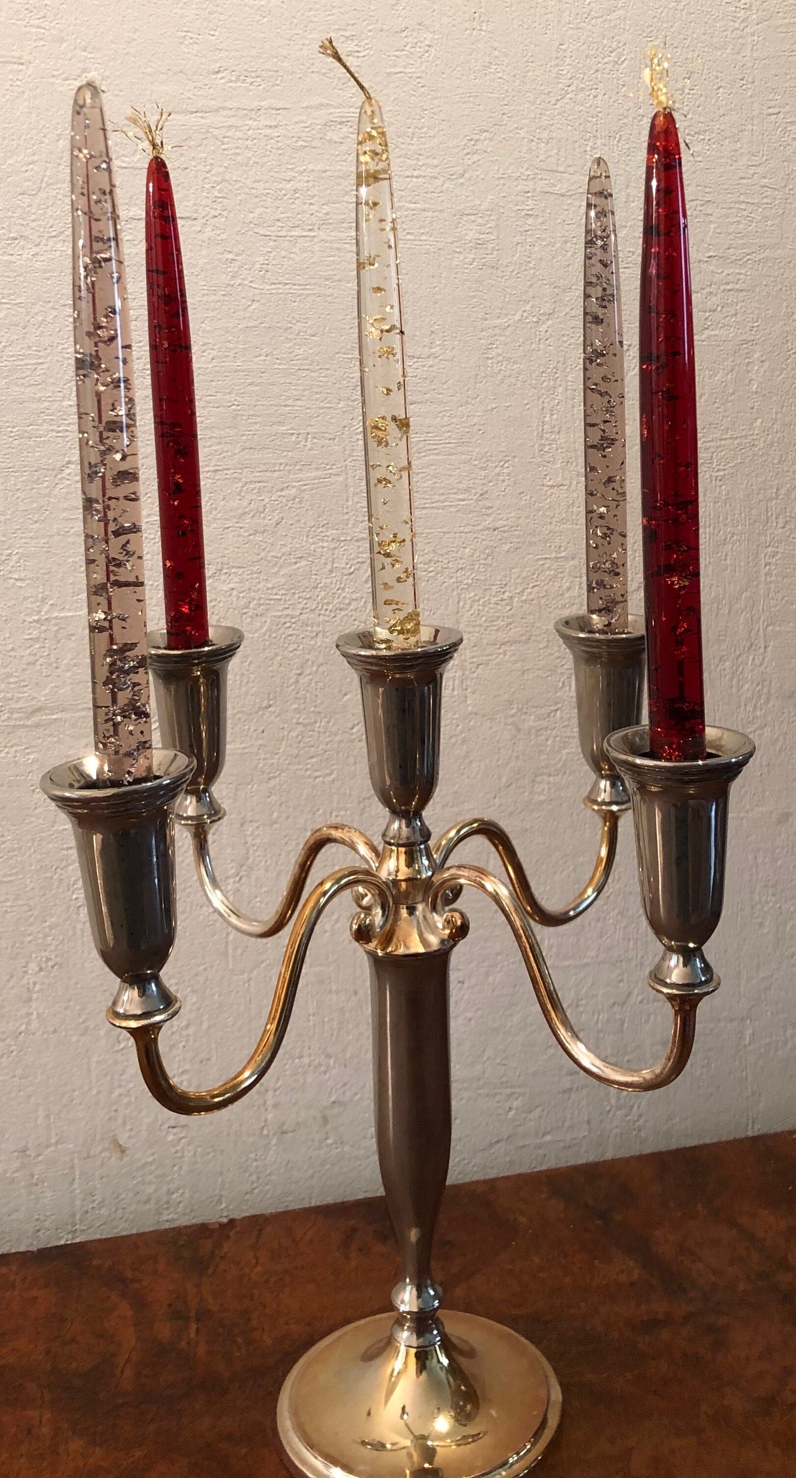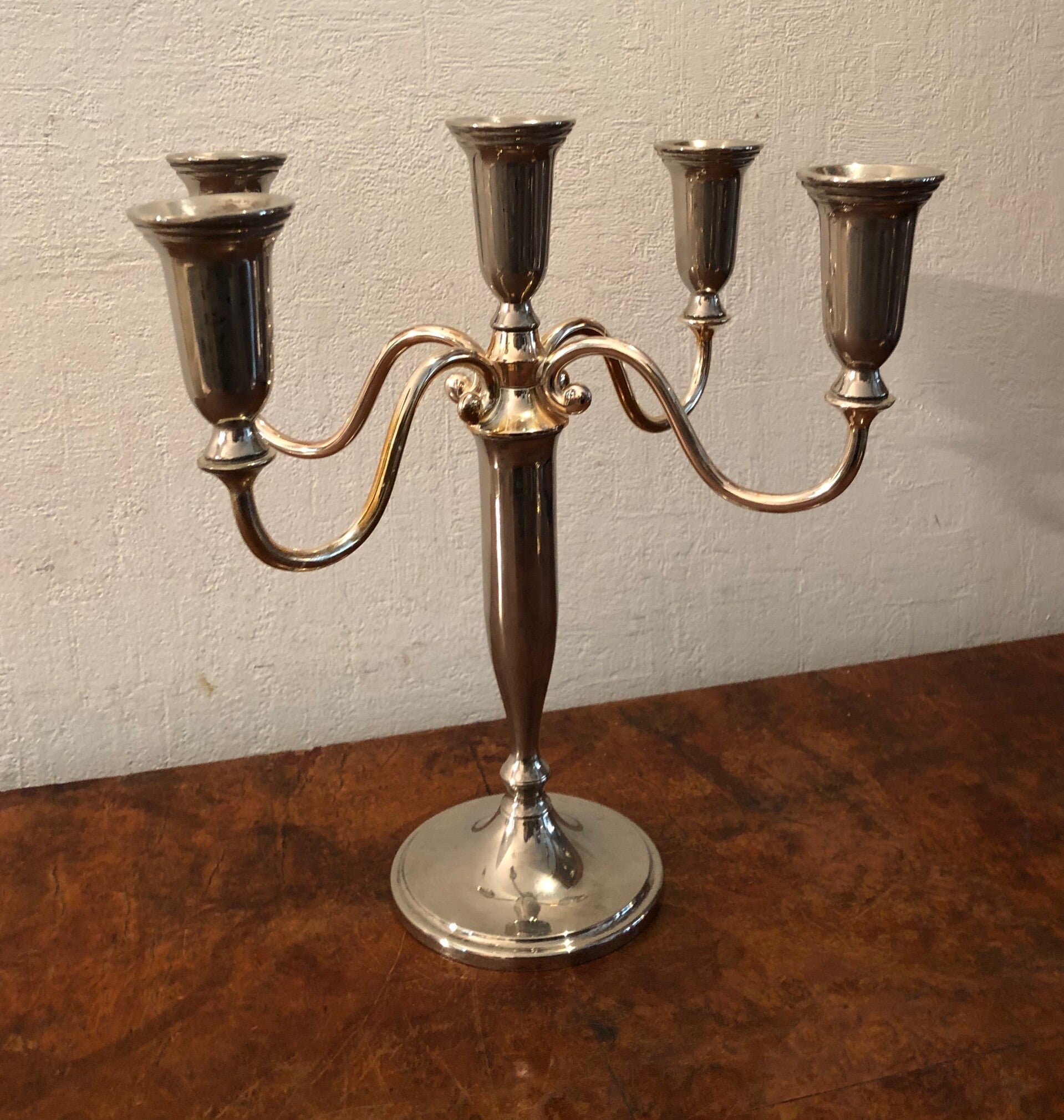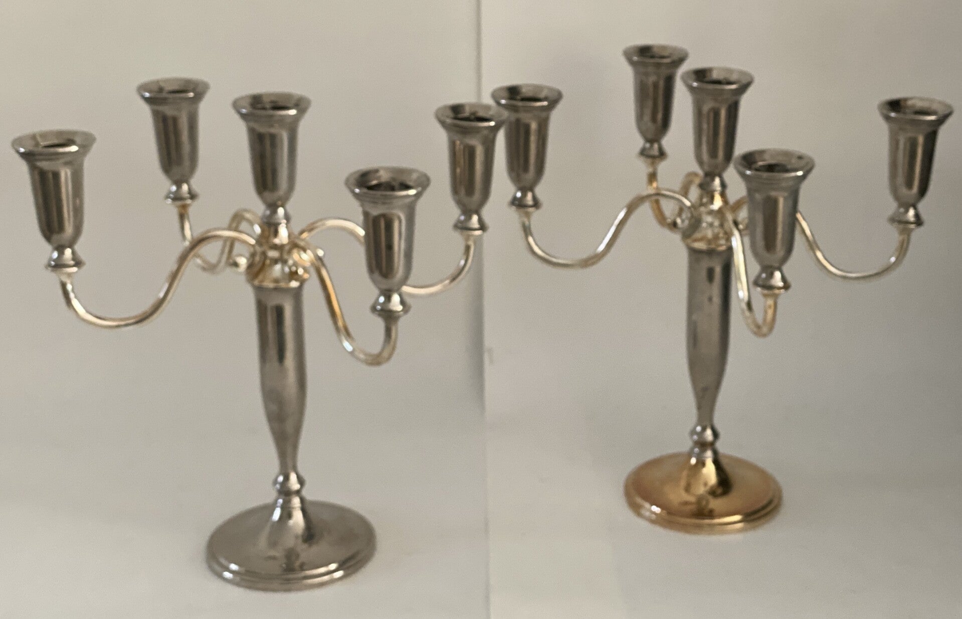 Paar bicolor verzilverde vijf-arm kandelaars.