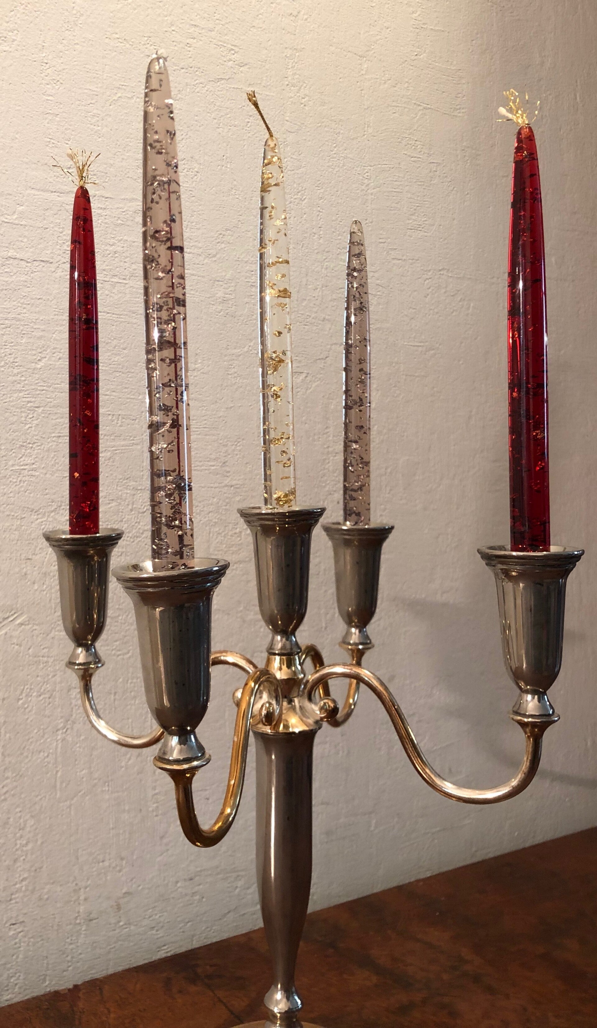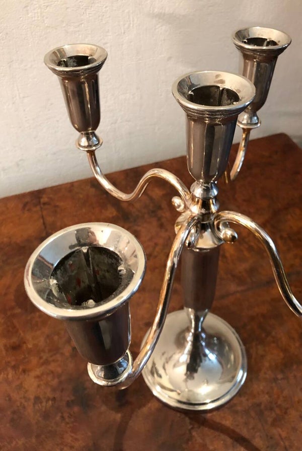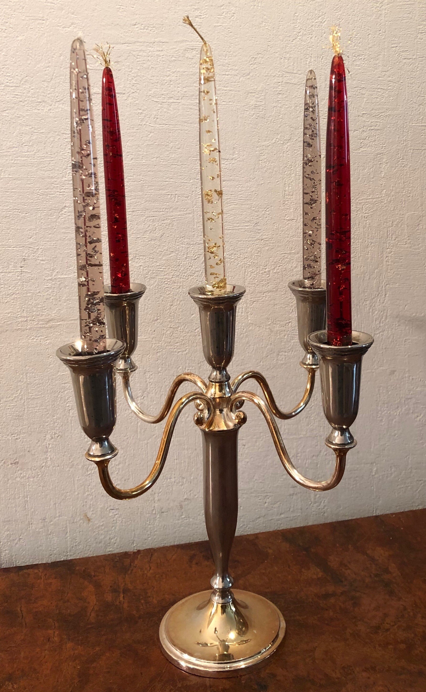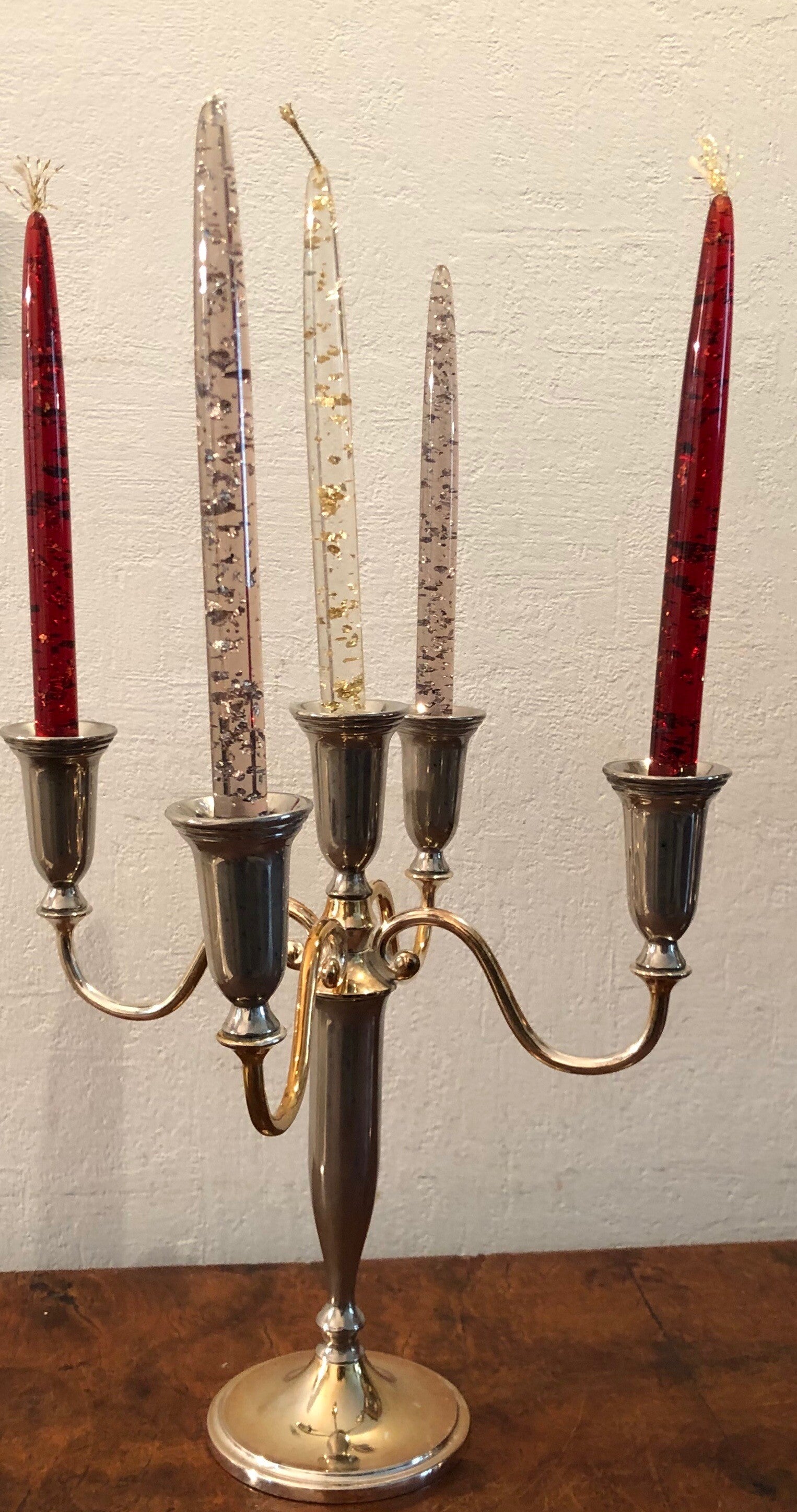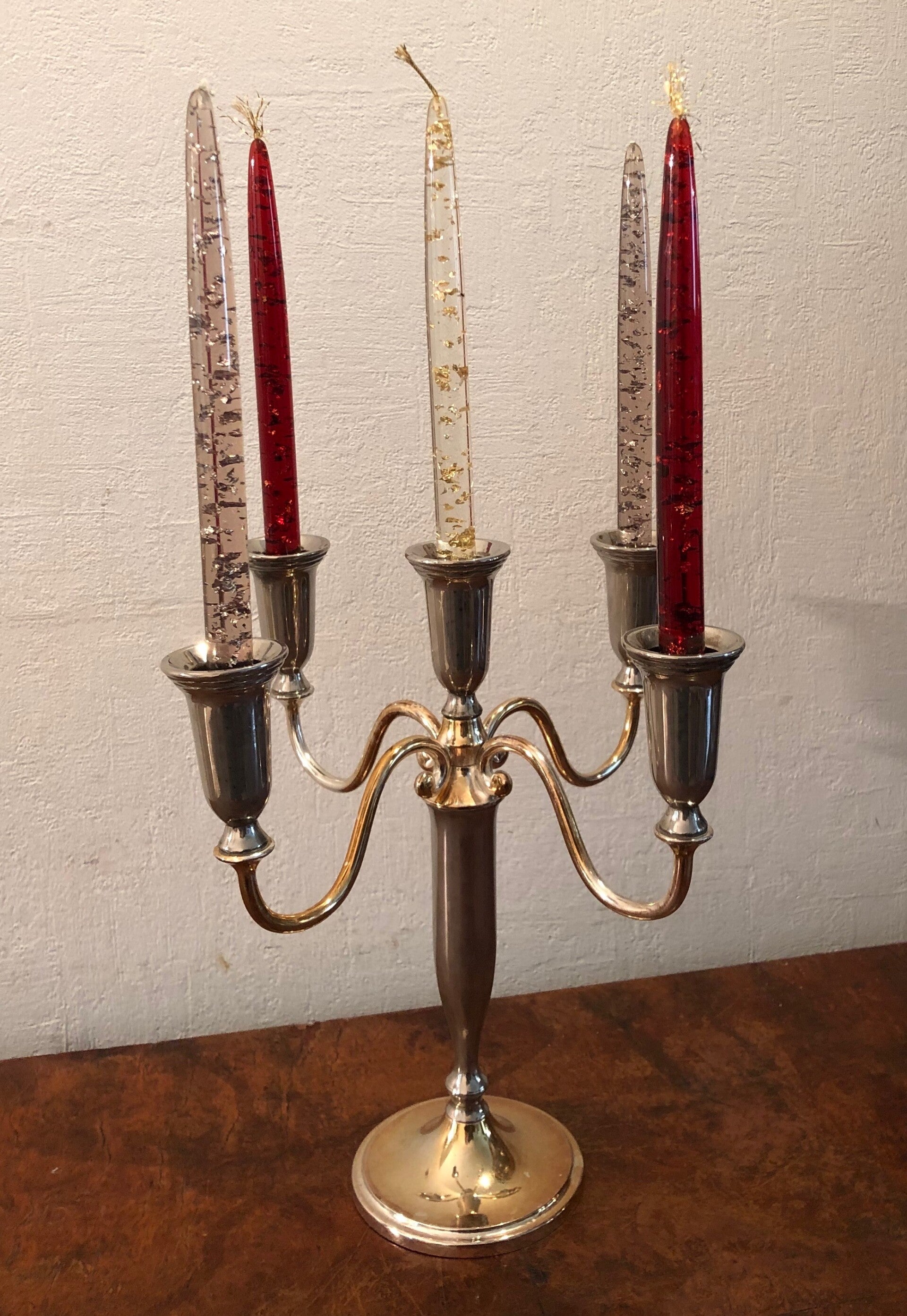 Paar bicolor verzilverde vijf-arm kandelaars.