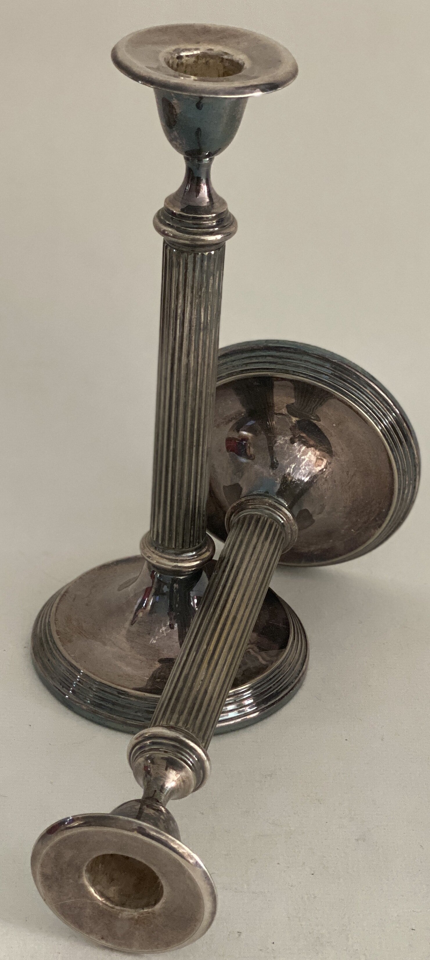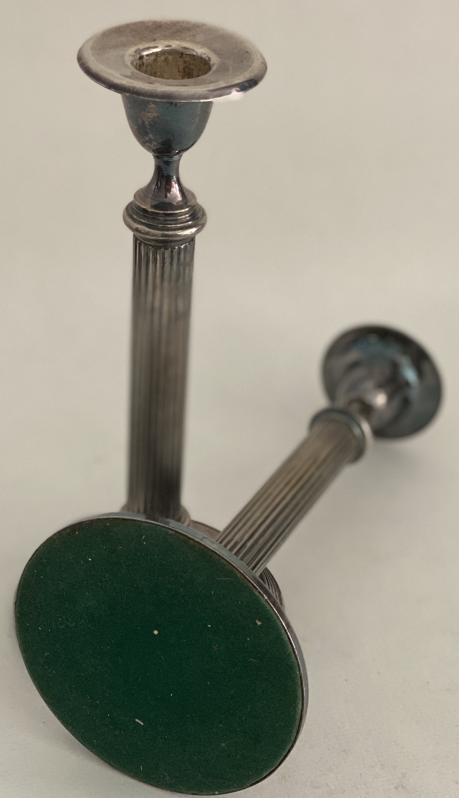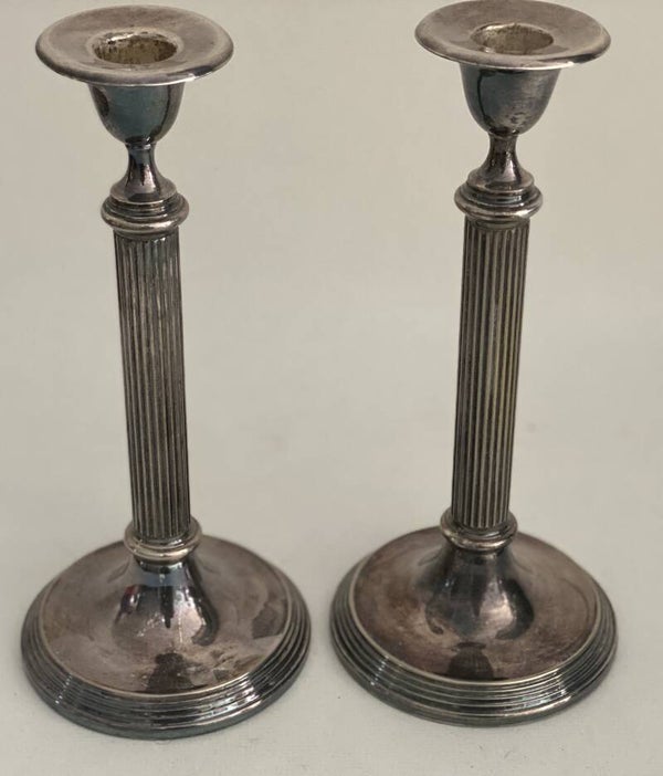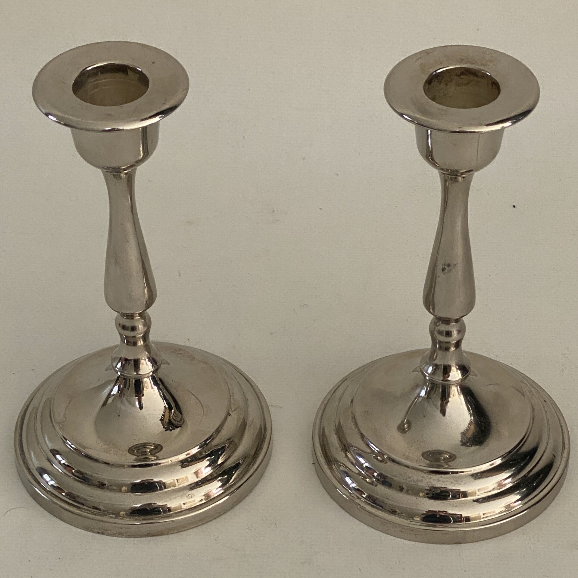 Een paar verzilverde kandelaars van keltum (gestempeld).