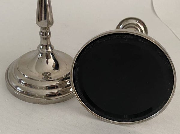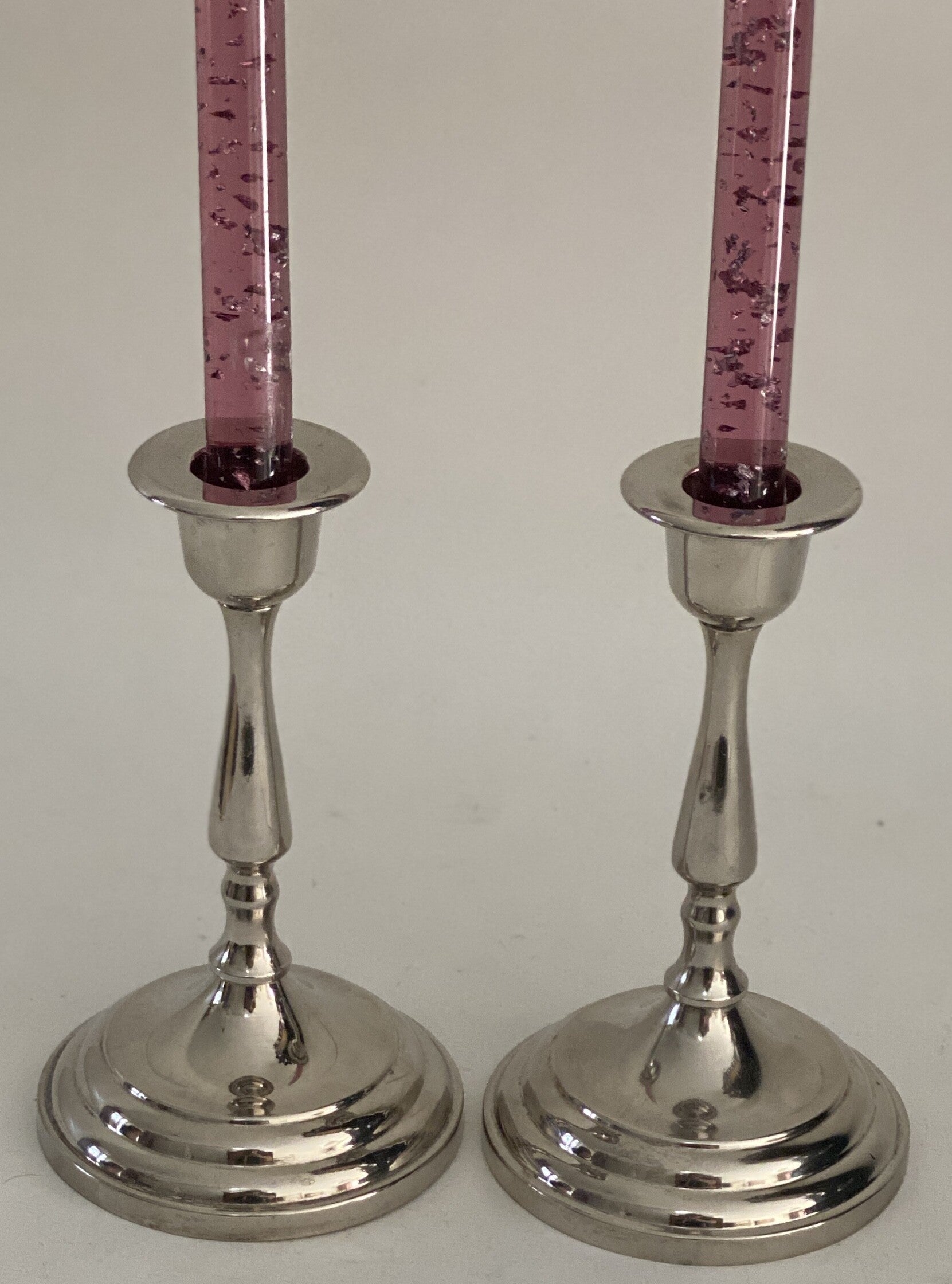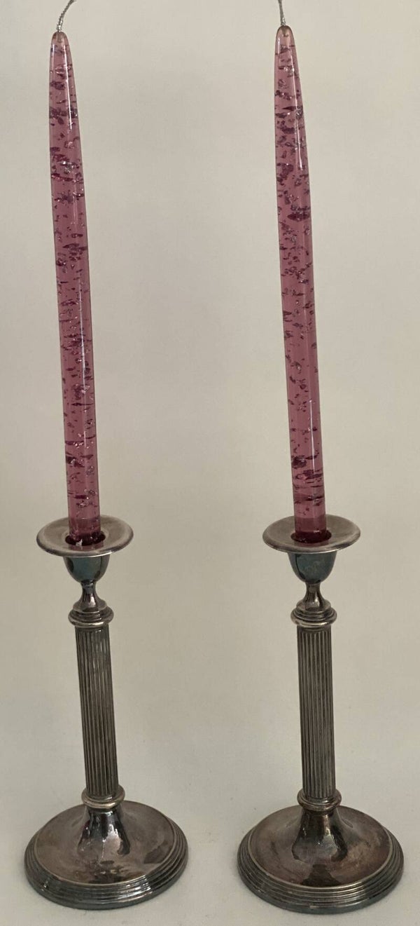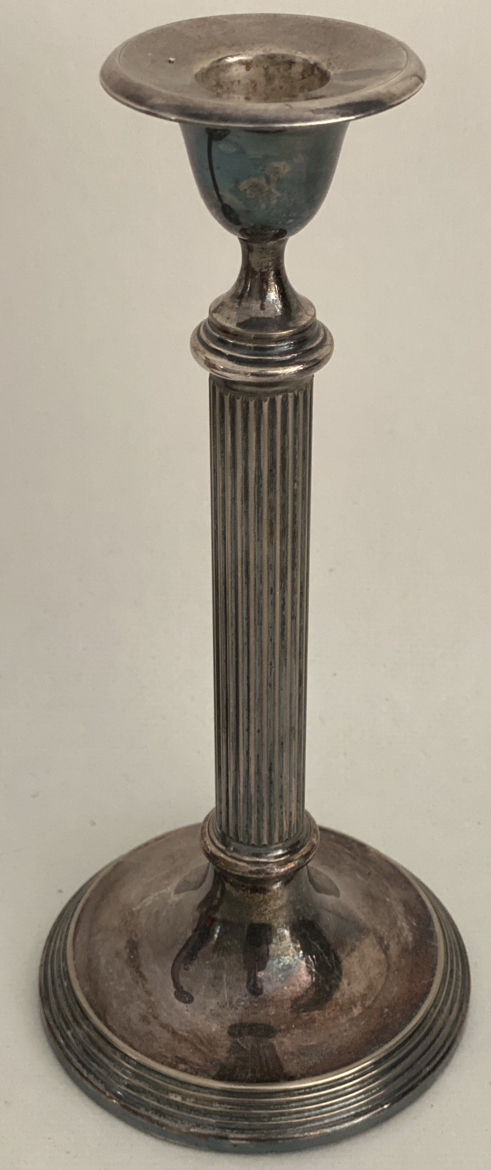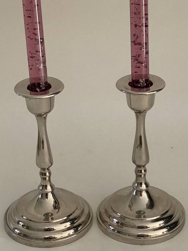 Een paar verzilverde kandelaars van keltum (gestempeld).