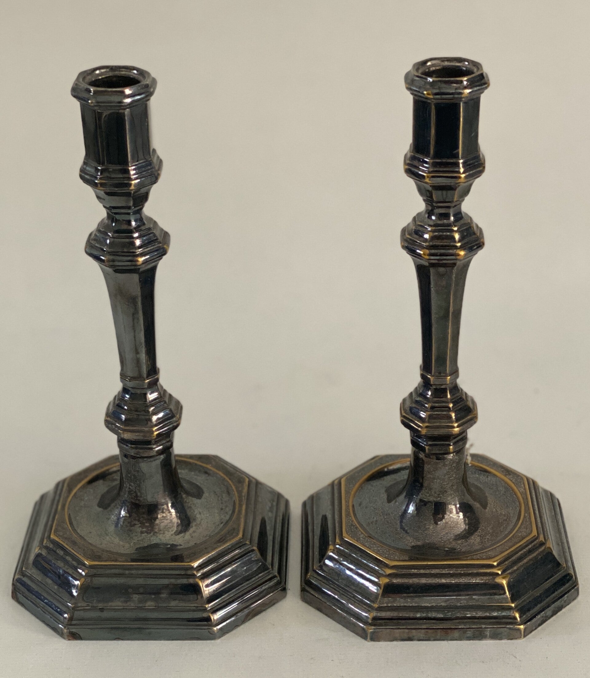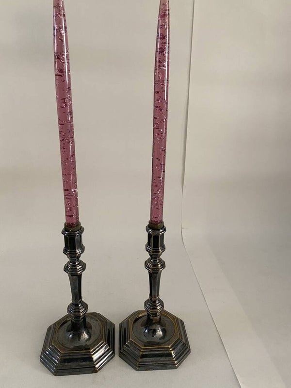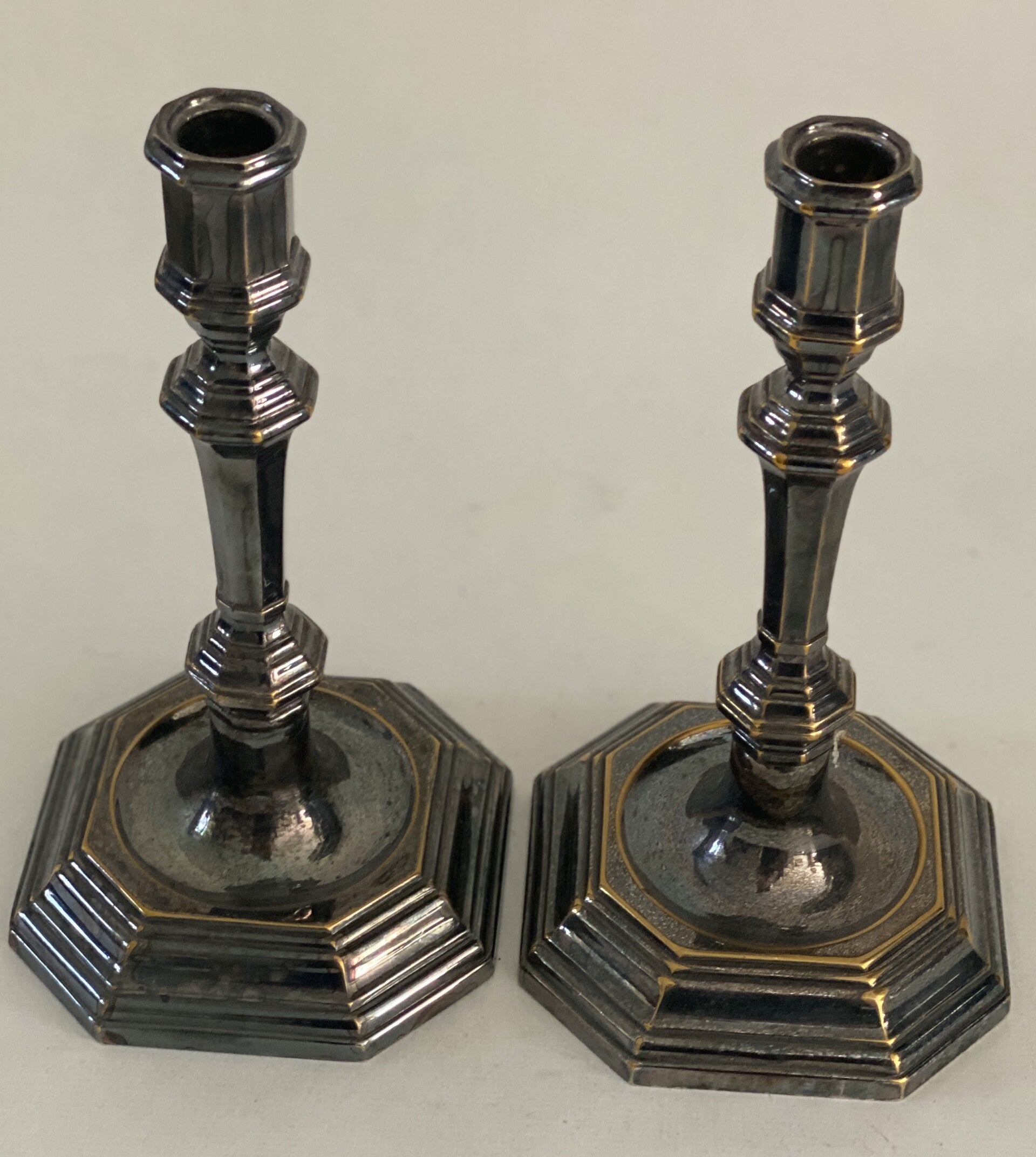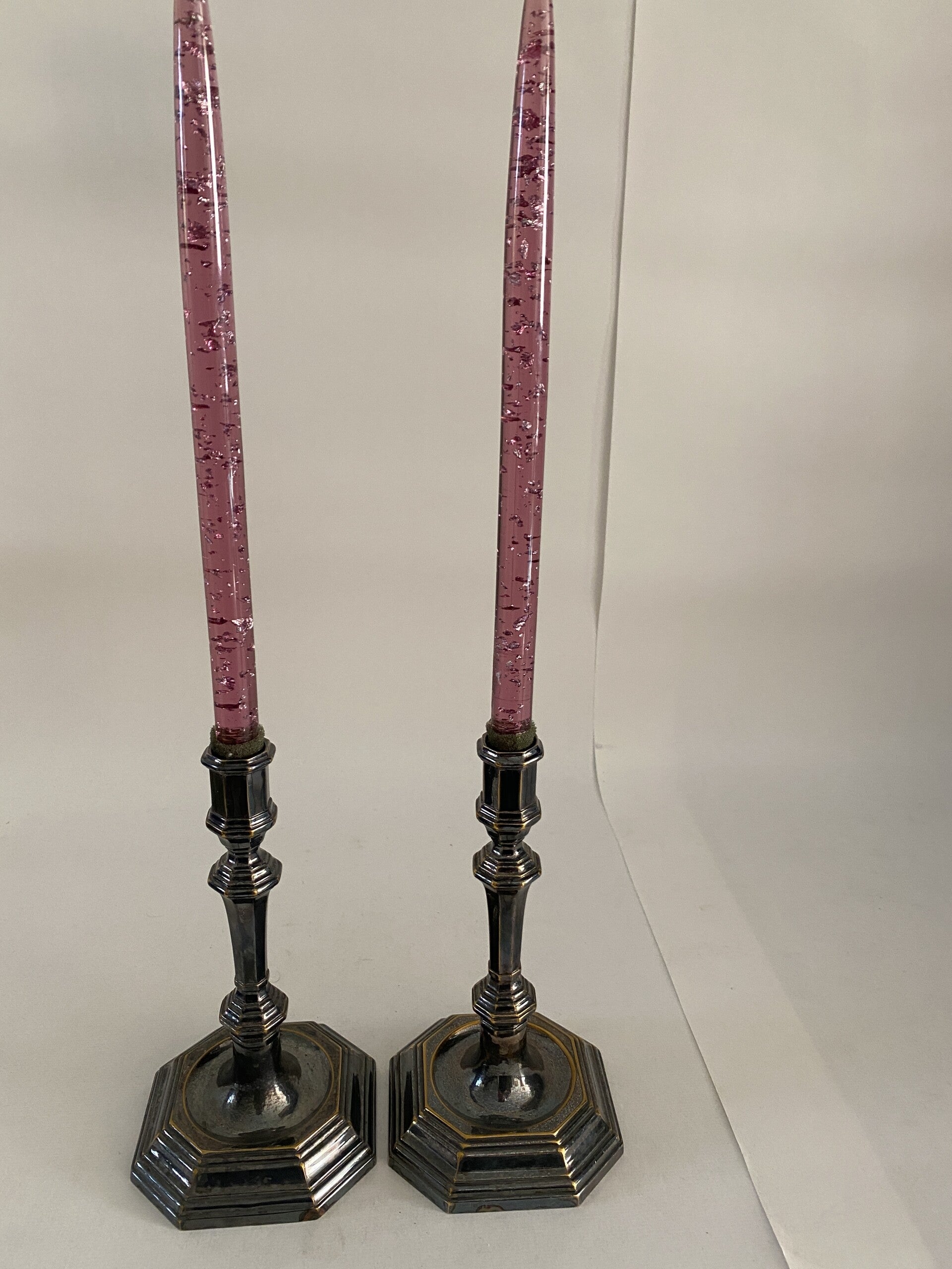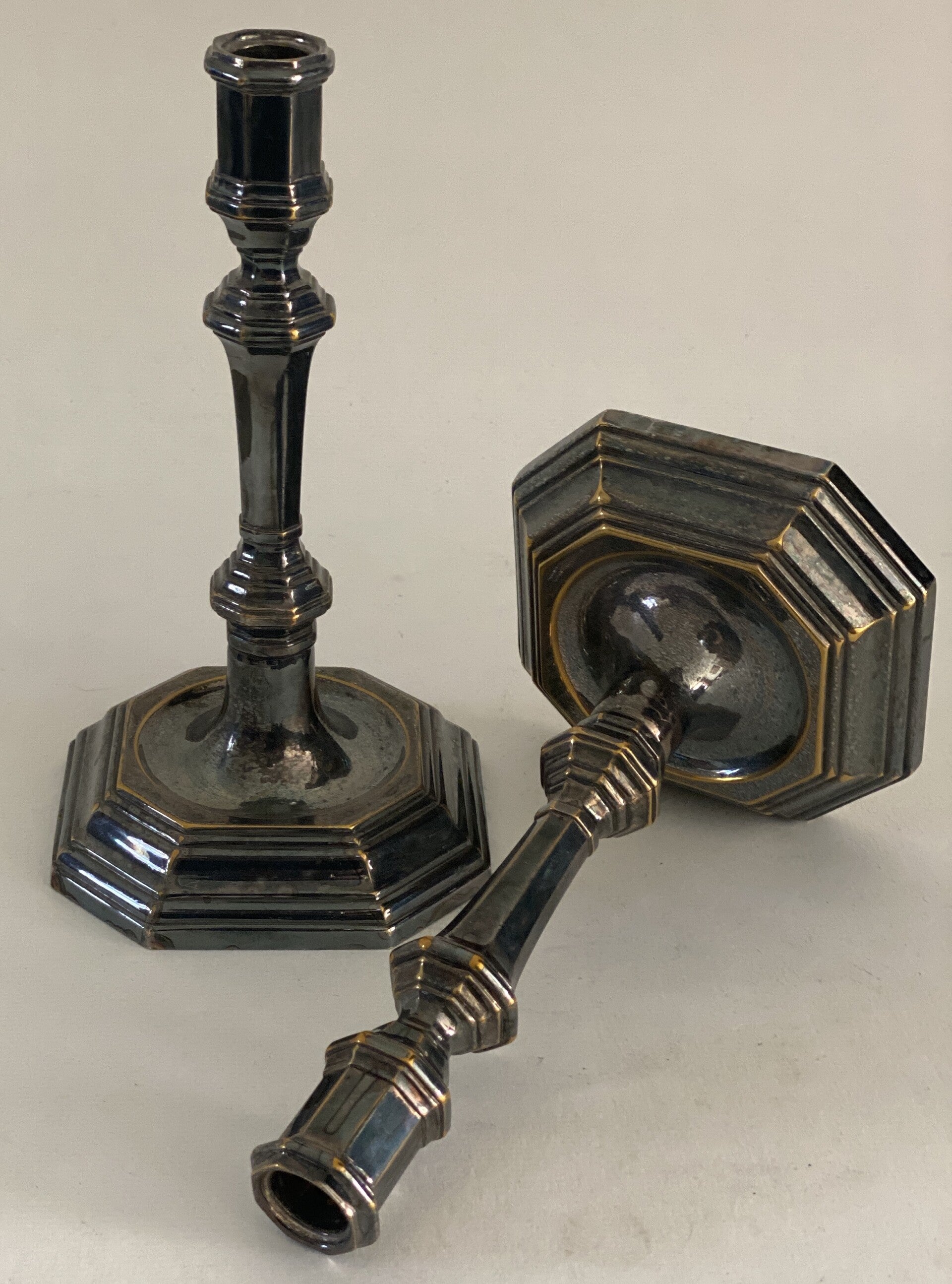 Paar Portugese verzilverde Topazio Casquinha kandelaars.