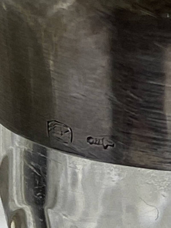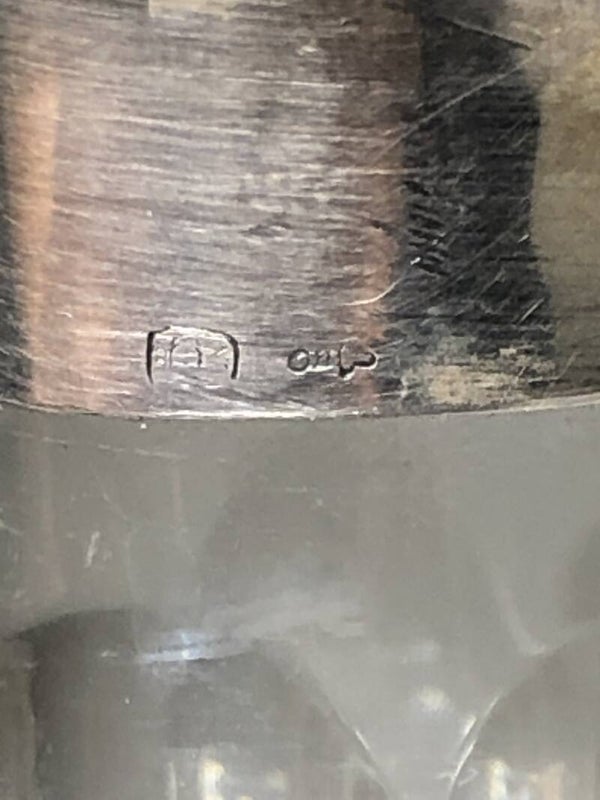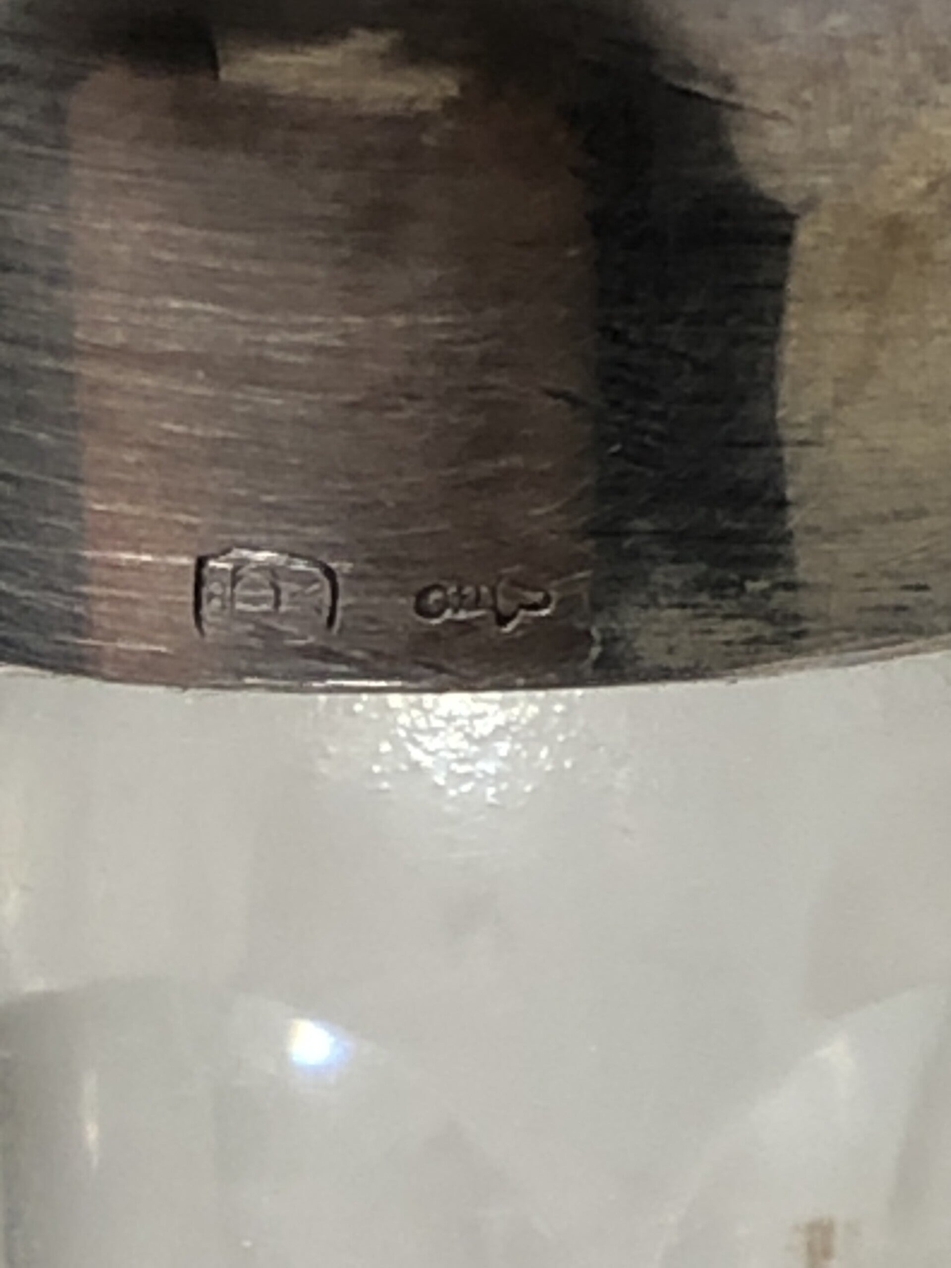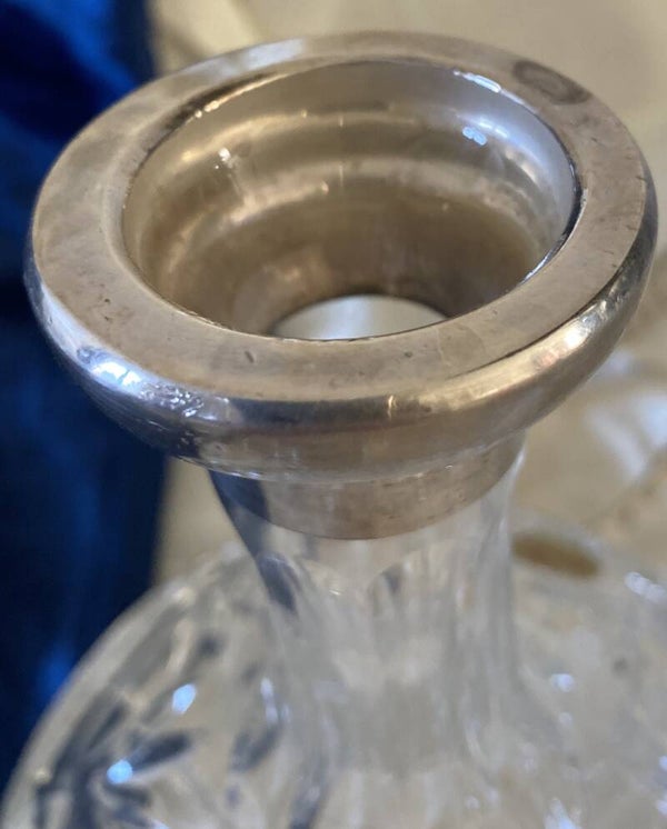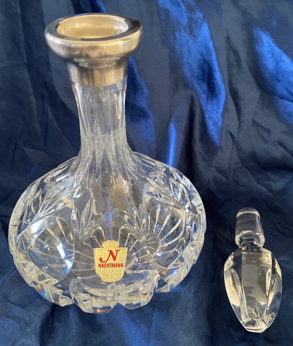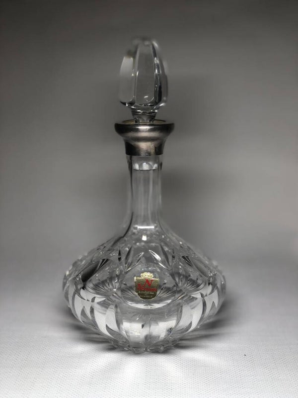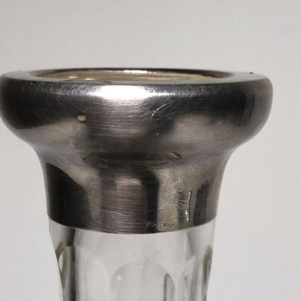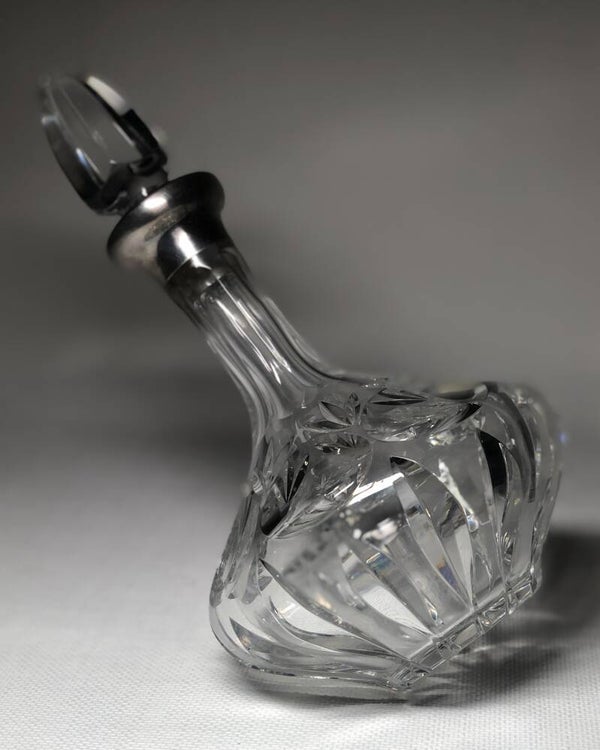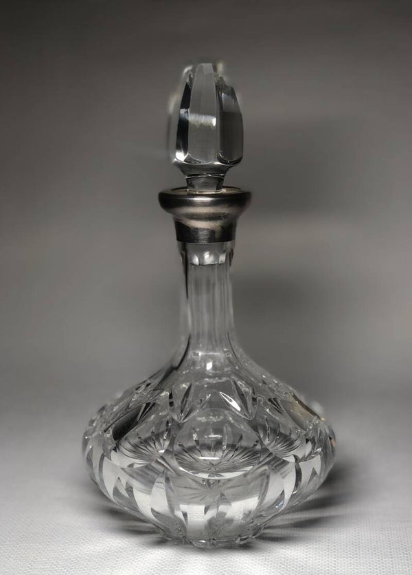 NR20. Geslepen kristallen karafe met zilveren hals.