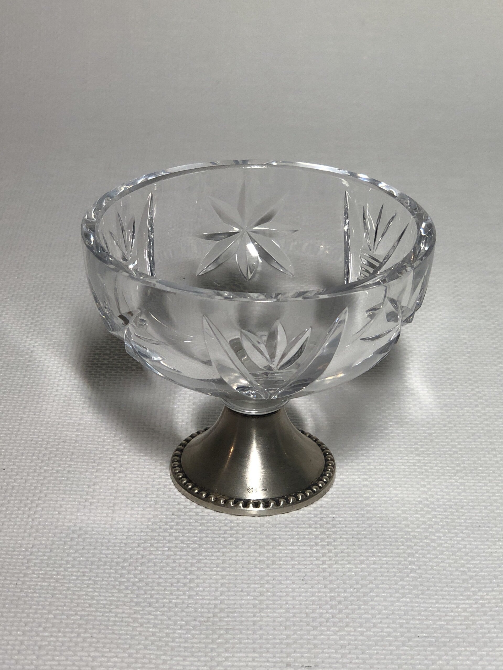 NR10. Kristallen bonbonschaaltje op zilveren voet.