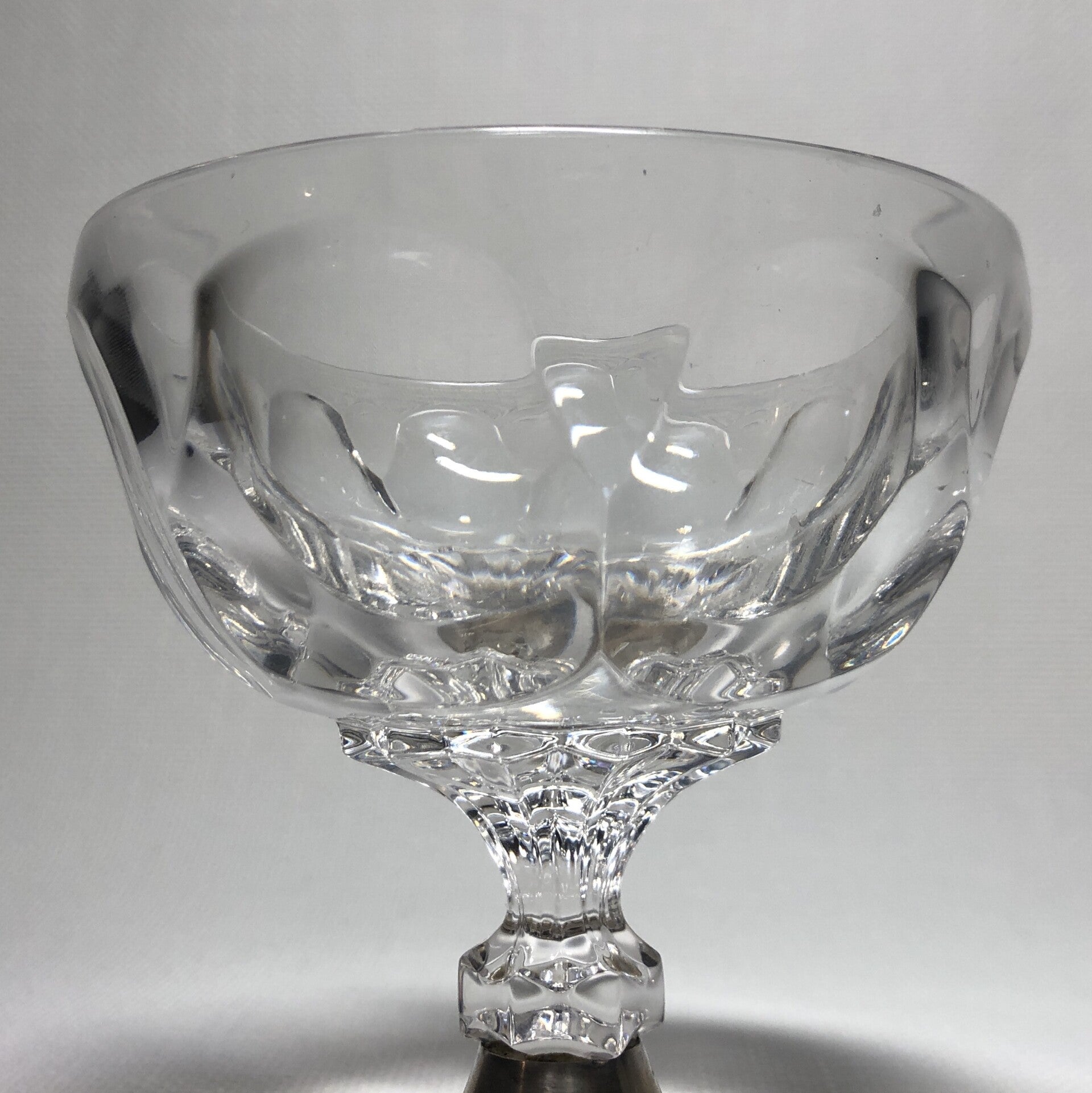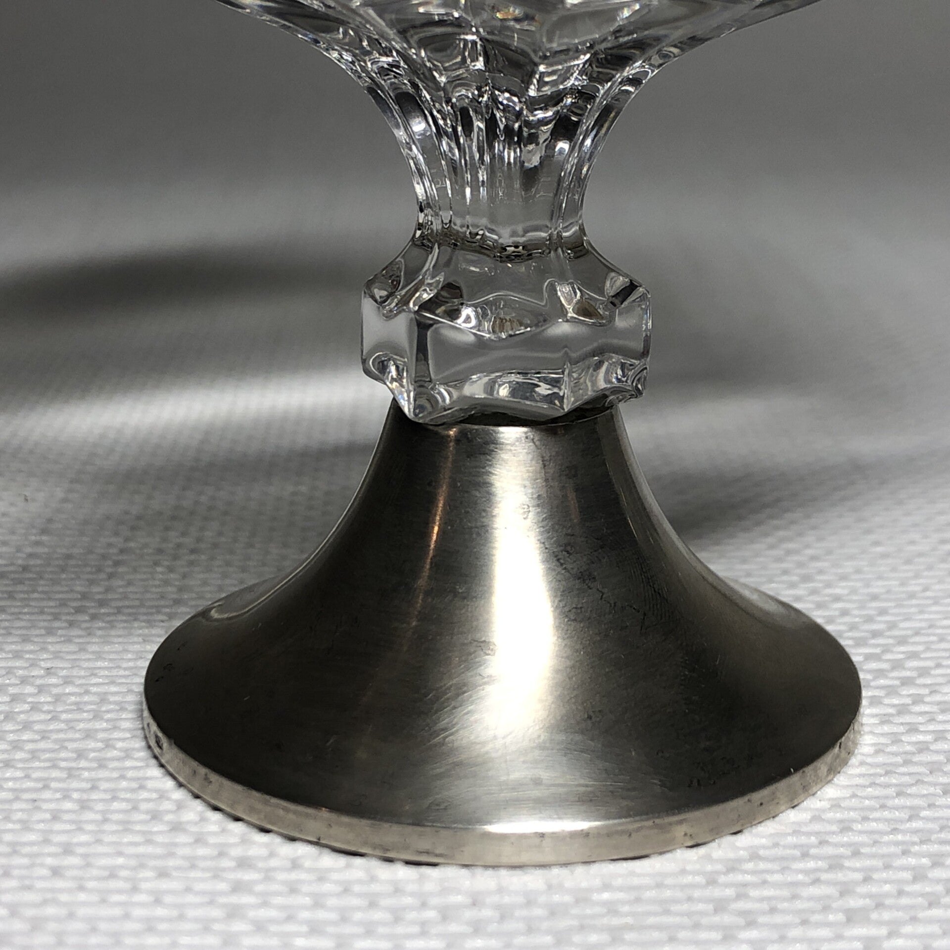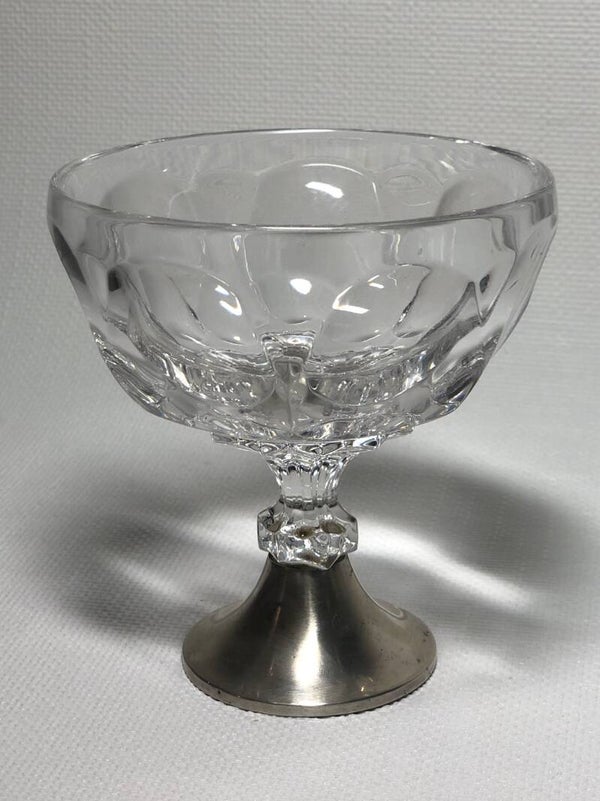 NR9. Kristallen bonobon schaaltje op zilveren voet.