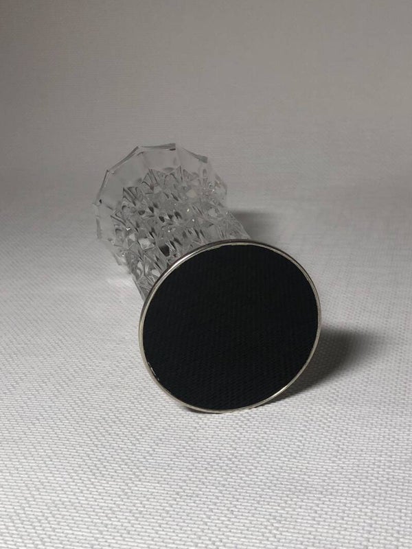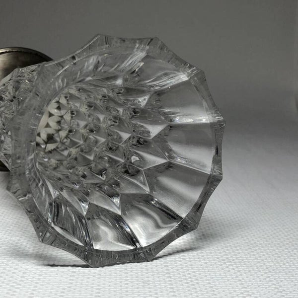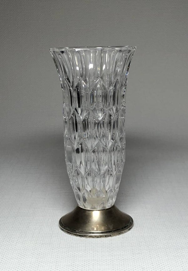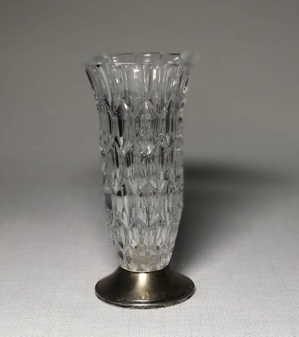 NR17. Kristllen bloemenvaasje op verzilverde voet.