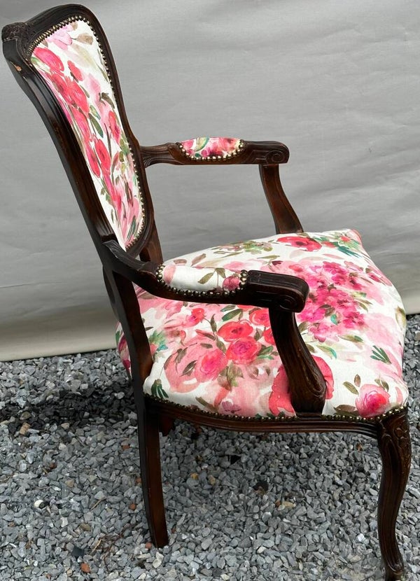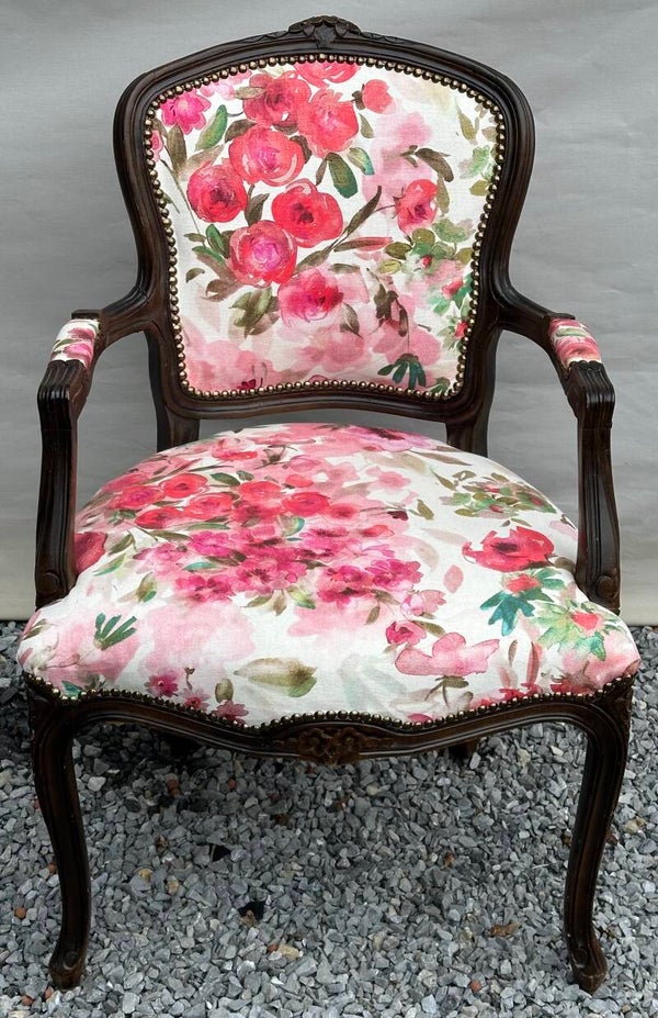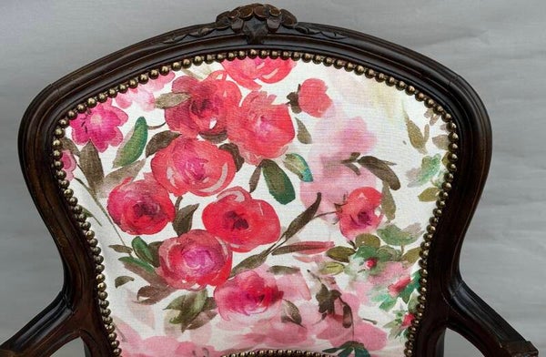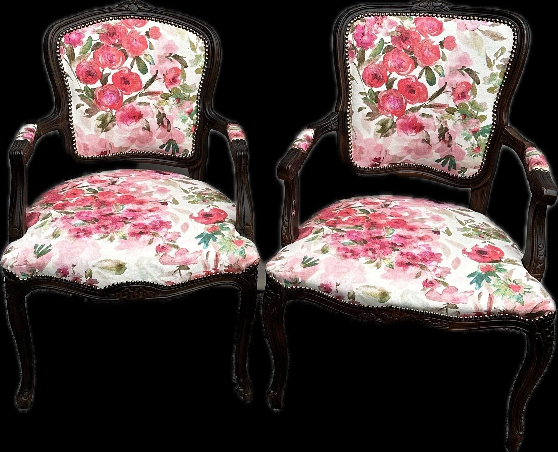 Geniet van de tijdloze elegantie van deze prachtige fauteuilset, perfect om een vleugje klassieke charme aan uw woonkamer toe te voegen. Deze prachtige fauteuils zijn voorzien van een prachtig bloemenpatroon in een palet van zachtroze, levendige roodtinten en delicate groentinten, die een frisse wind in elke kamer blazen